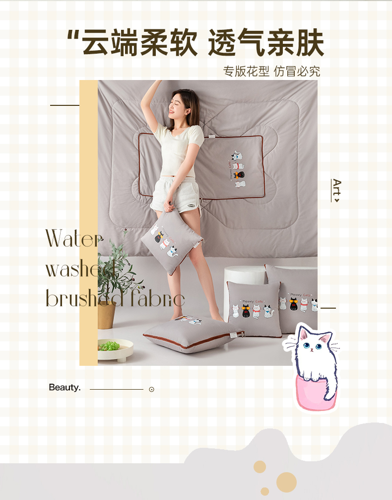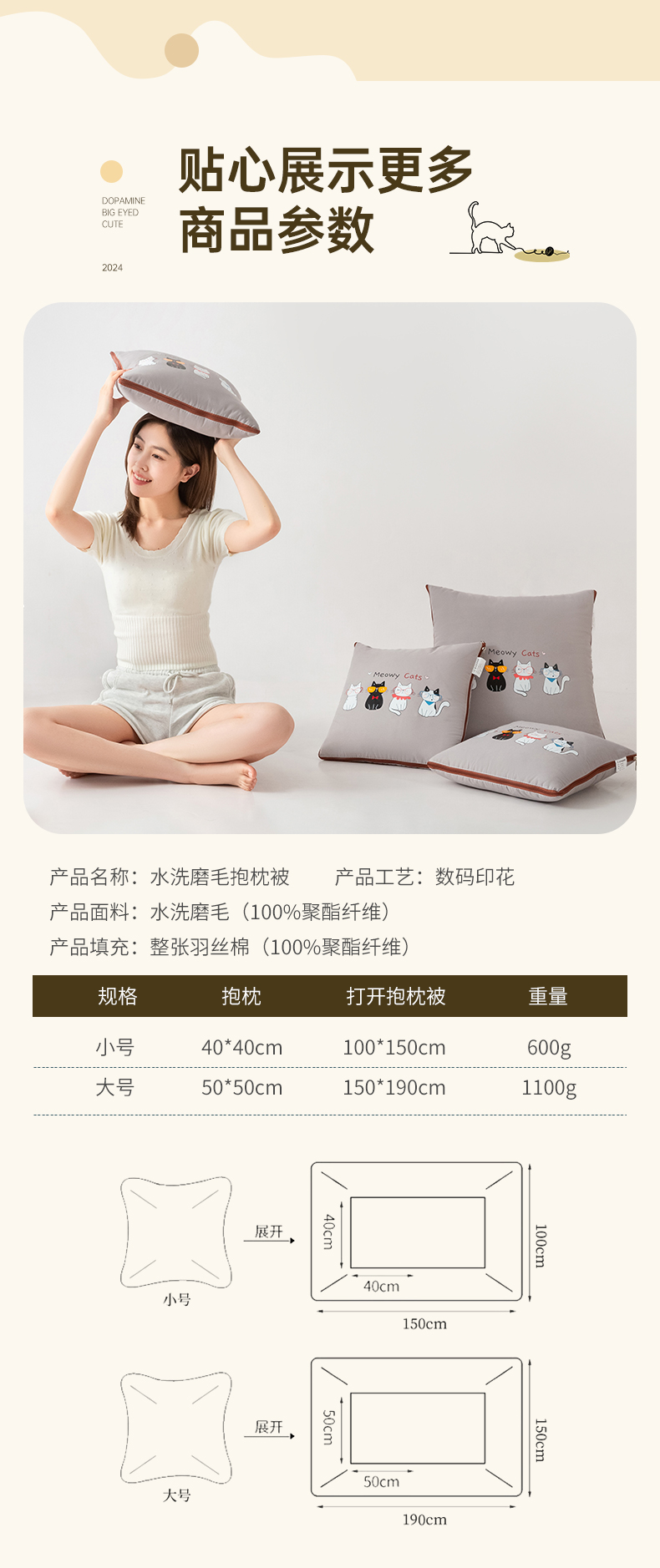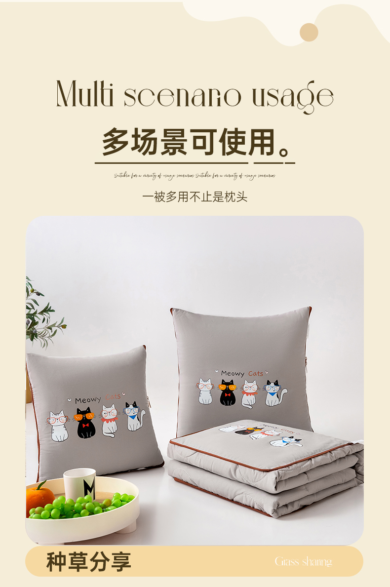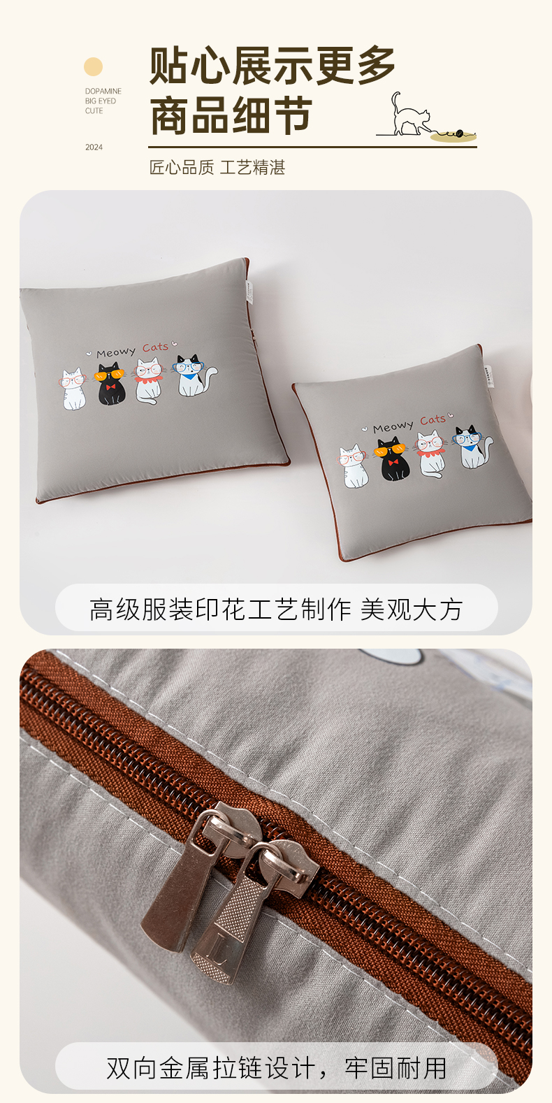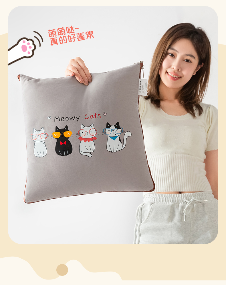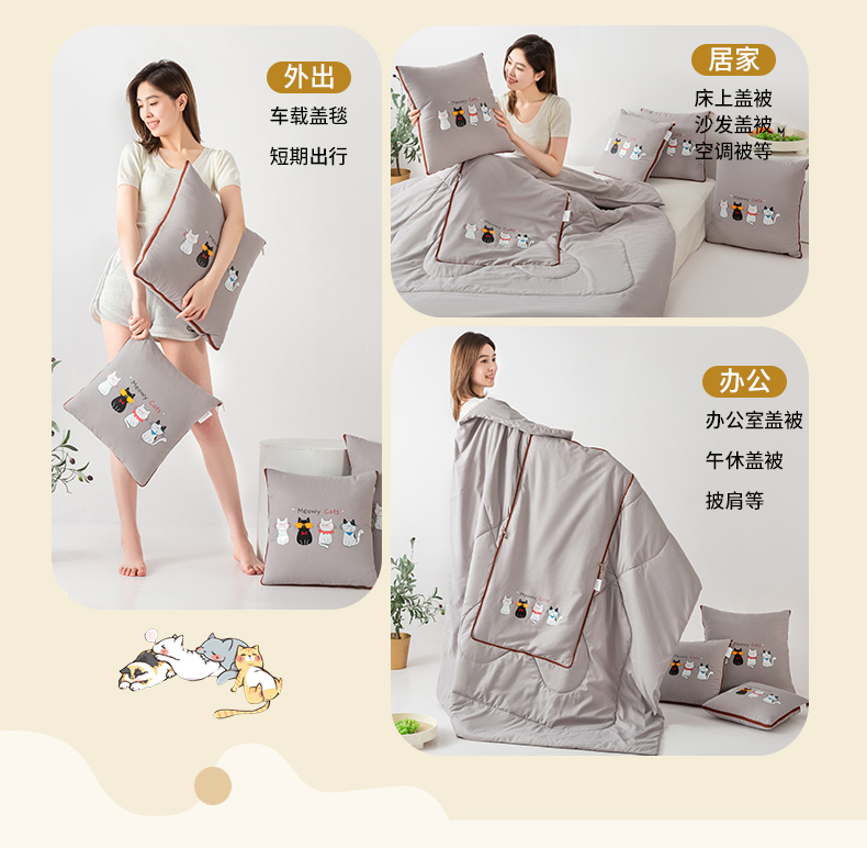 商品名称:2025新款猫咪家族四季款抱枕被 猫咪家族-灰