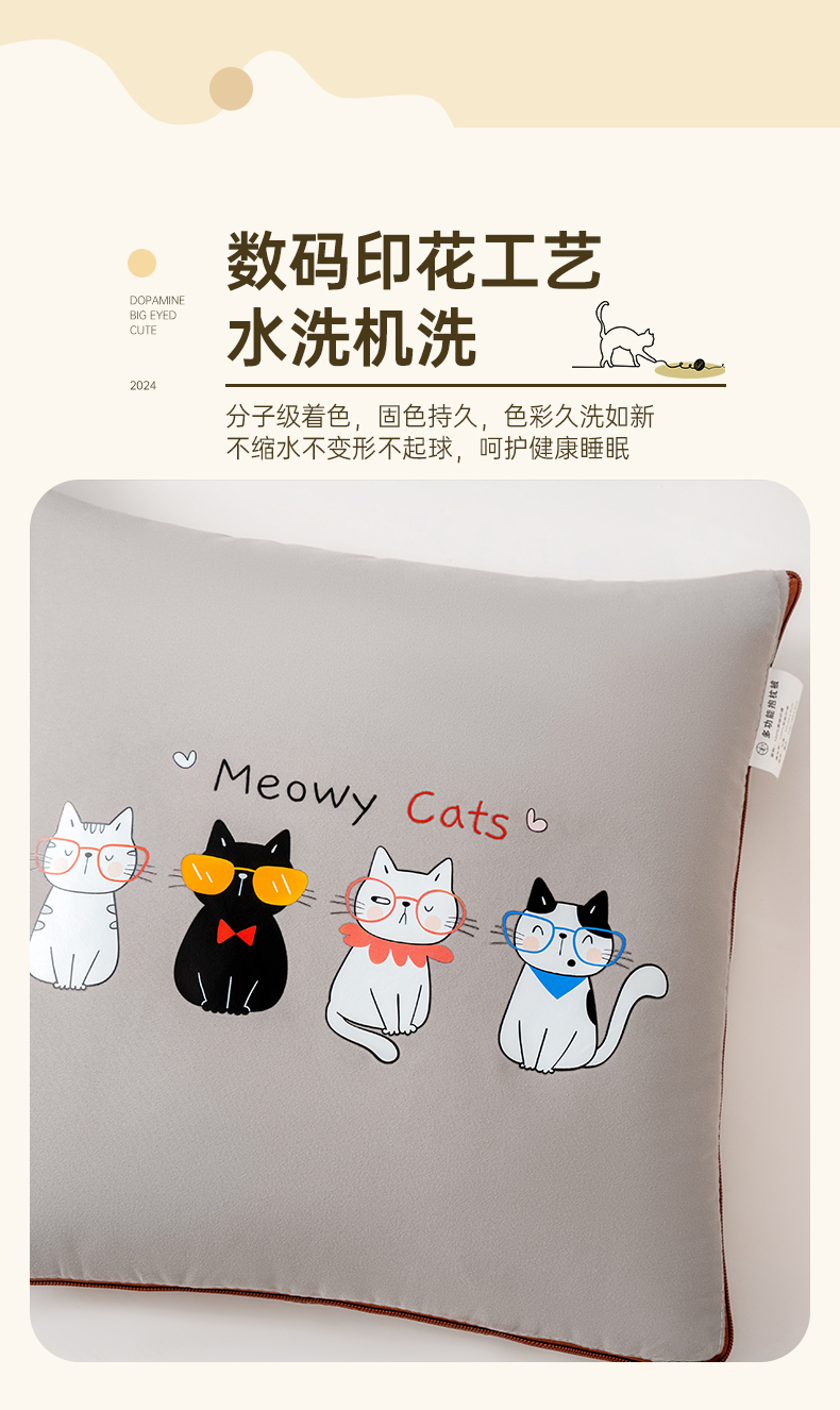 2025新款猫咪家族四季款抱枕被 猫咪家族-灰