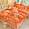 商品名称:2025秋冬新款230g全消光牛奶绒床裙款四件套纯色蕾丝花边刺绣蕾丝床裙款床盖款法式蕾丝公主粉奶油风四件套 甜心—艾玛橙