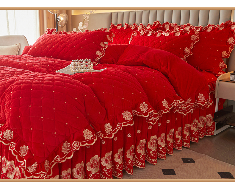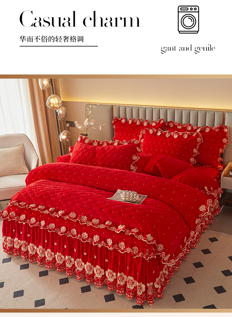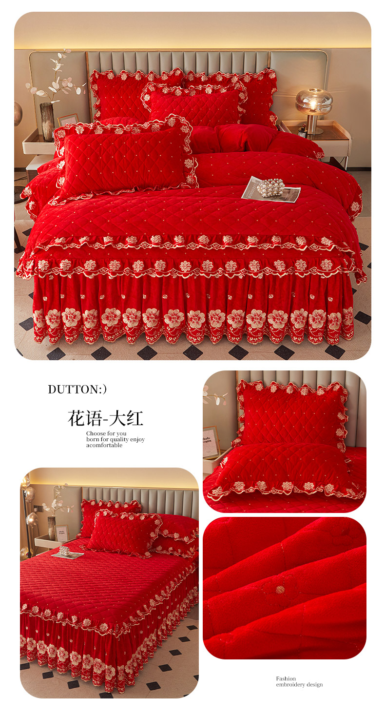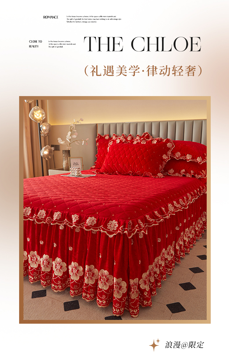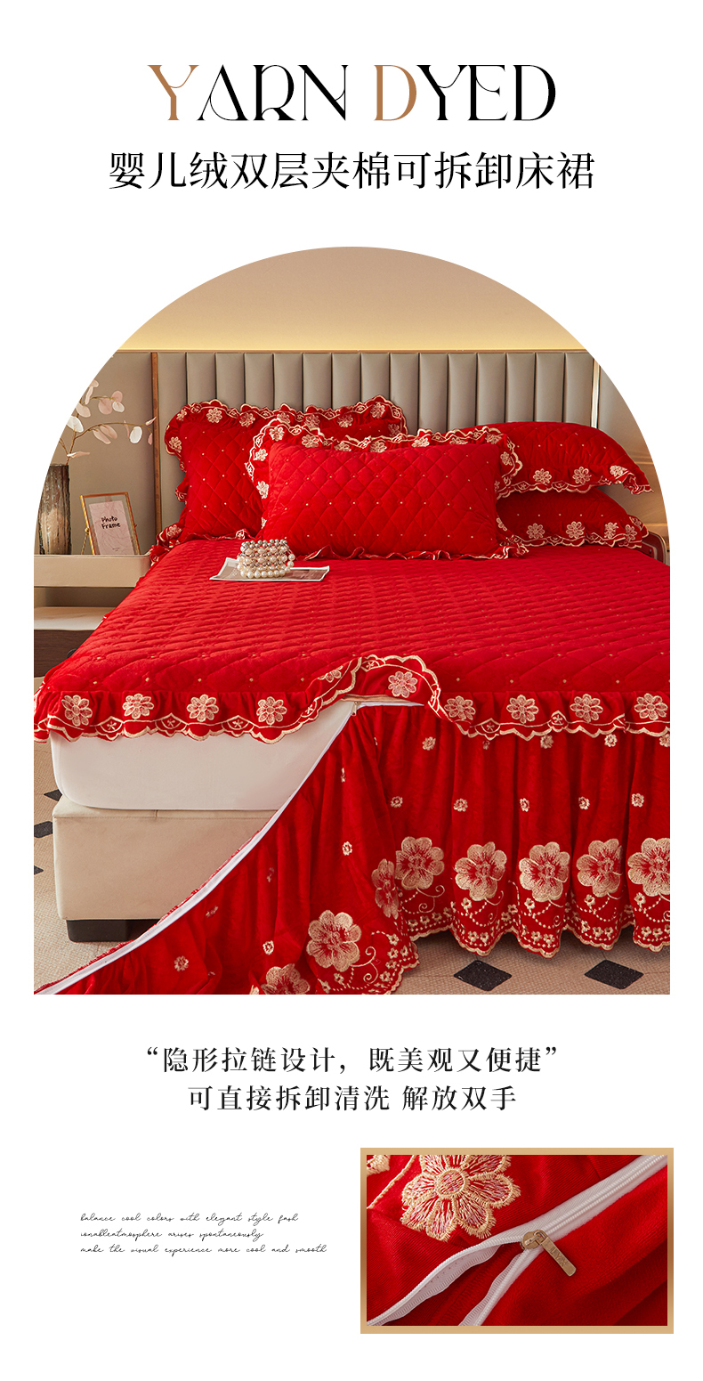 当前位置: 91家纺网 > 商品网购 > 床品套件 > 四件套 > 其它四件套 > 罗艺轩 2025新款婴儿绒双层夹棉可拆卸床裙四件套-花语 花语-大红