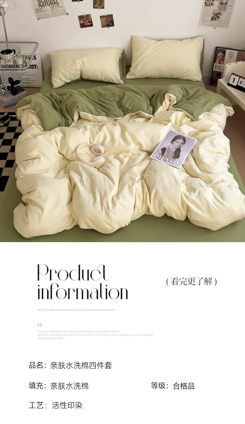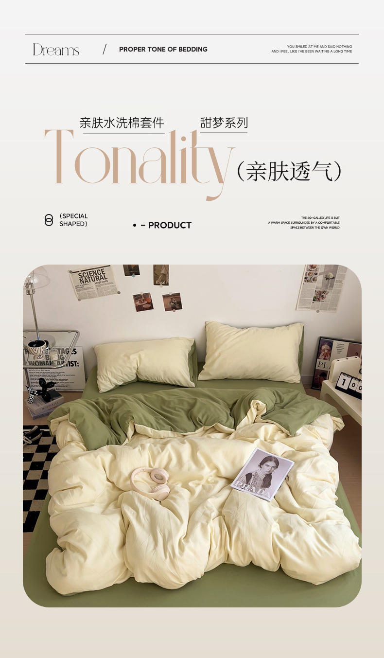 当前位置: 91家纺网 > 商品网购 > 床品套件 > 四件套 > 水洗棉四件套 > 梦卓家纺 2025爆款ins风超柔褶皱亲肤磨毛水洗棉四件套 奶黄+芥末绿