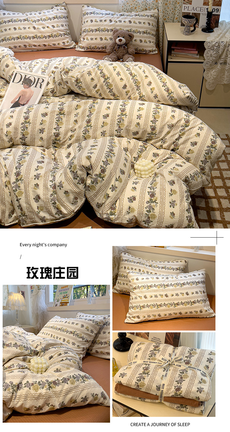 当前位置: 91家纺网 > 商品网购 > 床品套件 > 四件套 > 其它四件套 > 奈颜 2025新款爆款云感提花双层纱裸睡四件套 玫瑰庄园