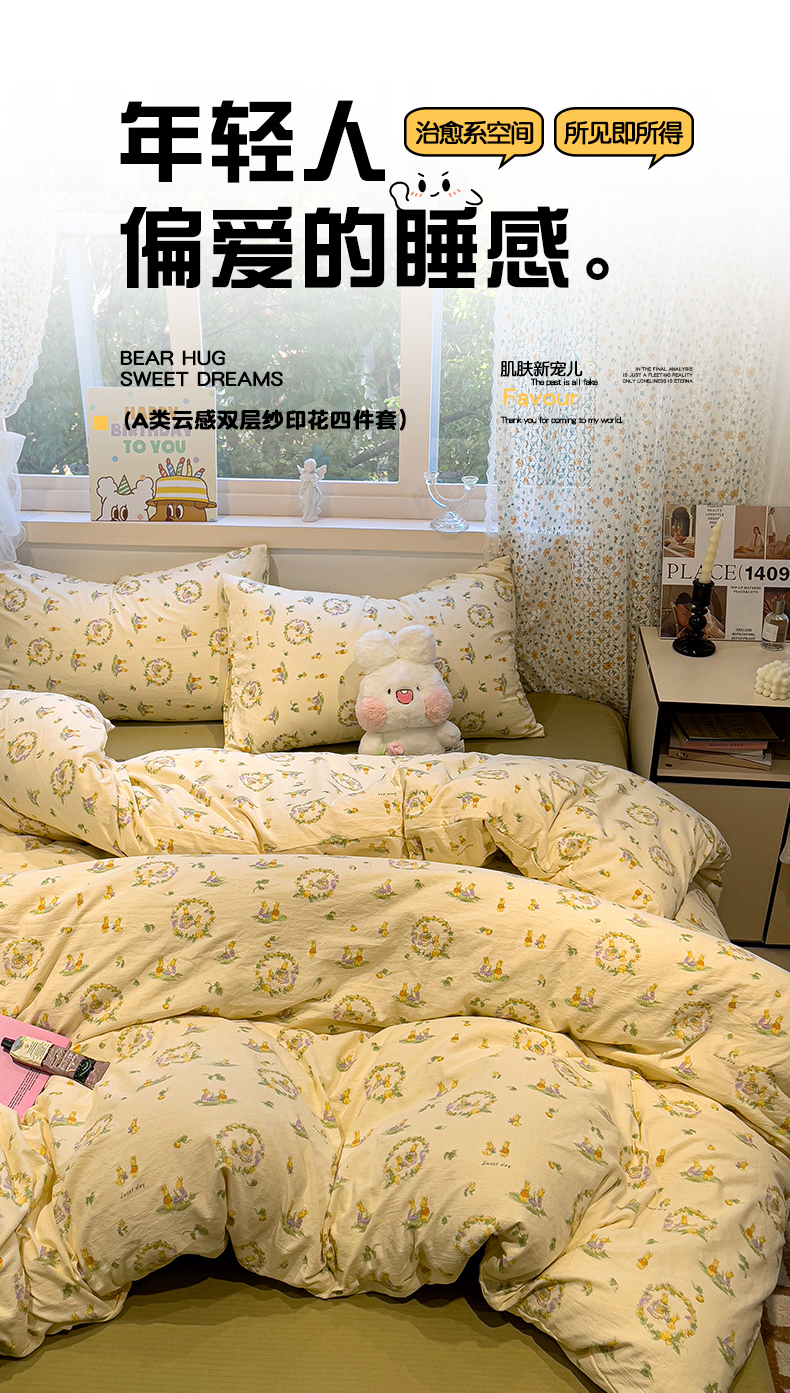 当前位置: 91家纺网 > 商品网购 > 床品套件 > 四件套 > 其它四件套 > 奈颜 2025新款爆款云感提花双层纱裸睡四件套-叠拍图 多多兔