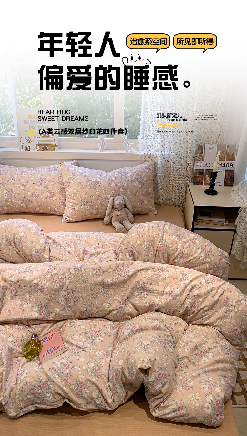 当前位置: 91家纺网 > 商品网购 > 床品套件 > 四件套 > 其它四件套 > 奈颜 2025新款爆款云感提花双层纱裸睡四件套-叠拍图 漫花田