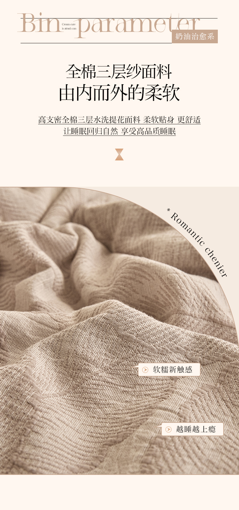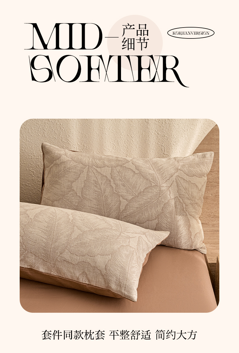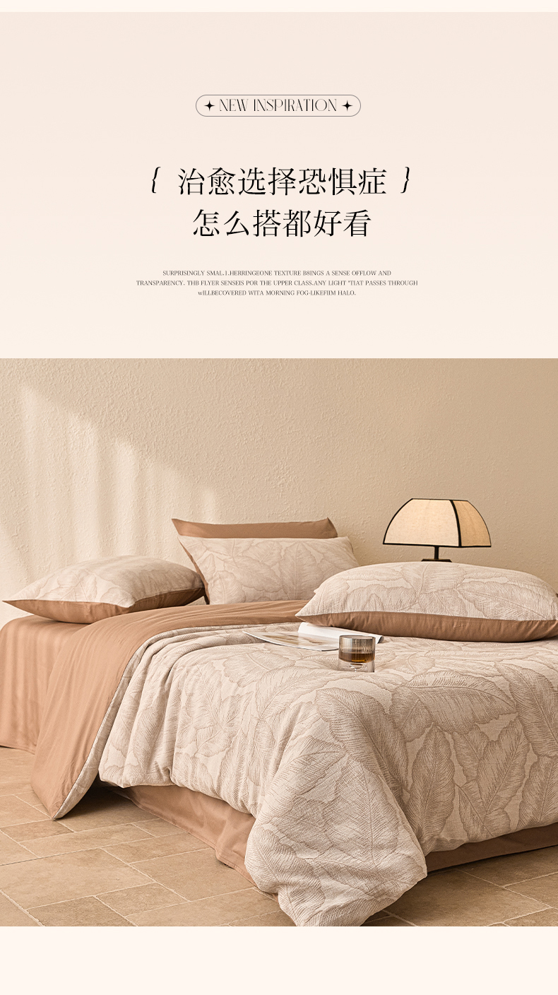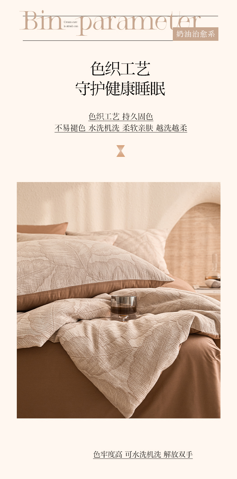 当前位置: 91家纺网 > 商品网购 > 床品套件 > 四件套 > 全棉普通四件套 > 2025新款全棉三层纱色织大提花四件套系列 叶菱-咖