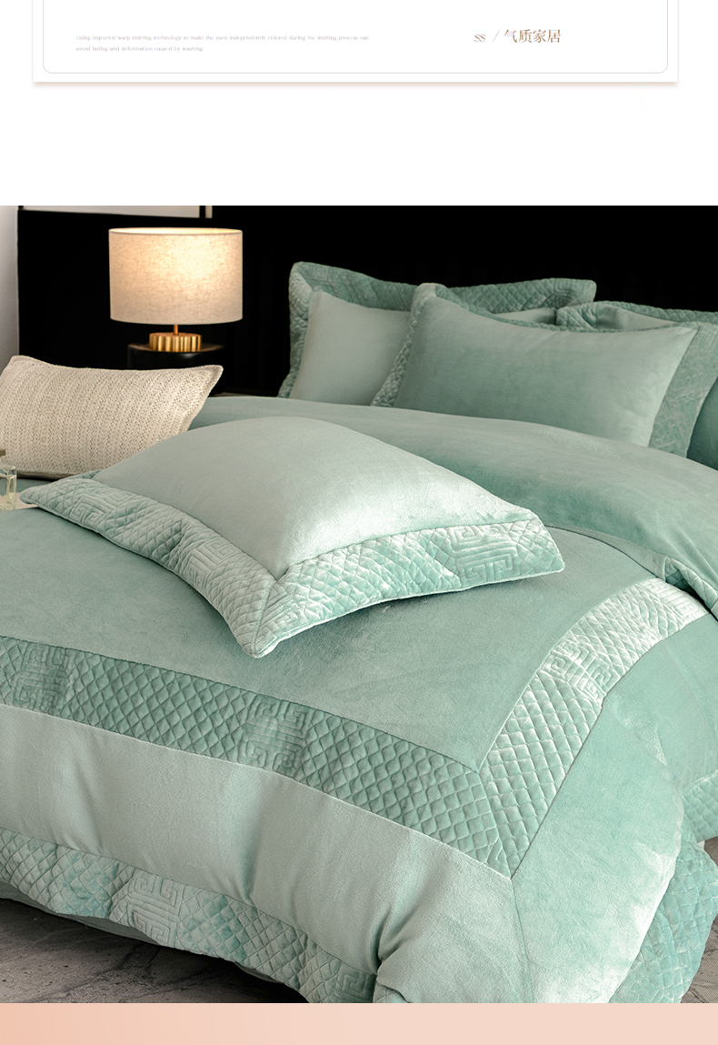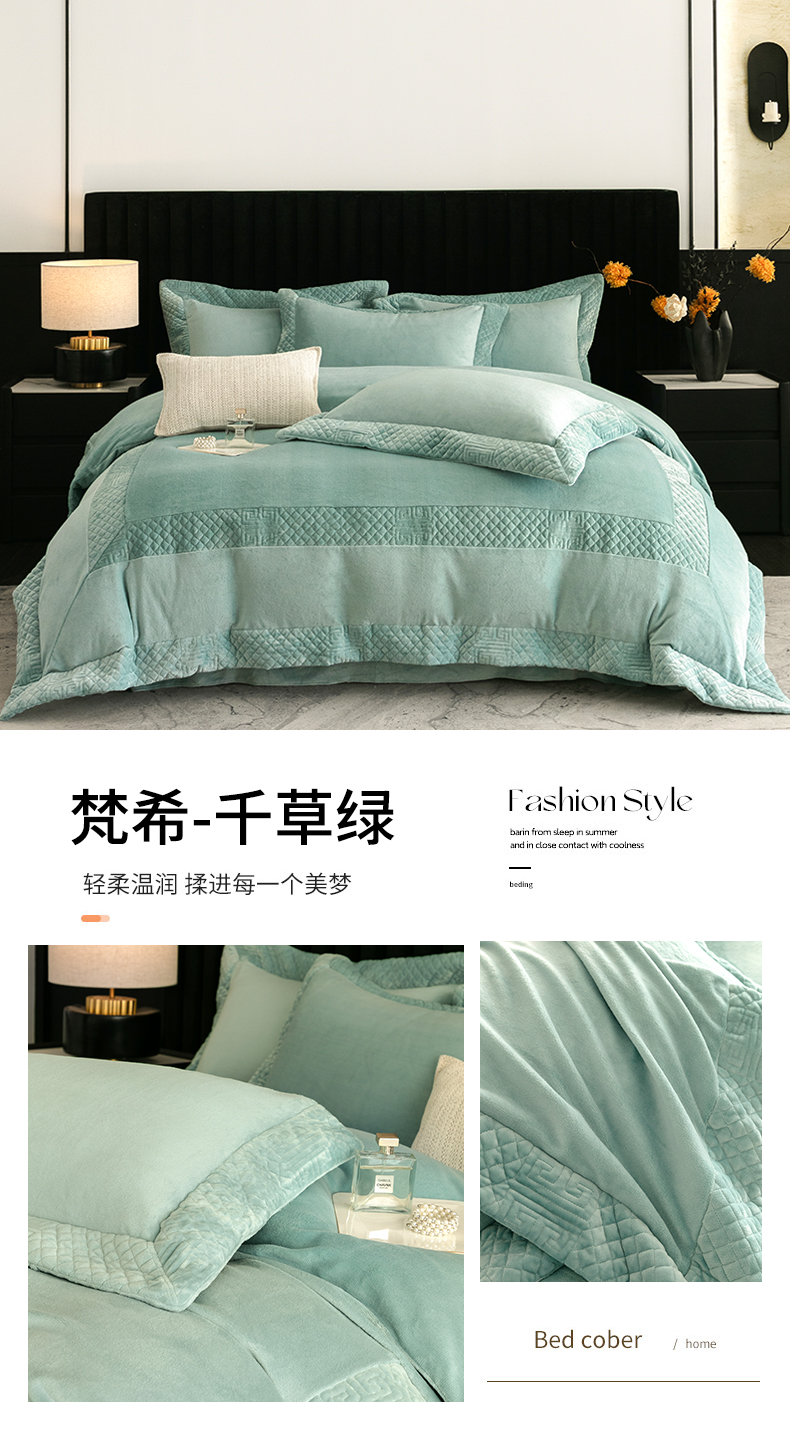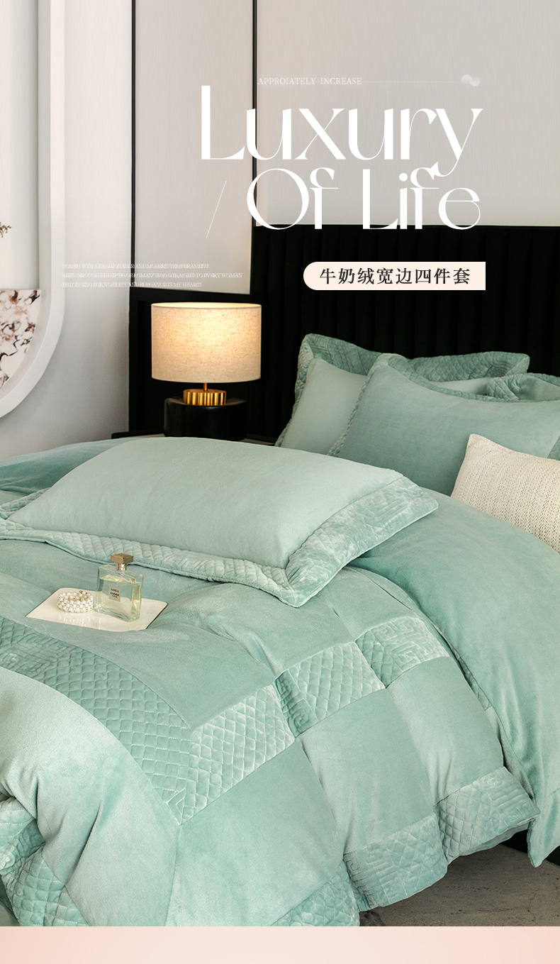 商品名称:保罗圣迪奥 2025新款牛奶绒宽边四件套-梵希 梵希-千草绿