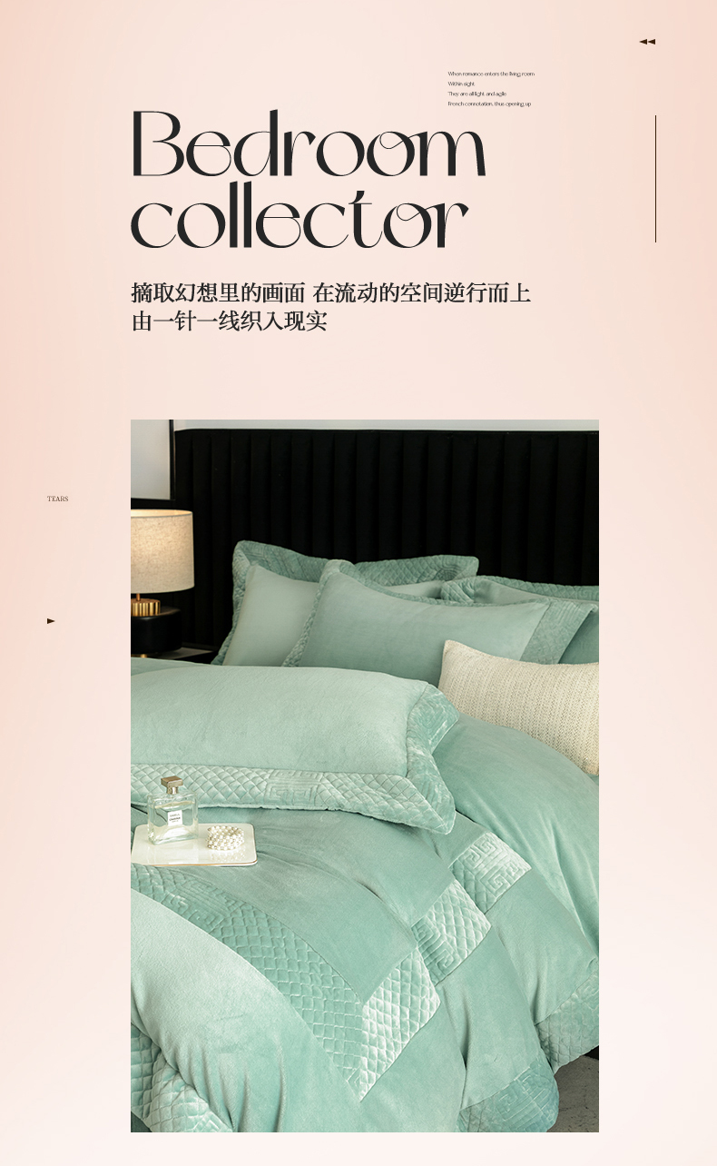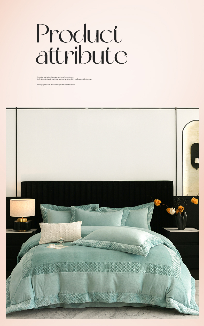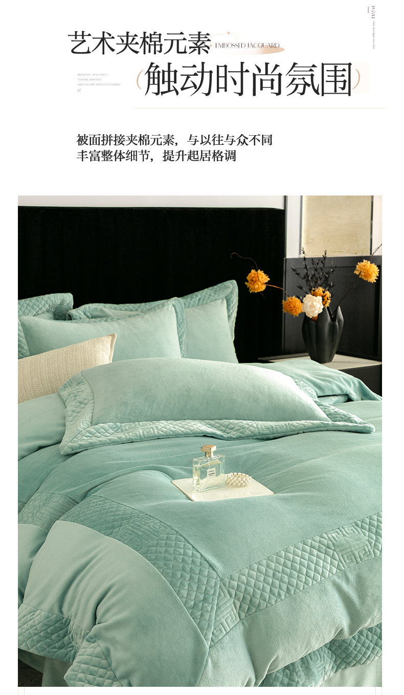 商品名称:保罗圣迪奥 2025新款牛奶绒宽边四件套-梵希 梵希-千草绿