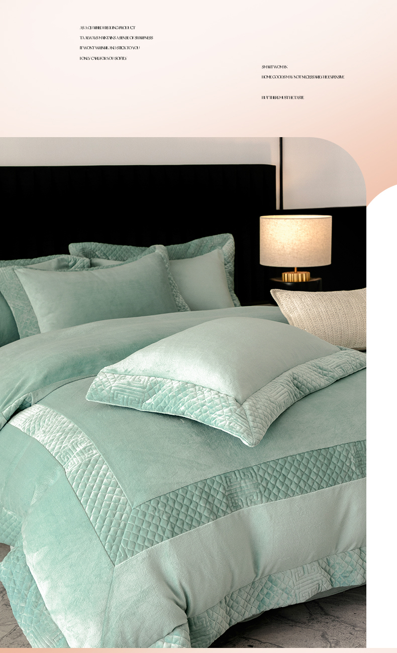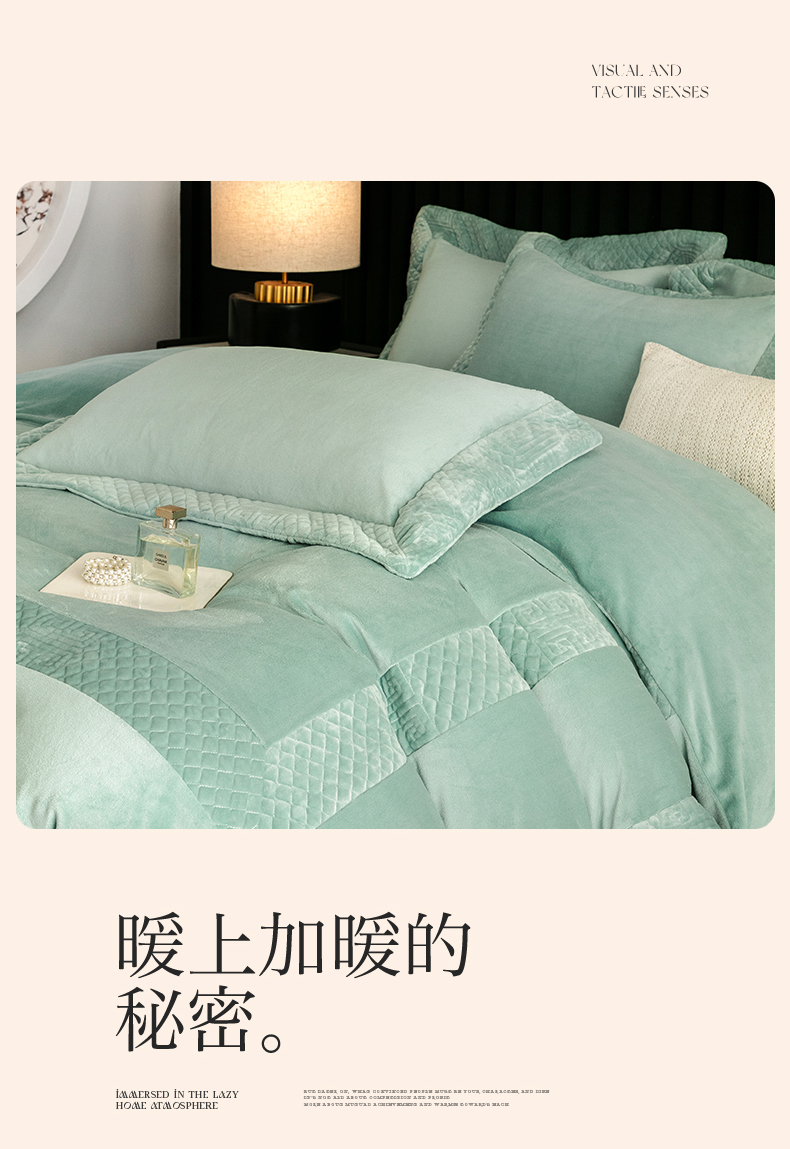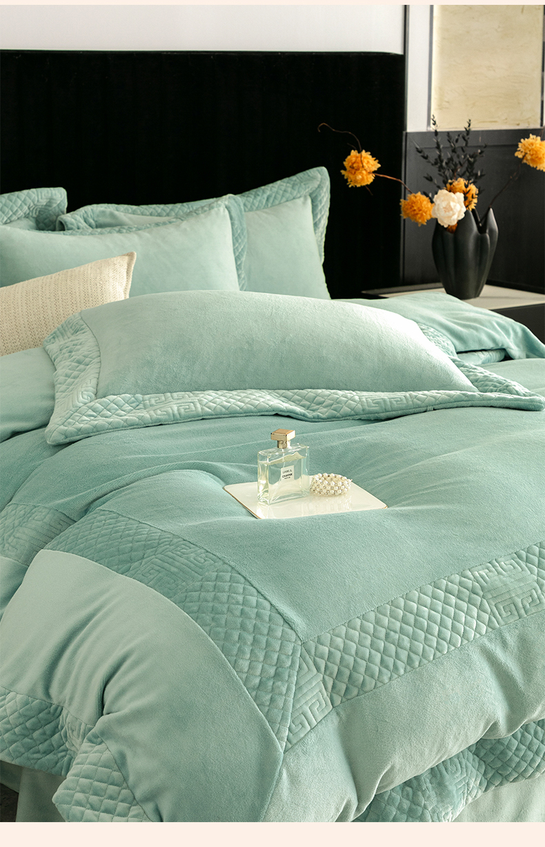 保罗圣迪奥 2025新款牛奶绒宽边四件套-梵希 梵希-千草绿