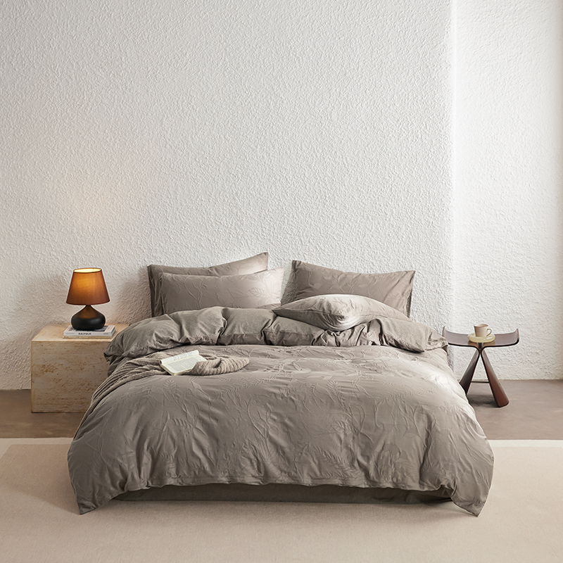 当前位置: 91家纺网 > 商品网购 > 床品套件 > 四件套 > 其它四件套 > 2025春夏新品染色水洗大提花四件套 叶影-卡其