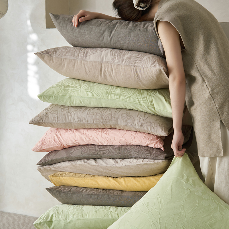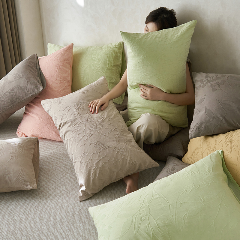 商品名称:2025春夏新品染色水洗大提花单品枕套 叶影-浅灰