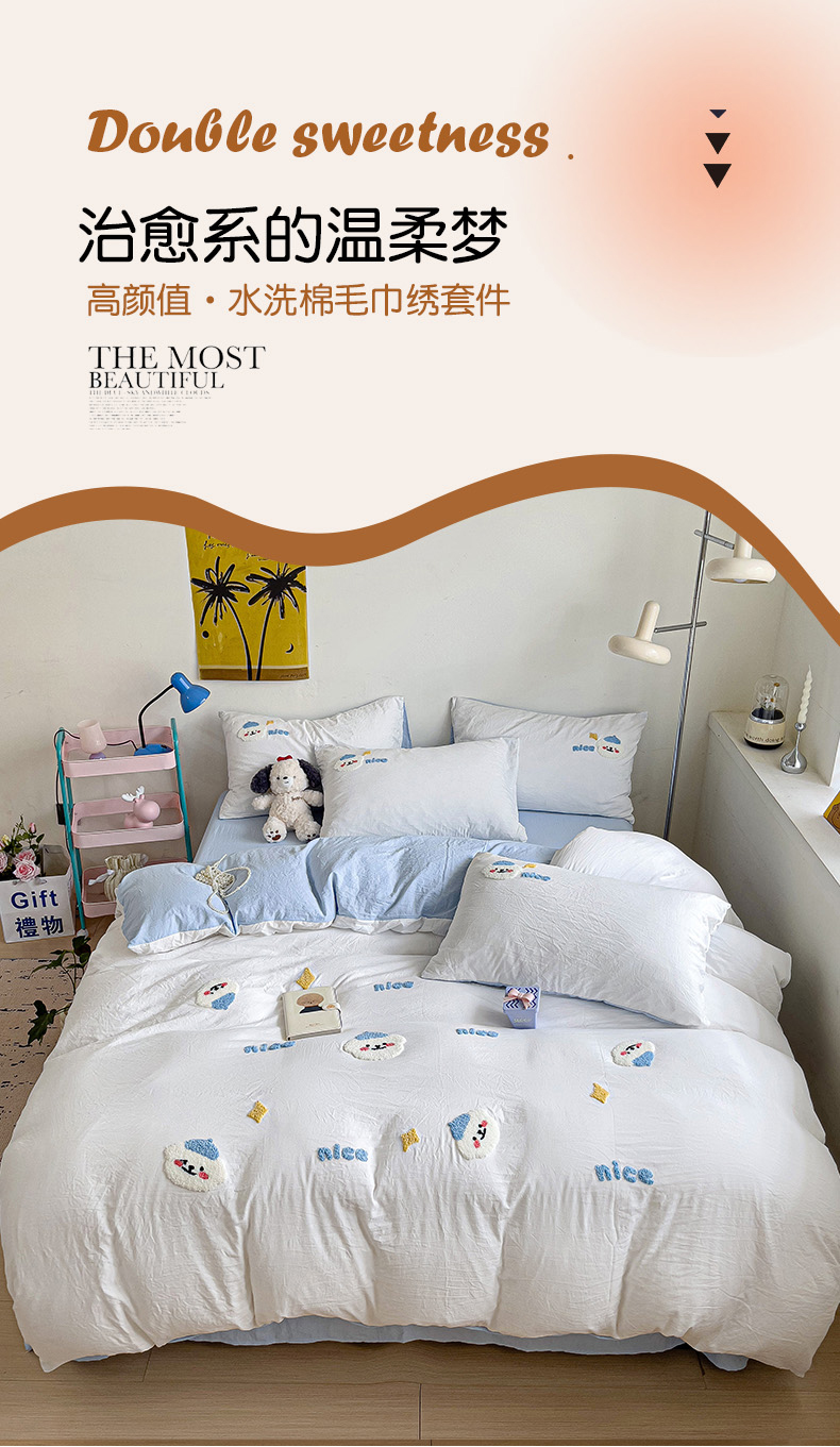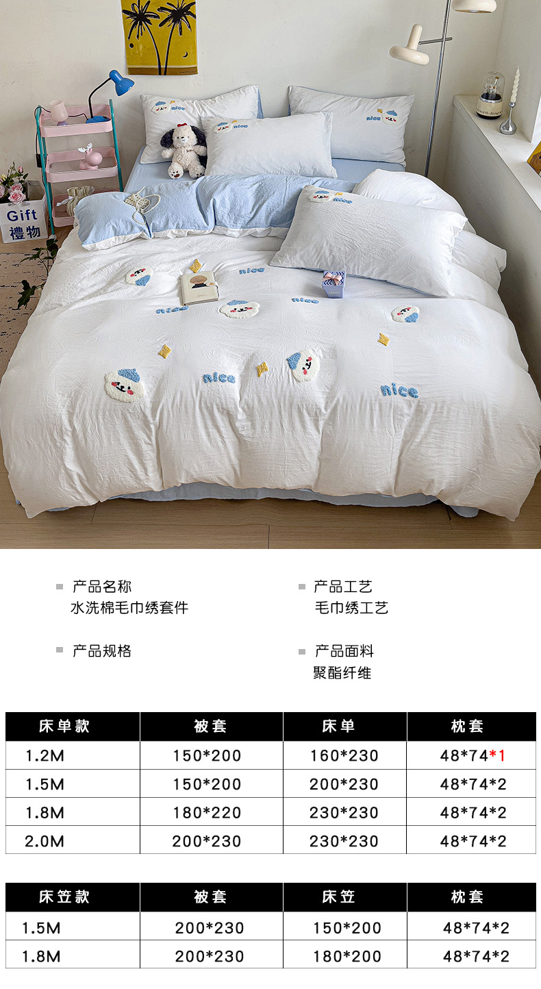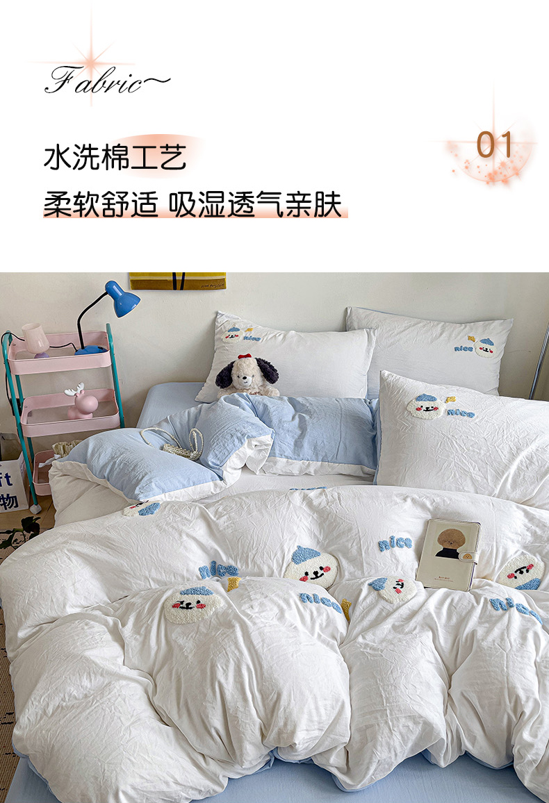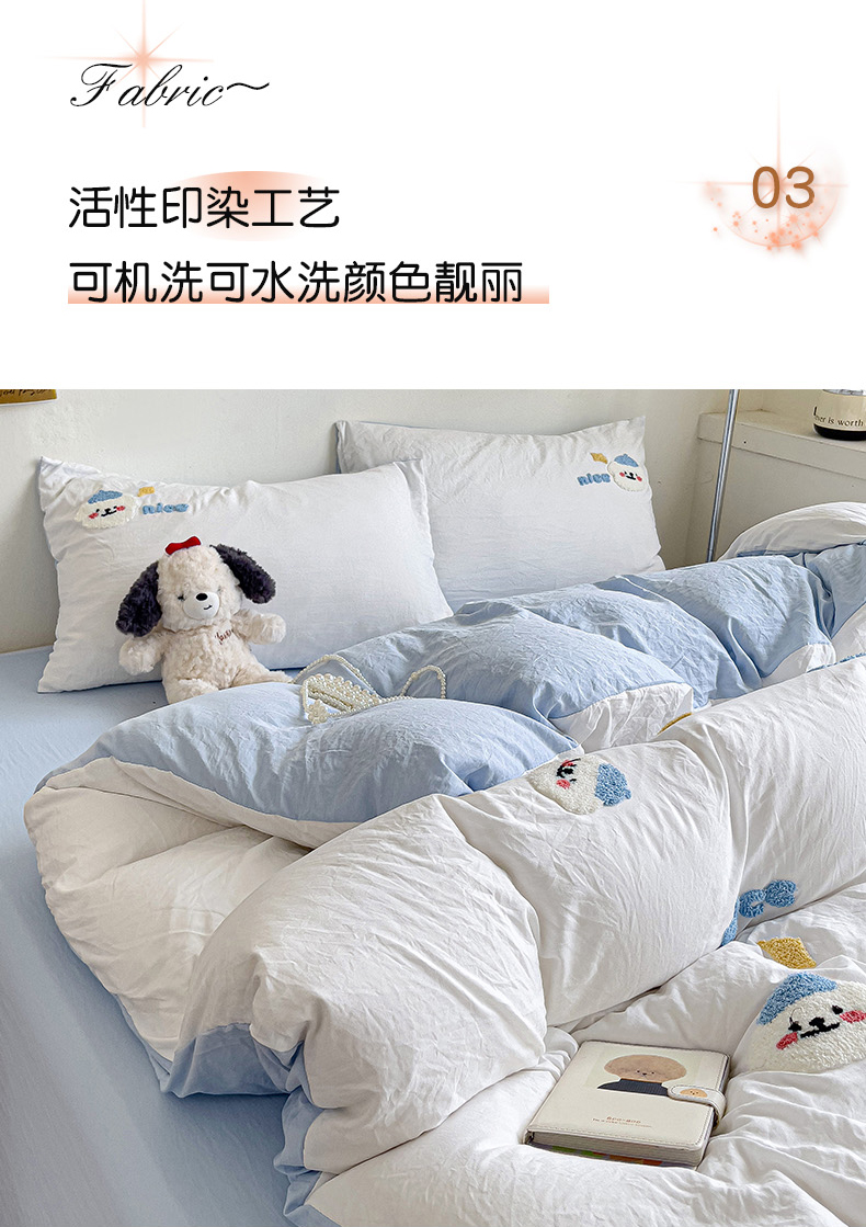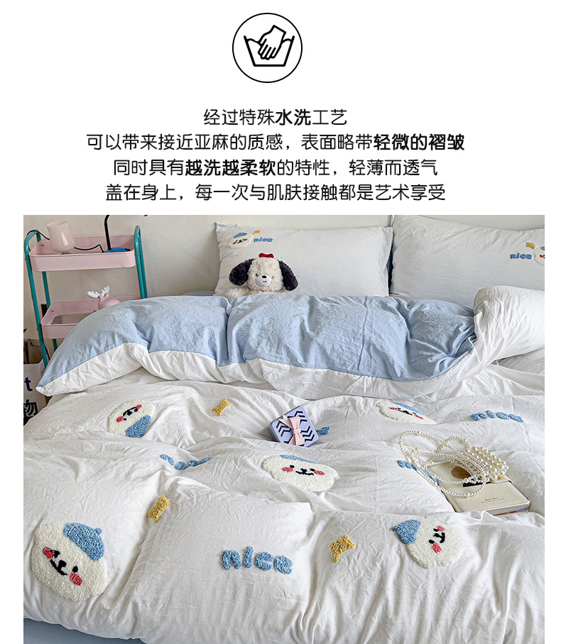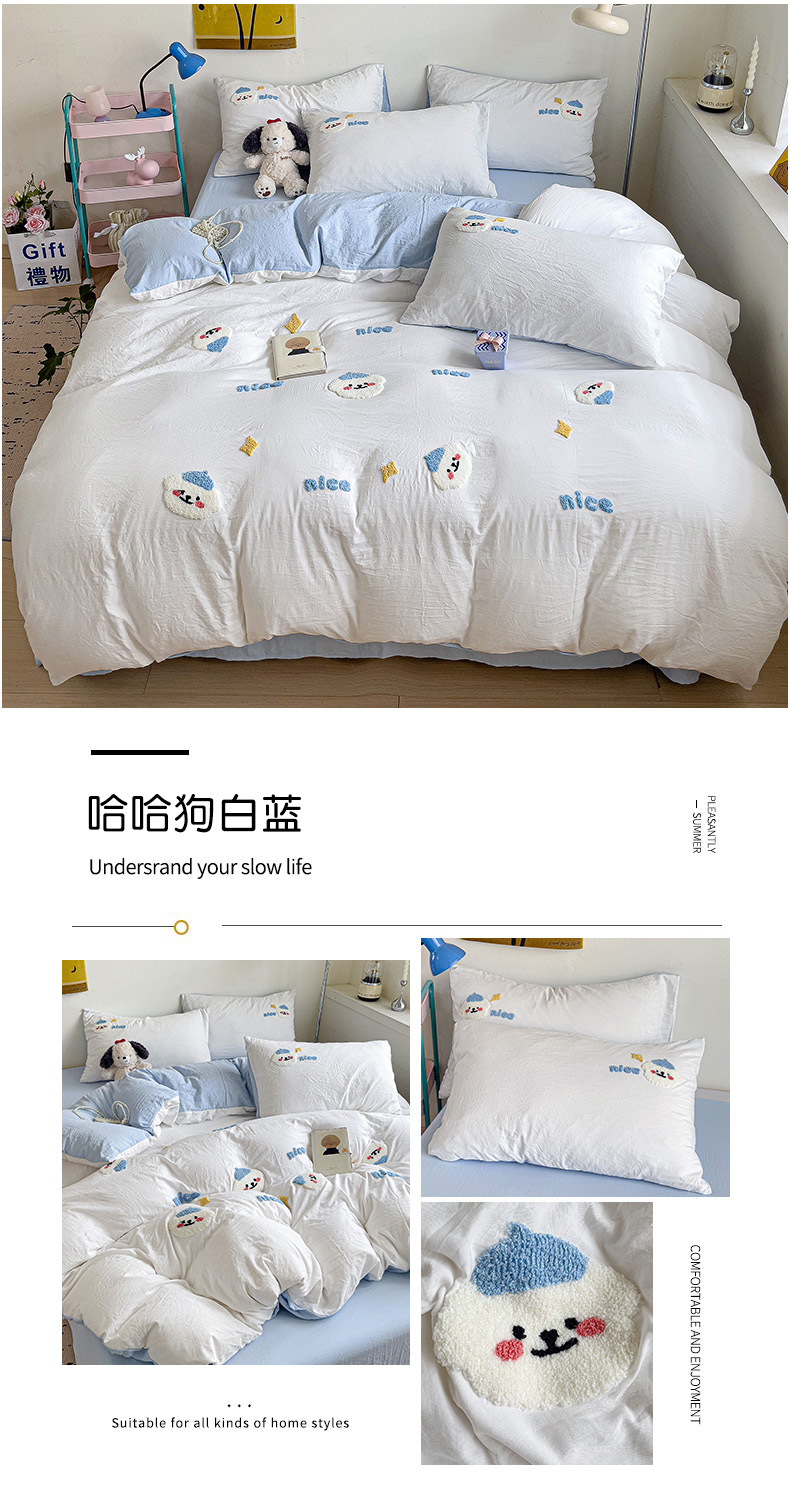 当前位置: 91家纺网 > 商品网购 > 床品套件 > 四件套 > 水洗棉四件套 > 韩巢家纺 2025款超柔水洗棉毛巾绣床上用品四件套-哈哈狗系列二(提供卖家秀 ) 哈哈狗白蓝