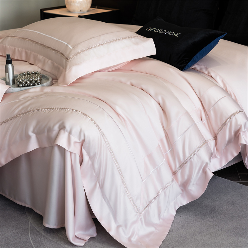 初拾 2025新款100s澳棉简约刺绣四件套-柏林 柏林-雅灰粉