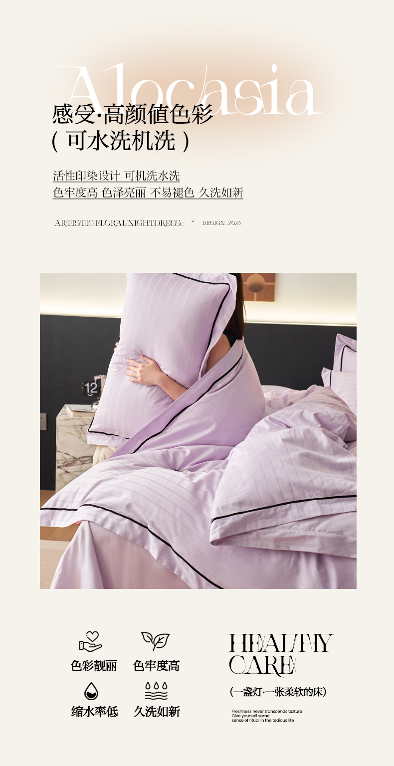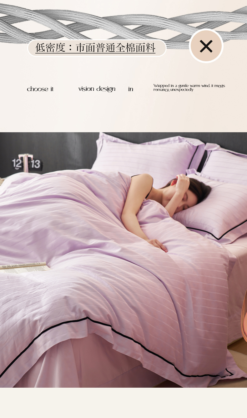 (总)三朵家纺 2026新款全棉纯棉双层纱方糖系列四件套,方糖-粉,方糖-紫