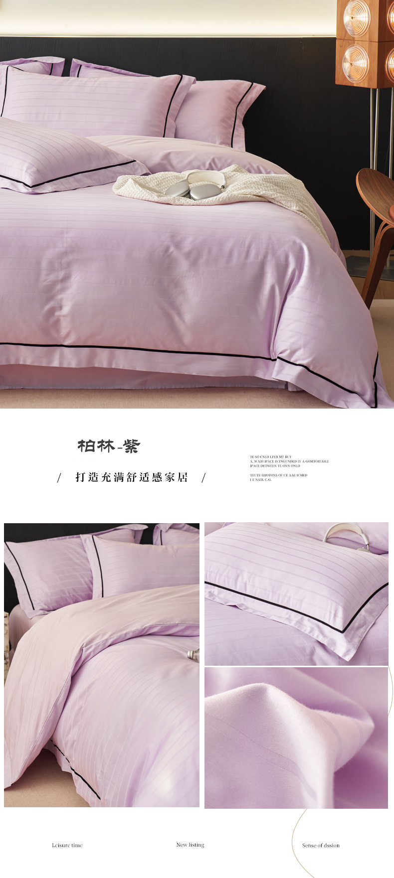 三朵全棉60S贡缎长绒棉大提花四件套-柏林系列 柏林-紫