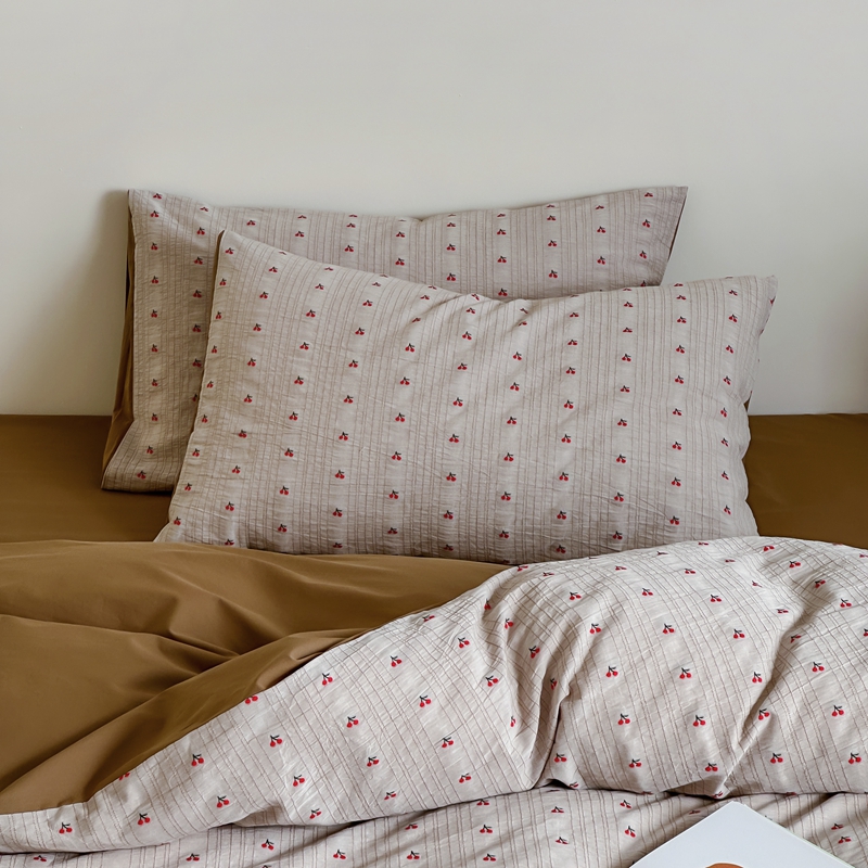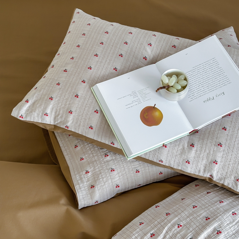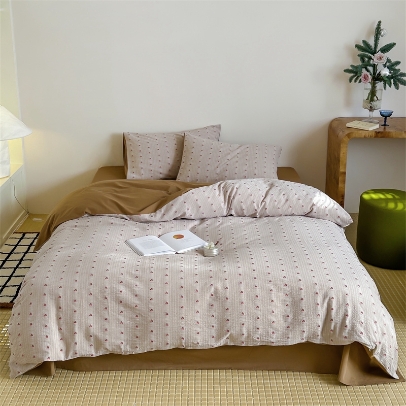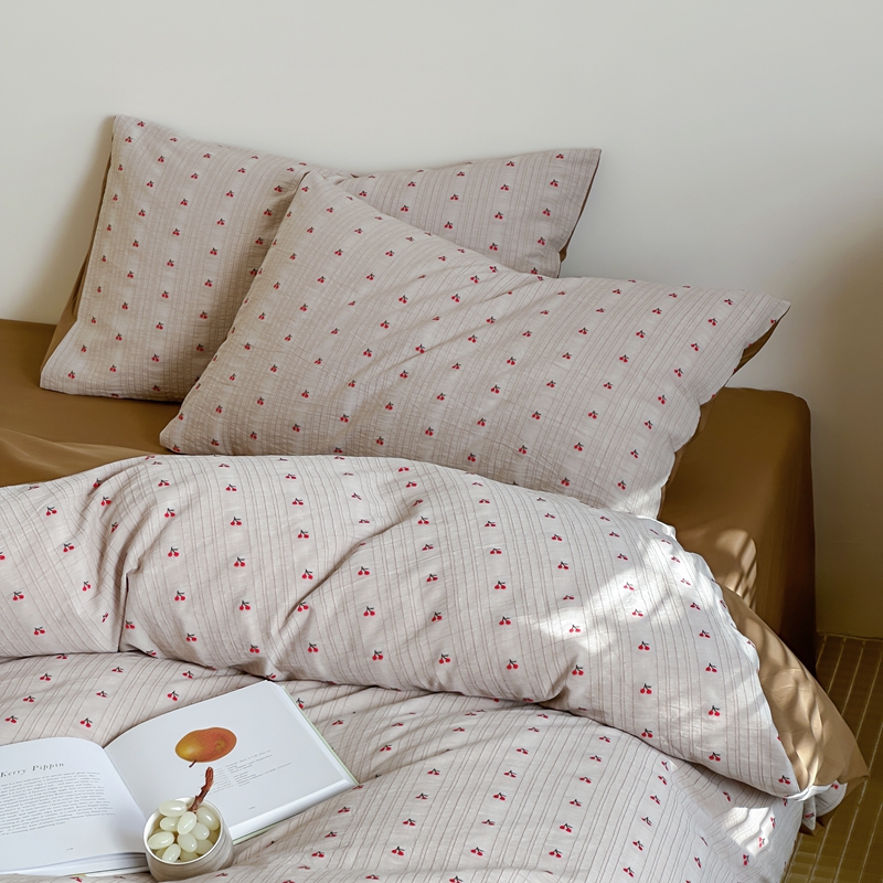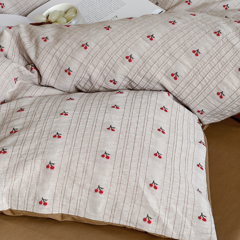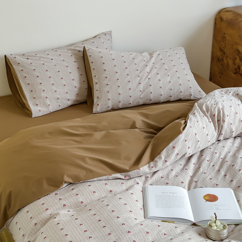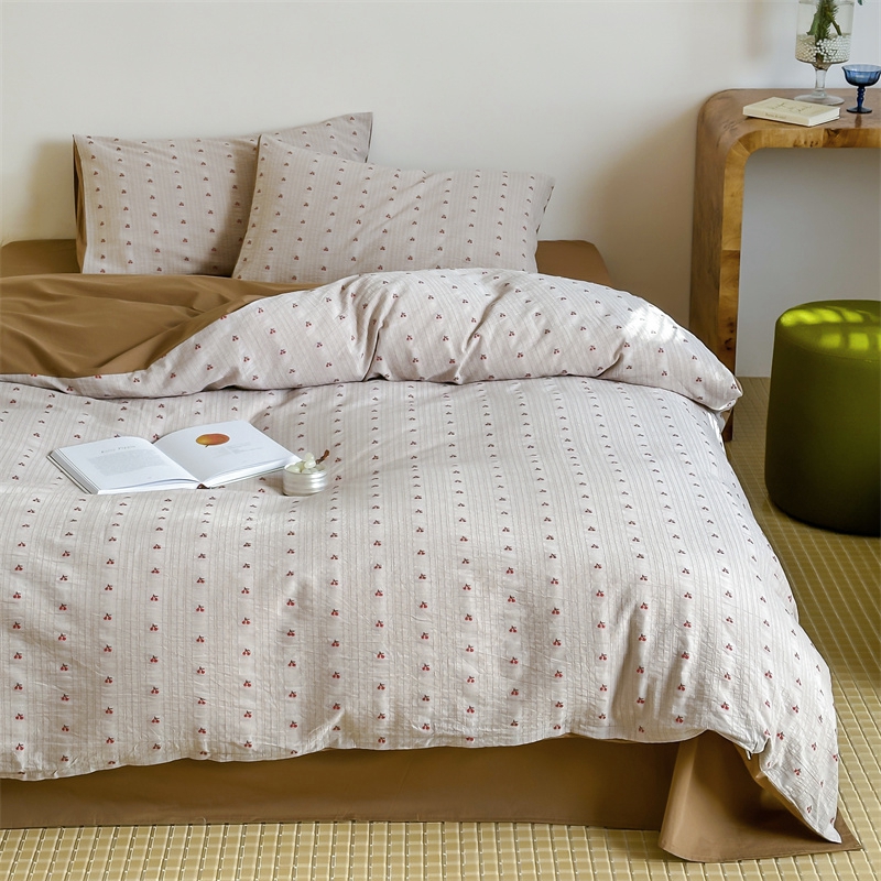 云上 2025新款小樱桃大提花水洗棉四件套 樱桃-咖