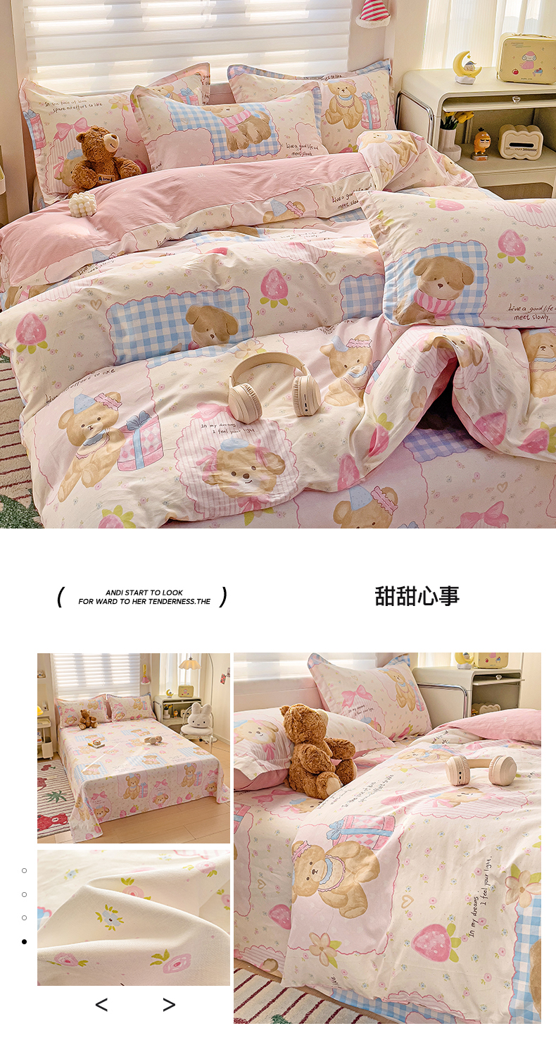 当前位置: 91家纺网 > 商品网购 > 床品套件 > 四件套 > 全棉普通四件套 > 春雨家居 2025新款春夏卡通印花全棉四件套 甜甜心事