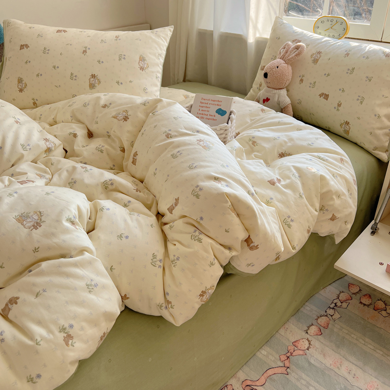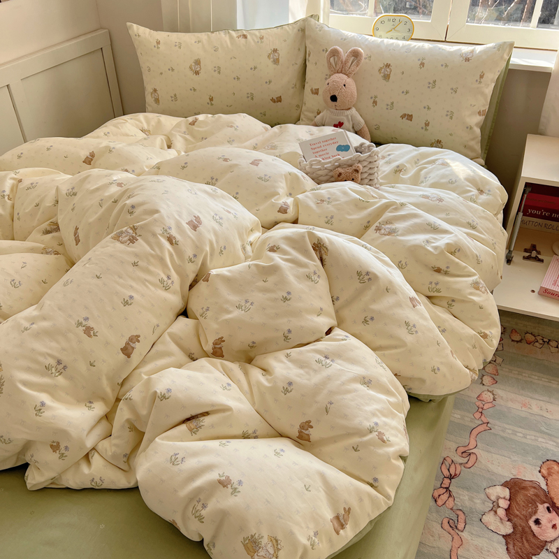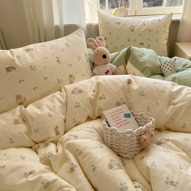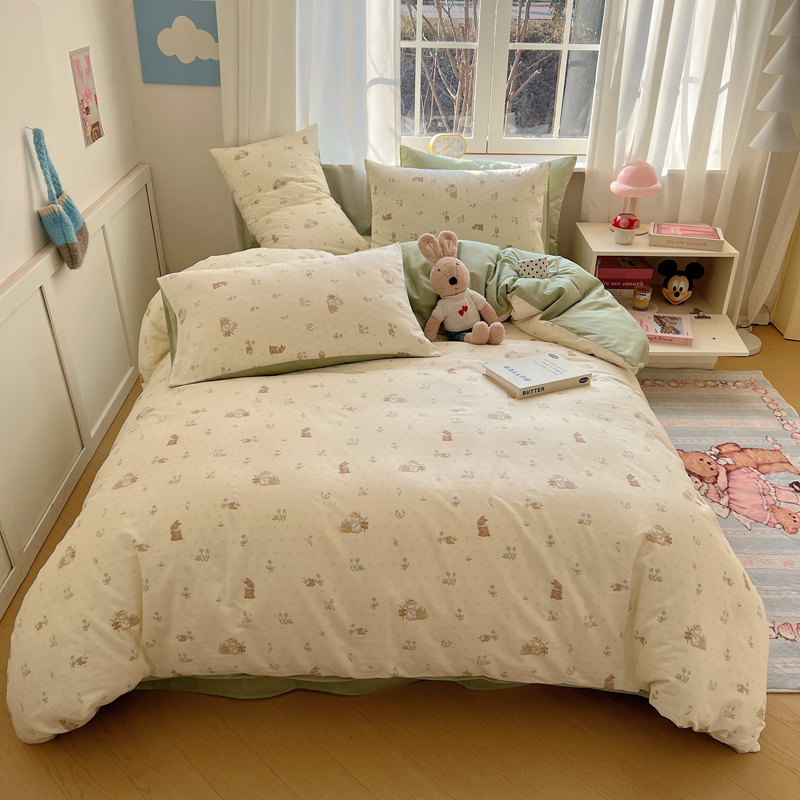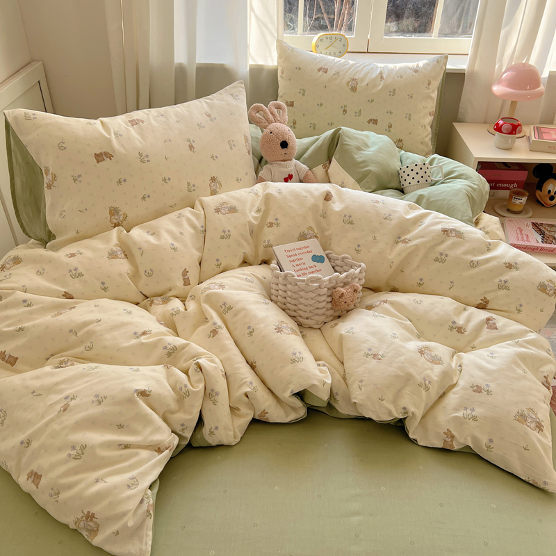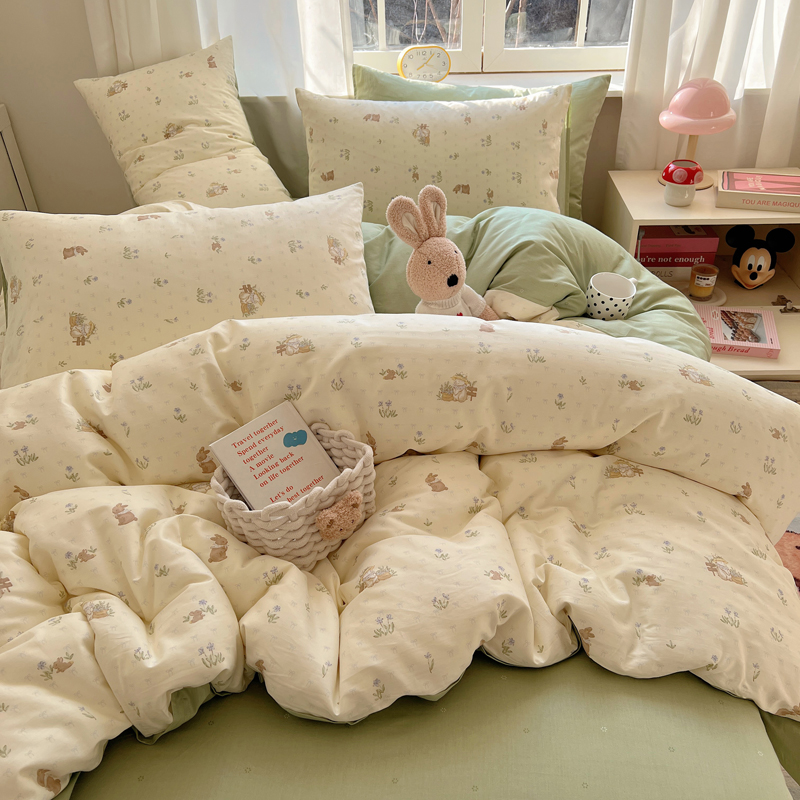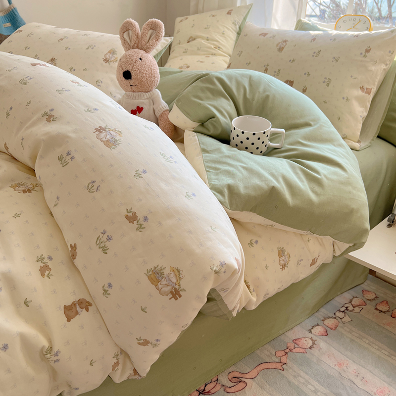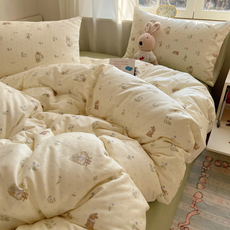 桃喜 2025新款春夏全棉卡通系列13372四件套 草帽兔