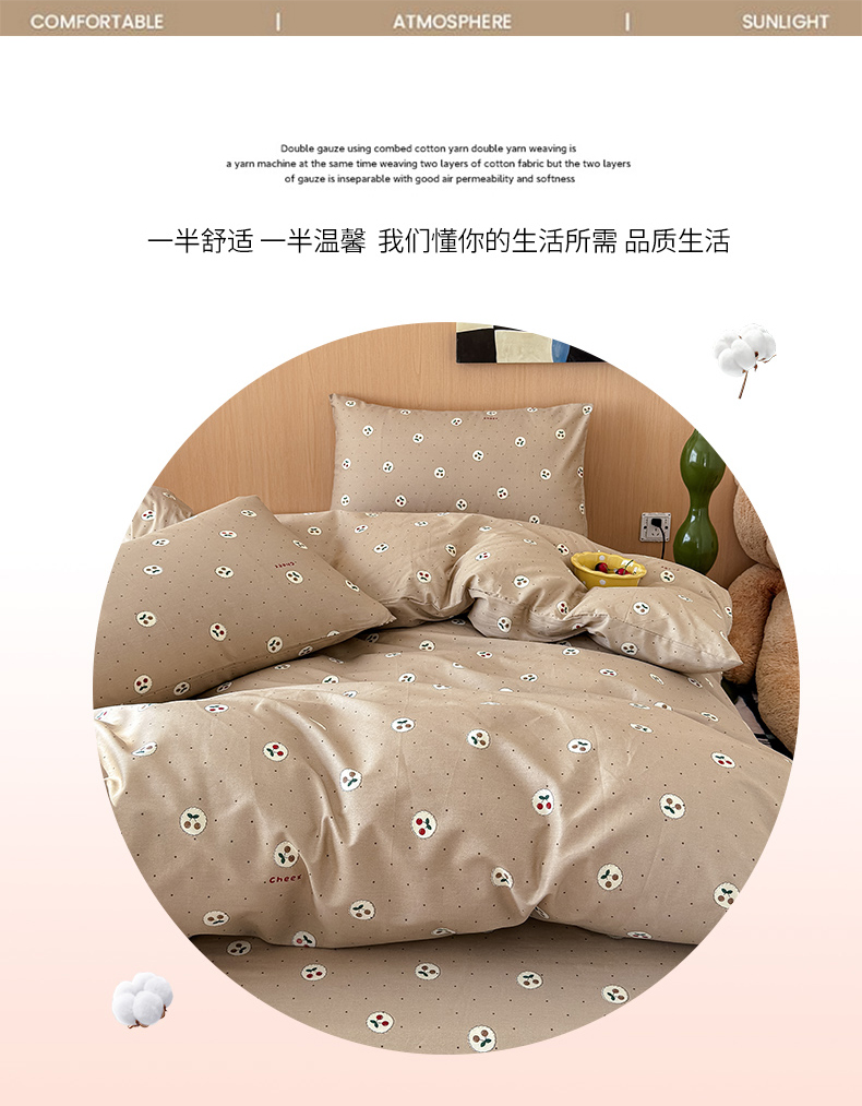 (总)感遇家纺 2025新款全棉纯棉千柔双层纱四件套,豹纹猫,豹纹猫粉,彩虹点点,风铃草,格子爱心咖,韩系蓝条,欢乐狗,蓝色小鱼,露娜,牛奶猫,青花瓷,轻奢小熊,盛夏,甜系少女,兔稚,紫樱猫语