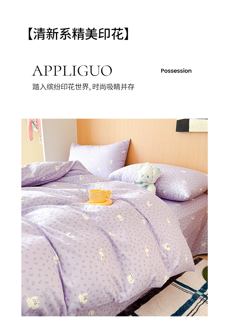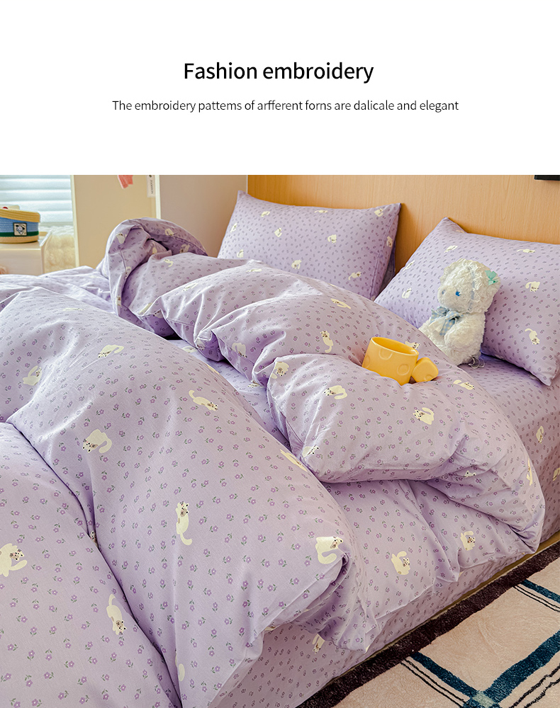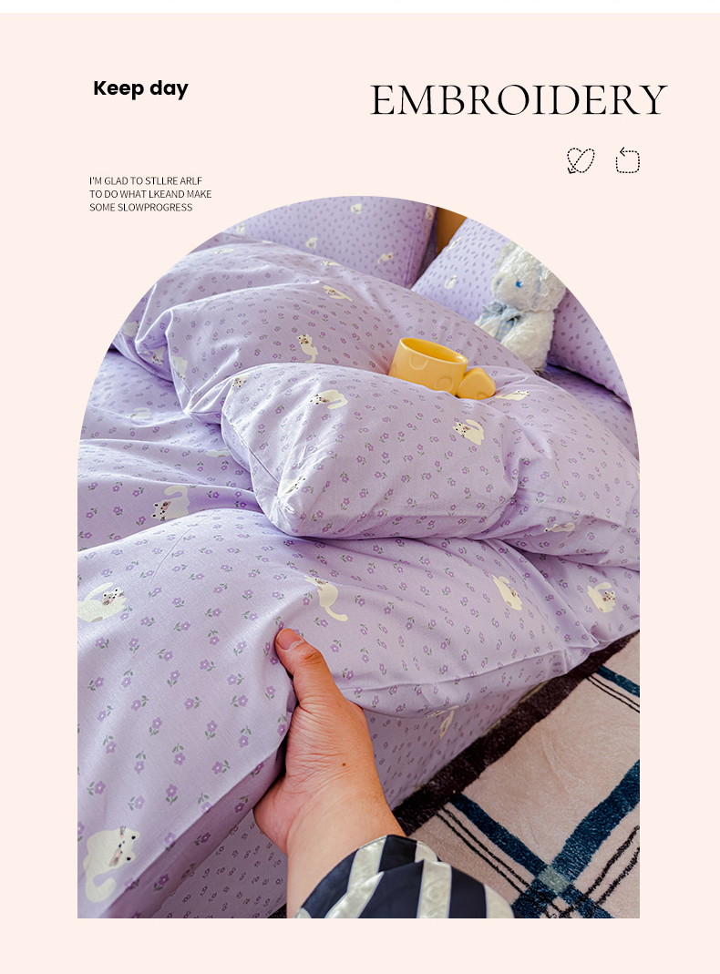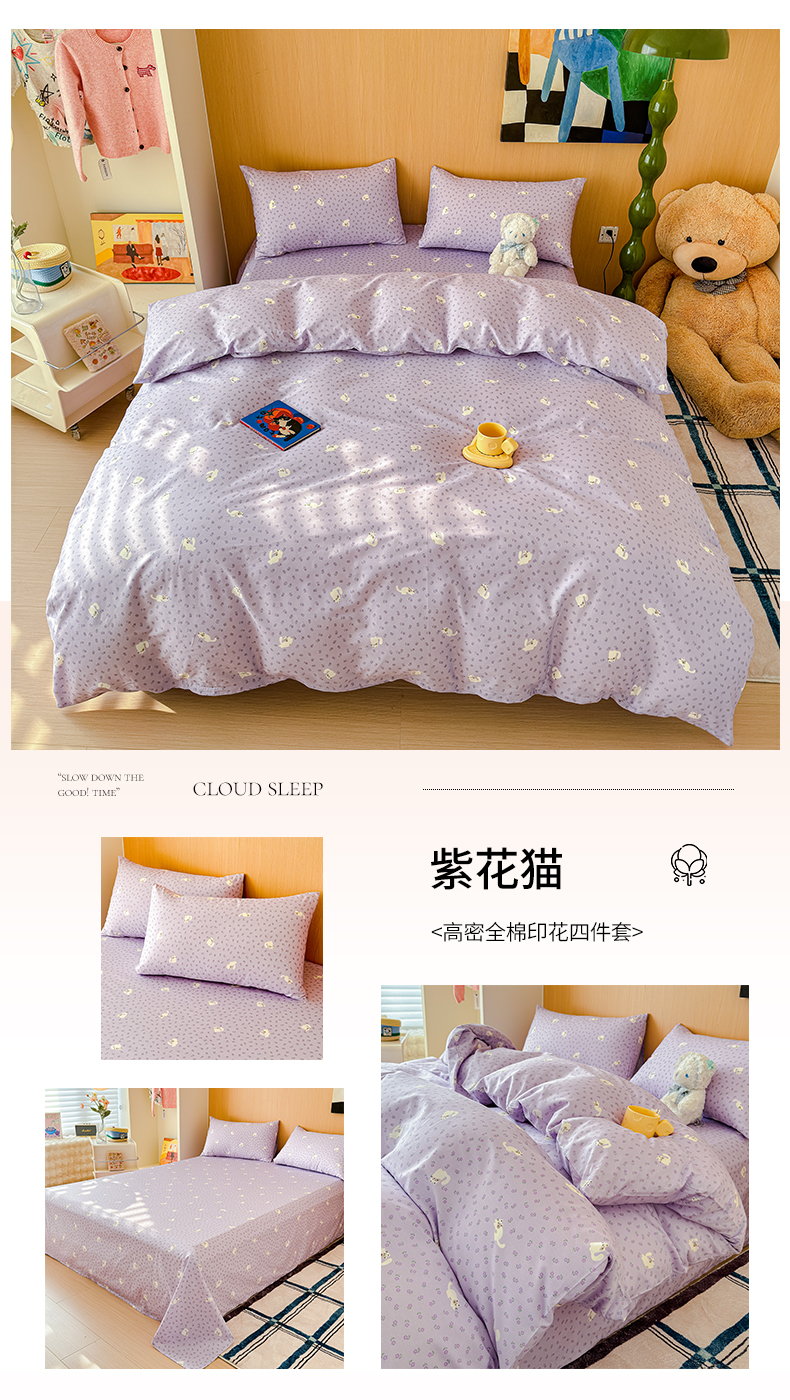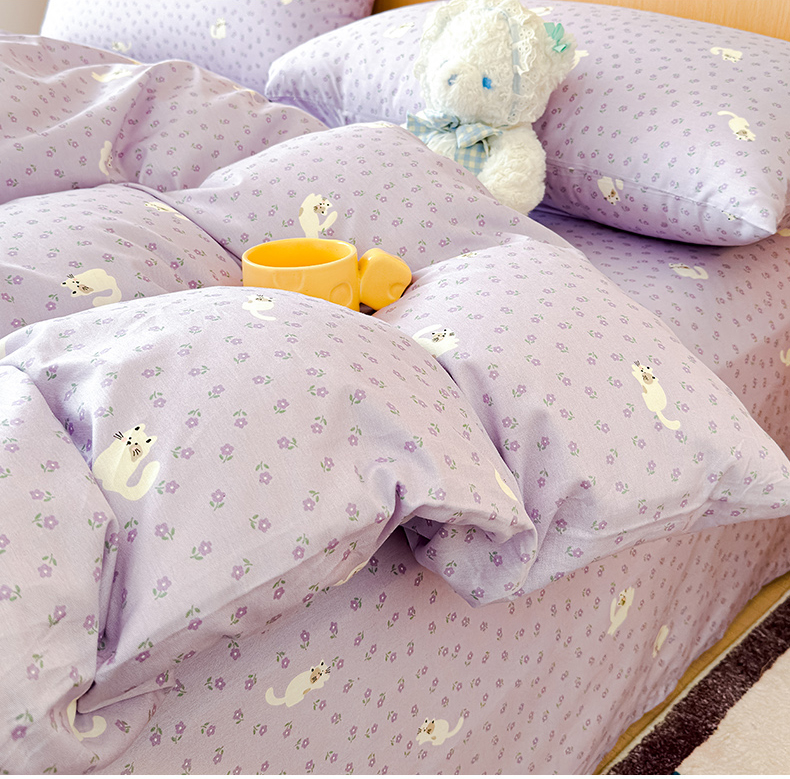 感遇全棉软萌清新四件套 紫花猫