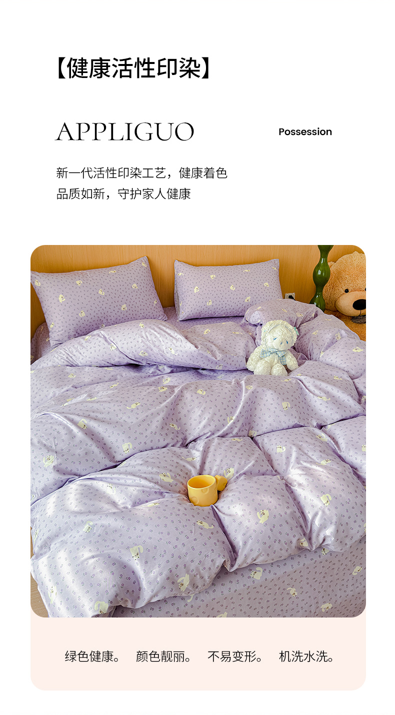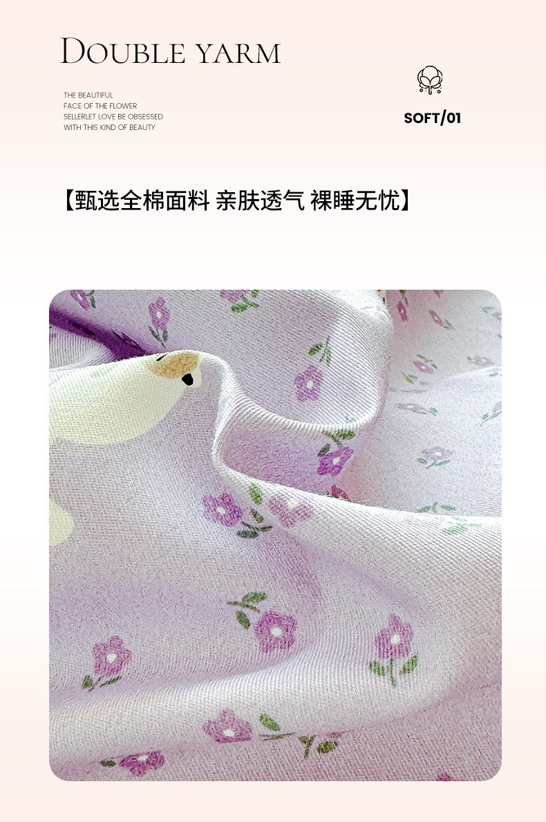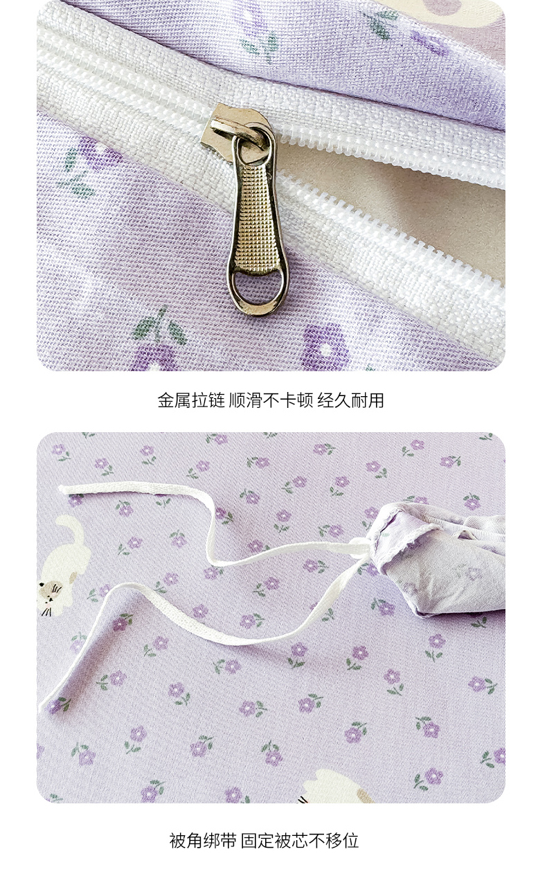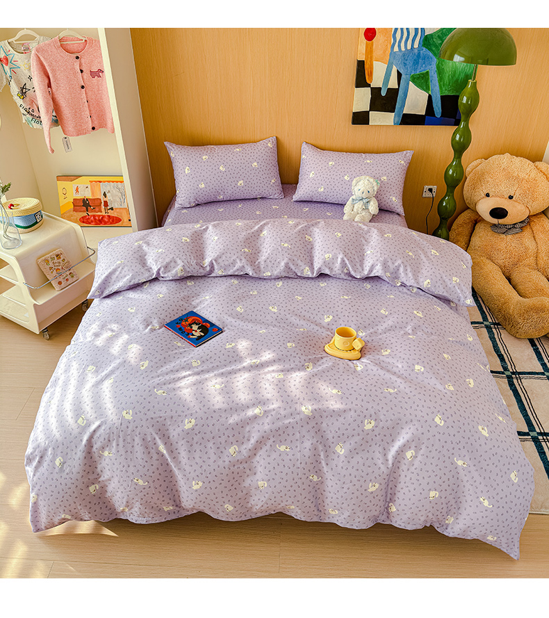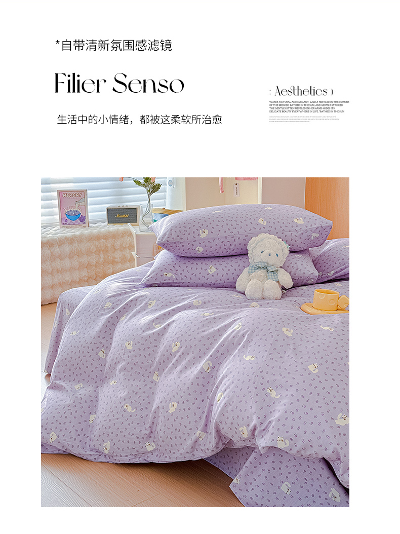 感遇全棉软萌清新四件套 紫花猫