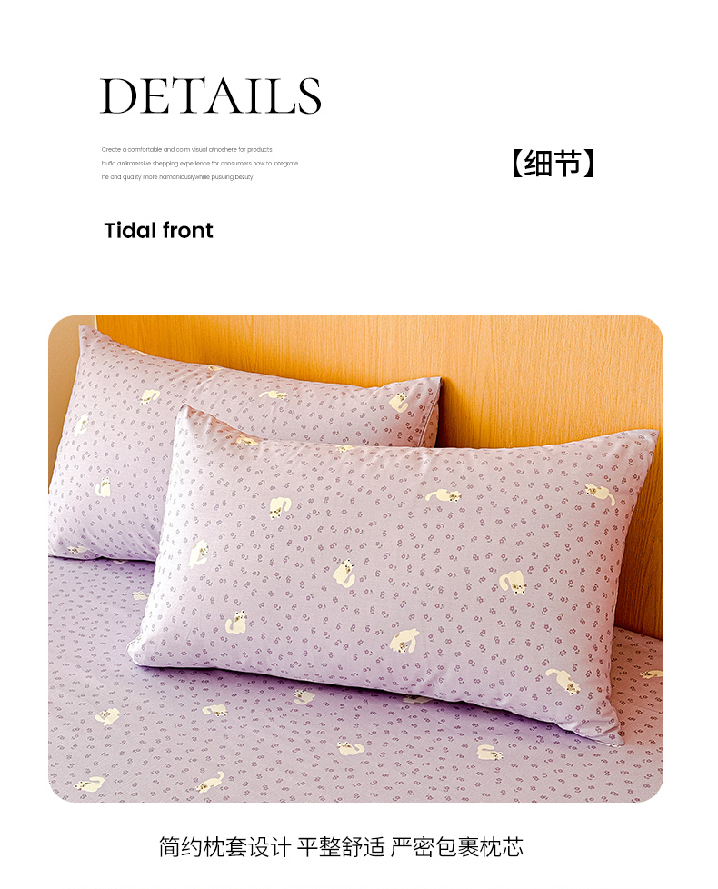 商品名称:感遇全棉软萌清新四件套 紫花猫