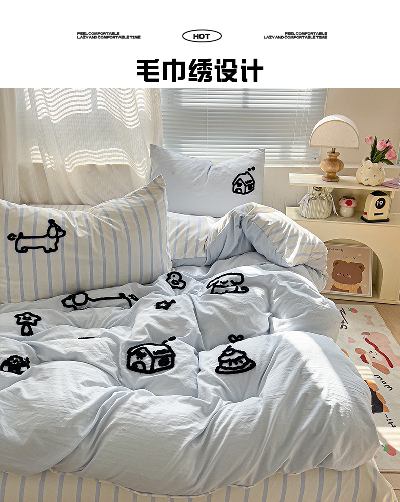 当前位置: 91家纺网 > 商品网购 > 床品套件 > 四件套 > 水洗棉四件套 > (总)迪梦姿家纺 2026年新款水洗棉云朵棉毛巾绣四件套