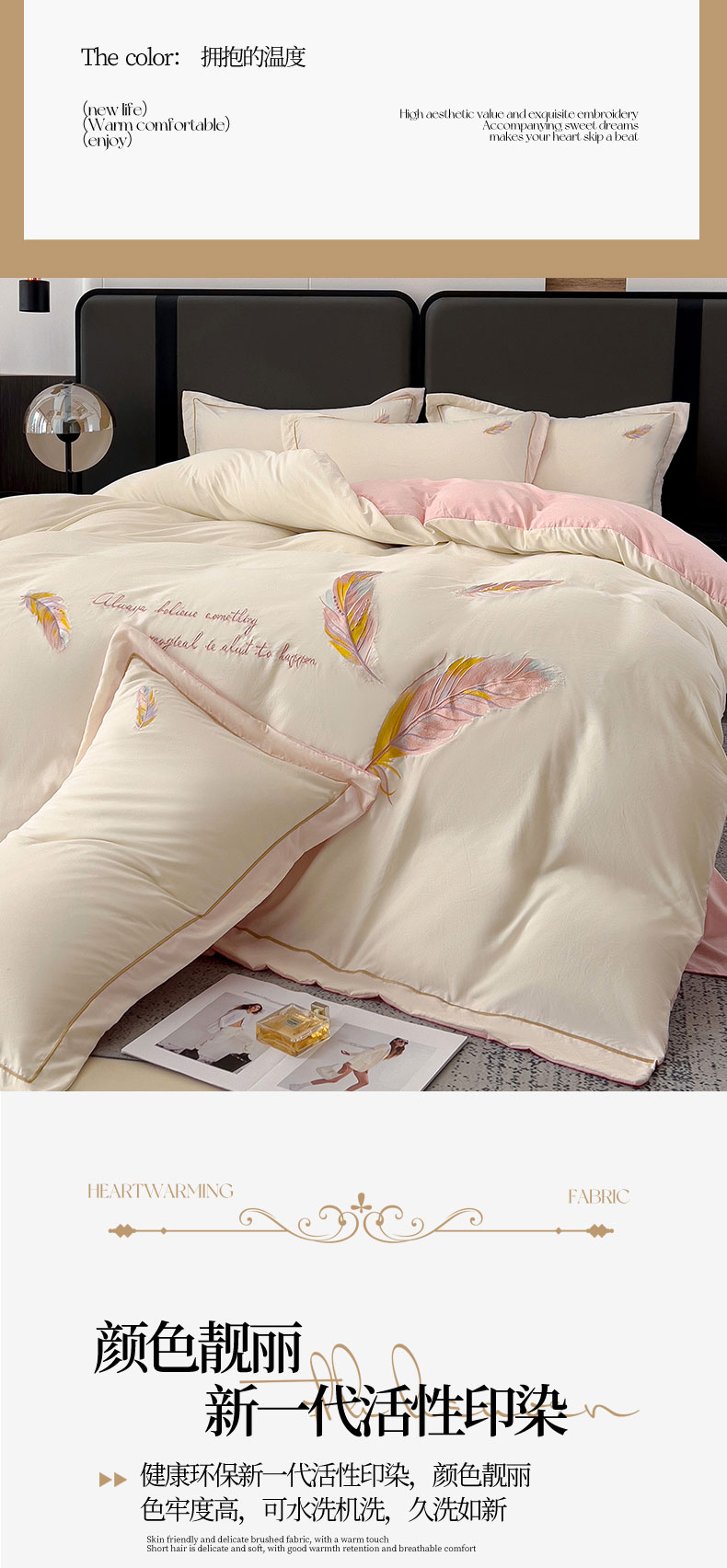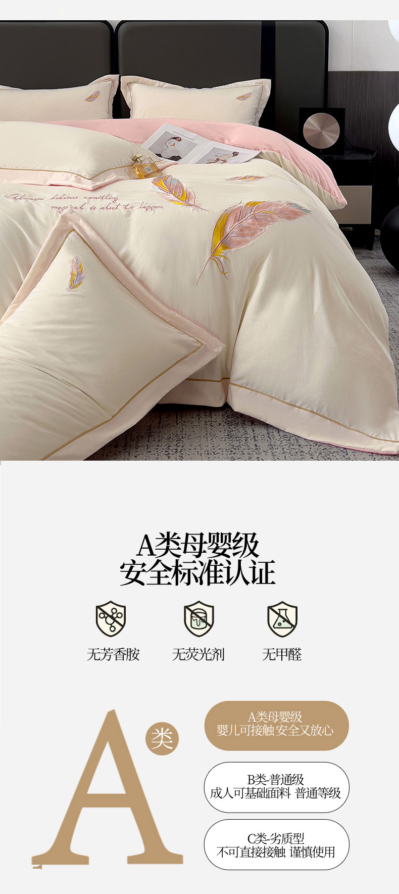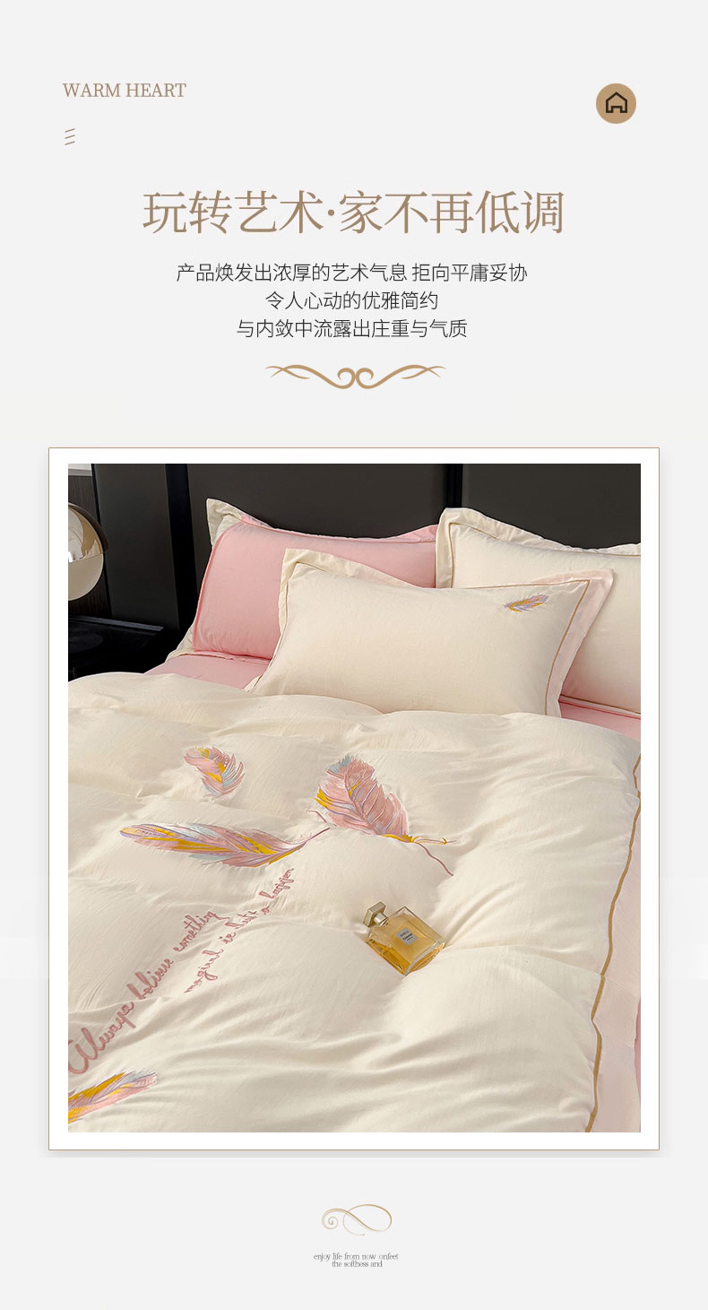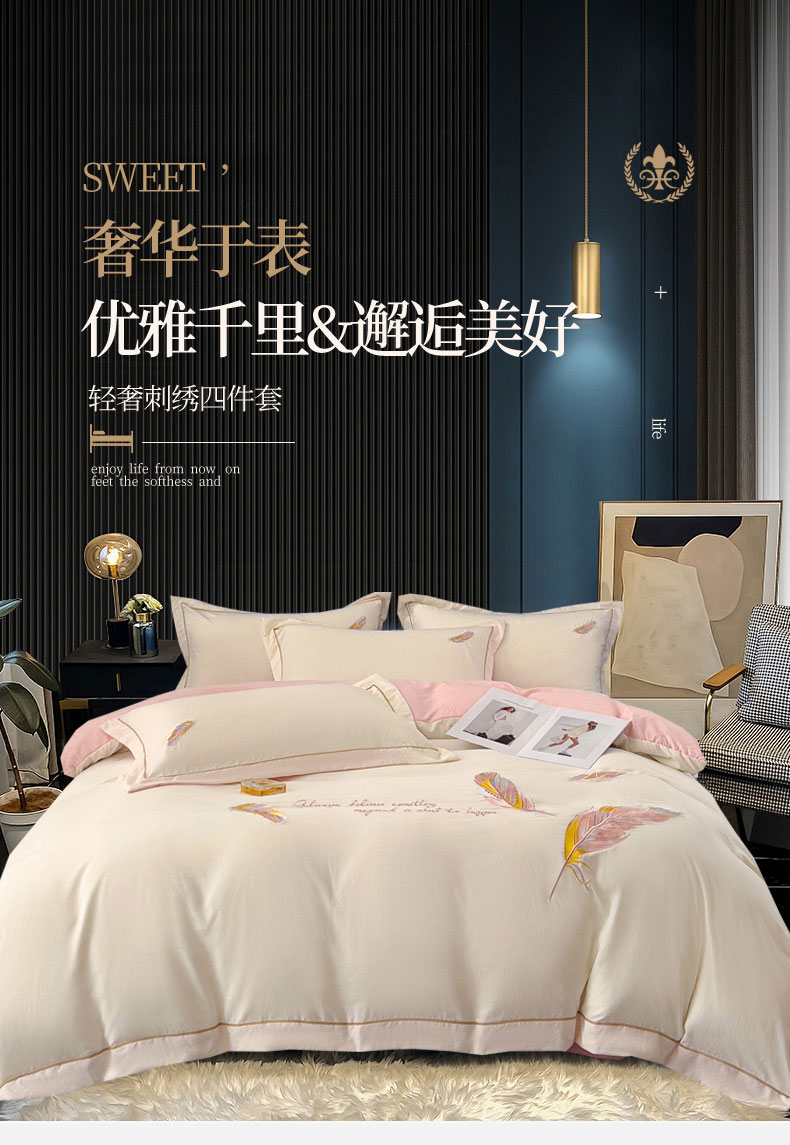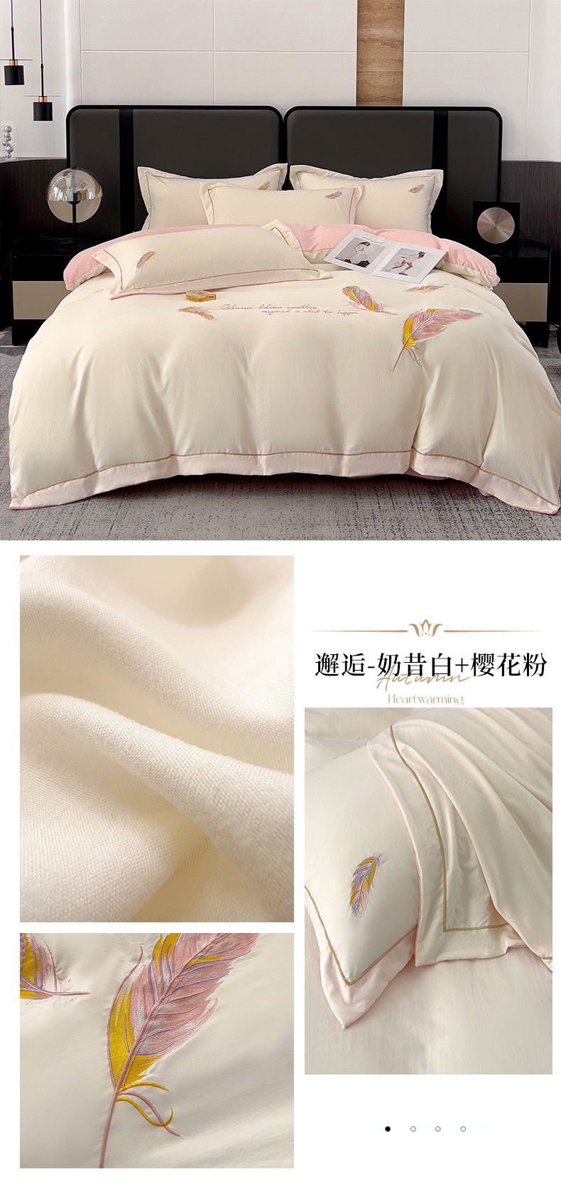 当前位置: 91家纺网 > 商品网购 > 床品套件 > 四件套 > 水洗棉四件套 > 灰鲸 2025新款A类轻奢水洗棉刺绣四件套-邂逅 邂逅-奶昔白+樱花粉