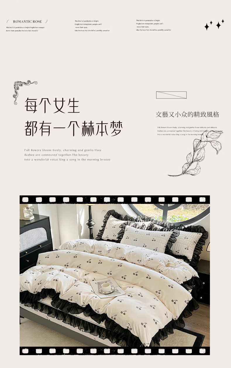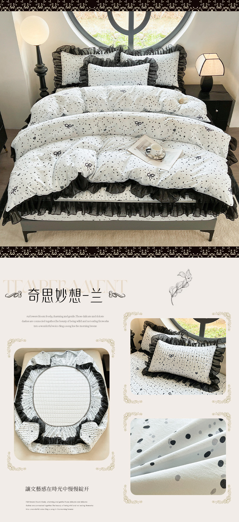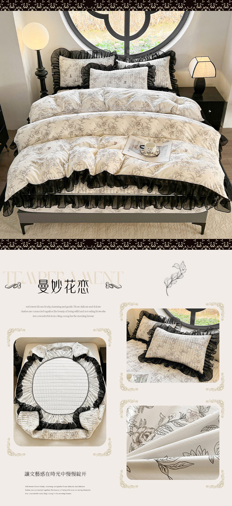 当前位置: 91家纺网 > 商品网购 > 床品套件 > 四件套 > 其它四件套 > 眠势力 2025新款赫本风花边四件套床笠款四季通用夹棉席梦思保护套法式 花馨