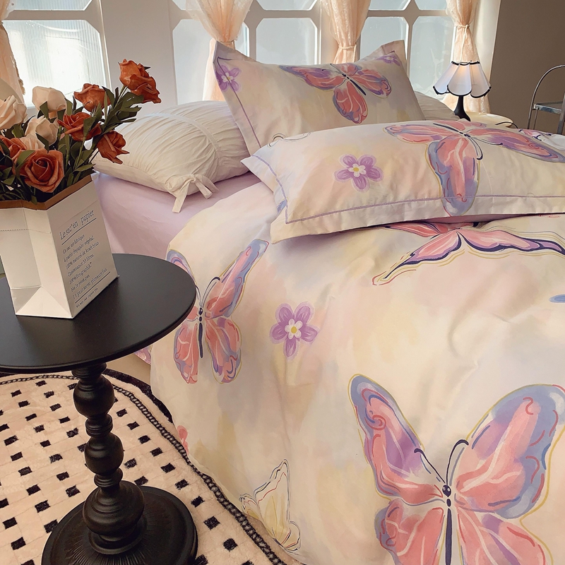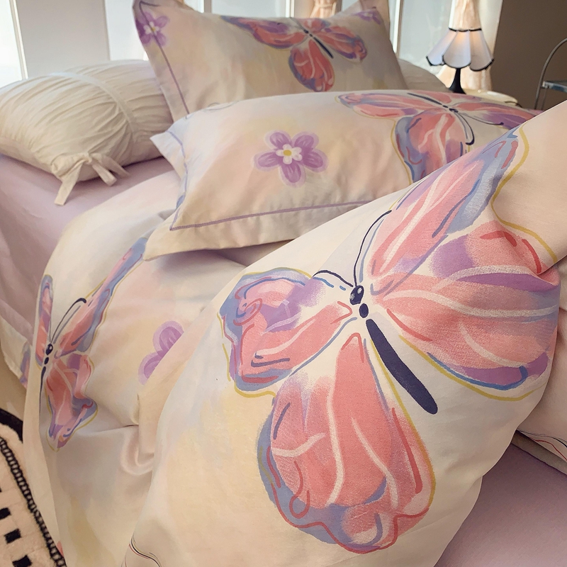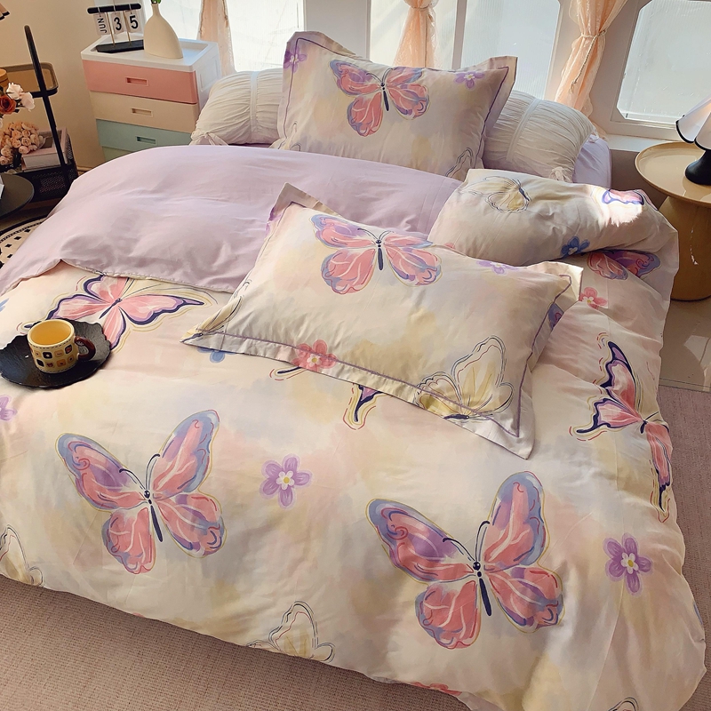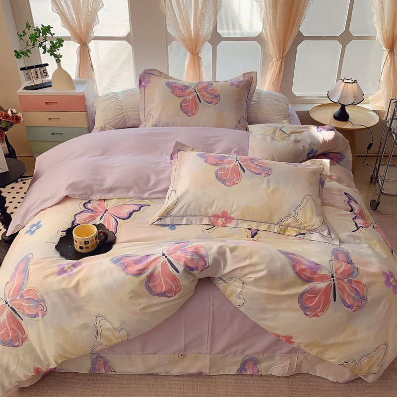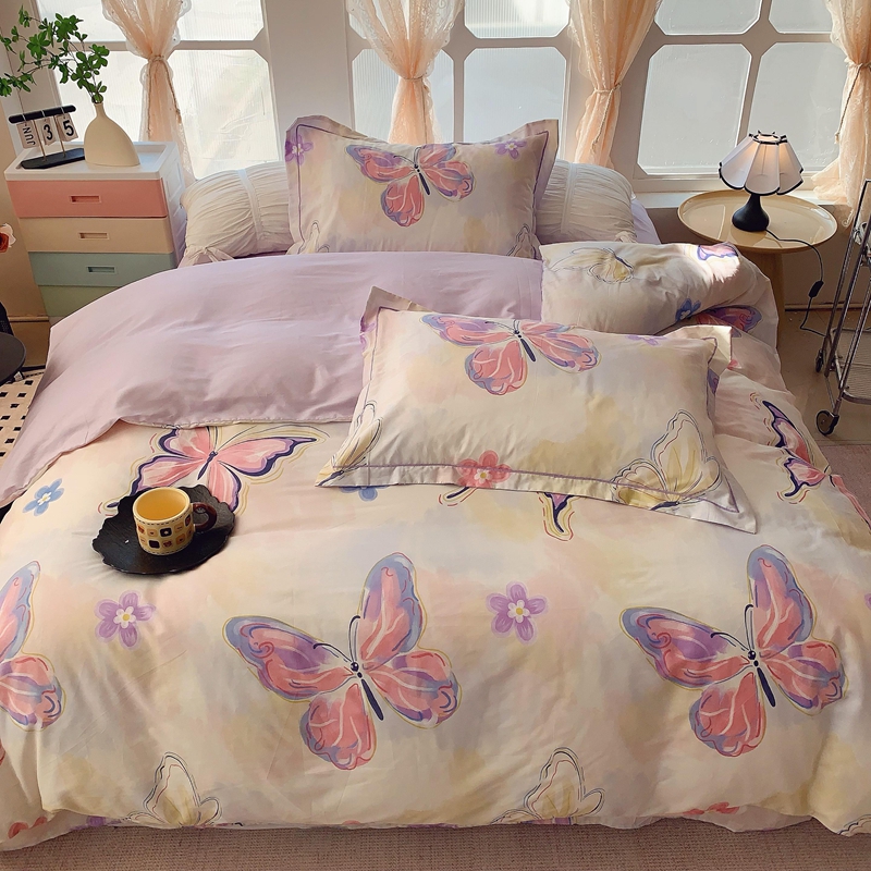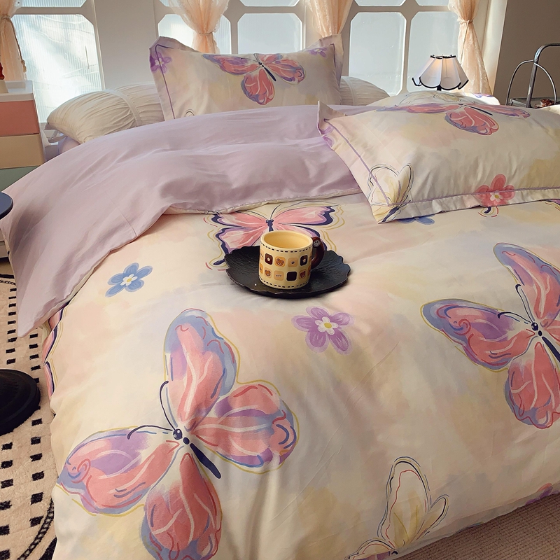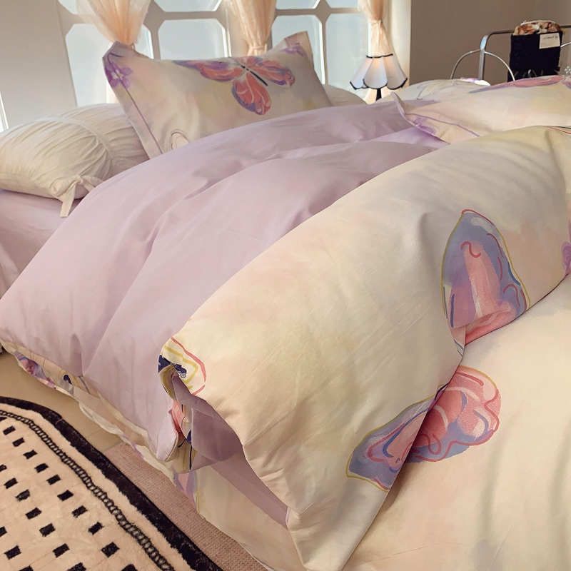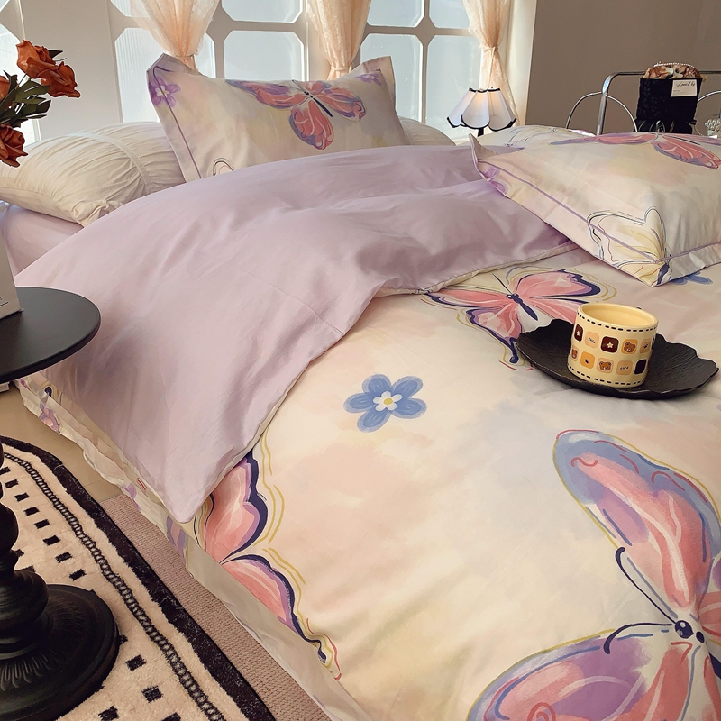 商品名称:2025新款亲肤舒适小清新全棉四件套 紫蝶