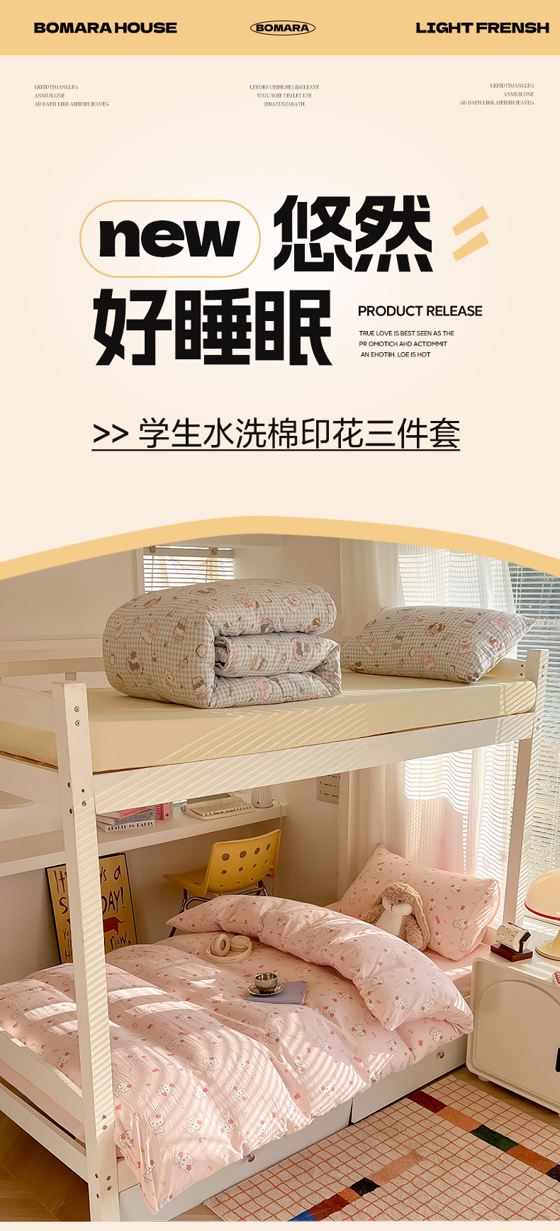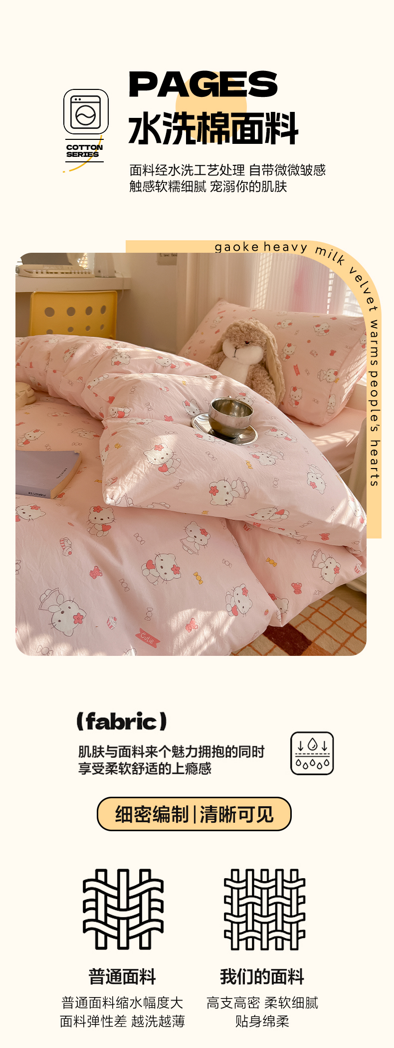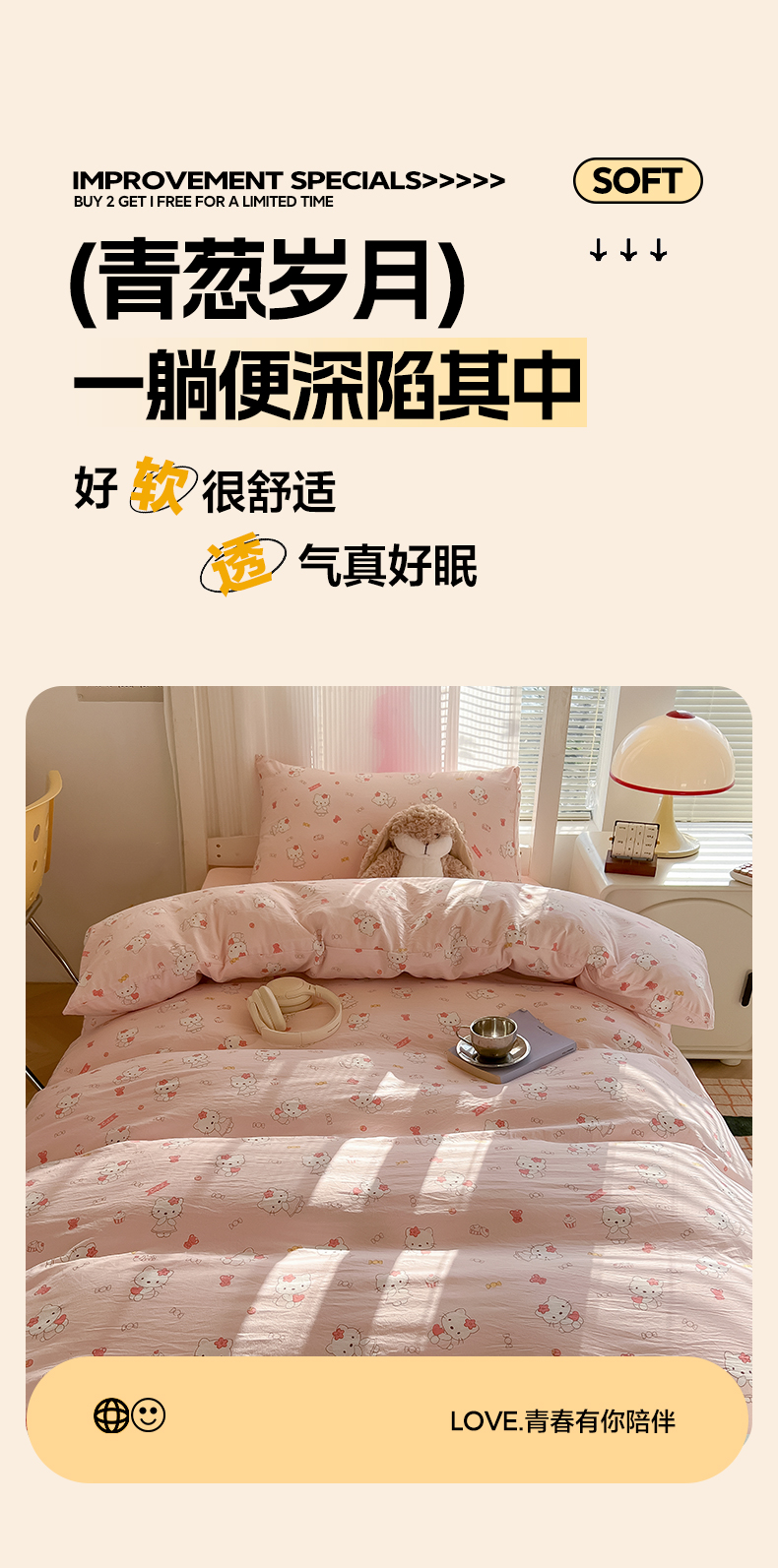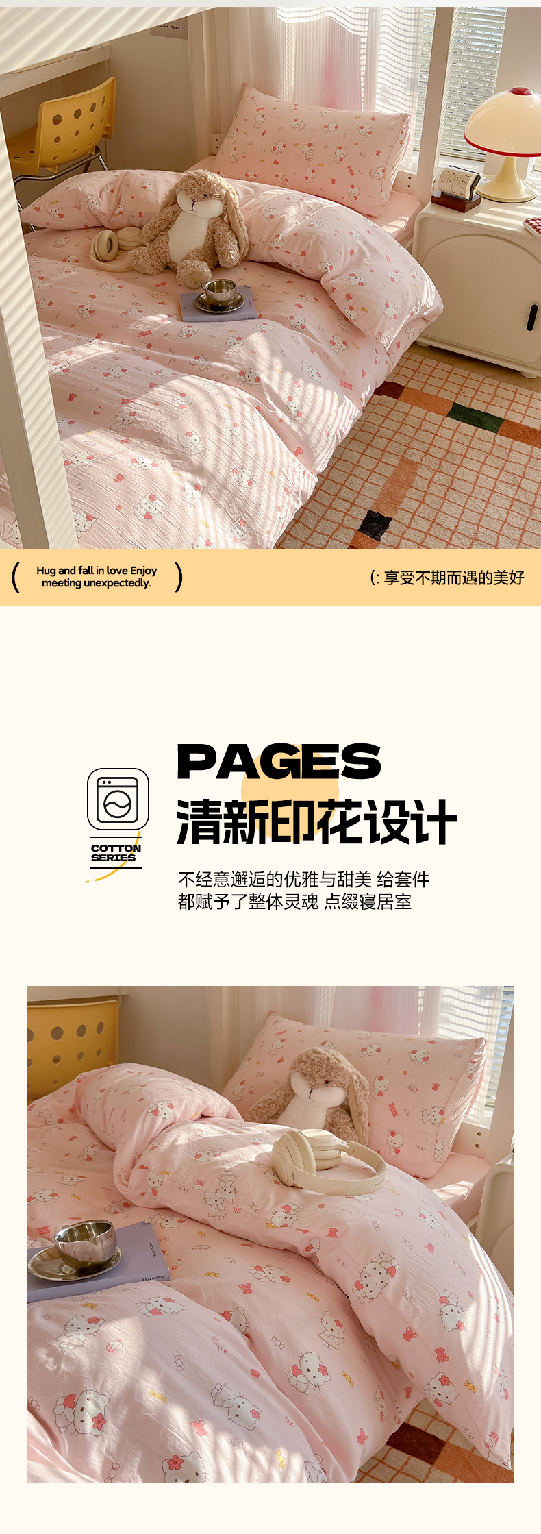 当前位置: 91家纺网 > 商品网购 > 床品套件 > 四件套 > 其它四件套 > 韩巢家纺 2025新款超柔水洗棉学生宿舍寝室被套床单三件套 糖果KT