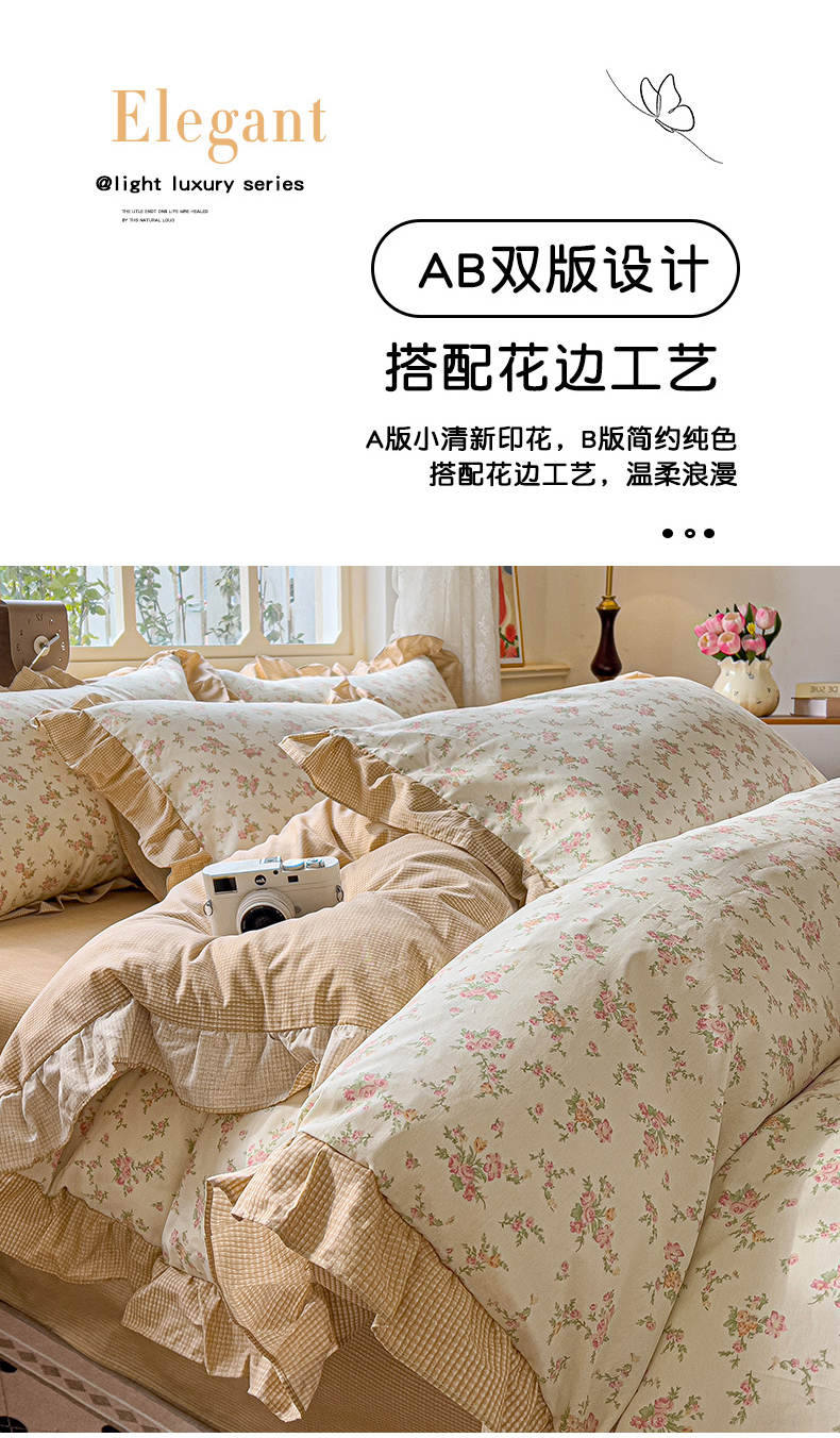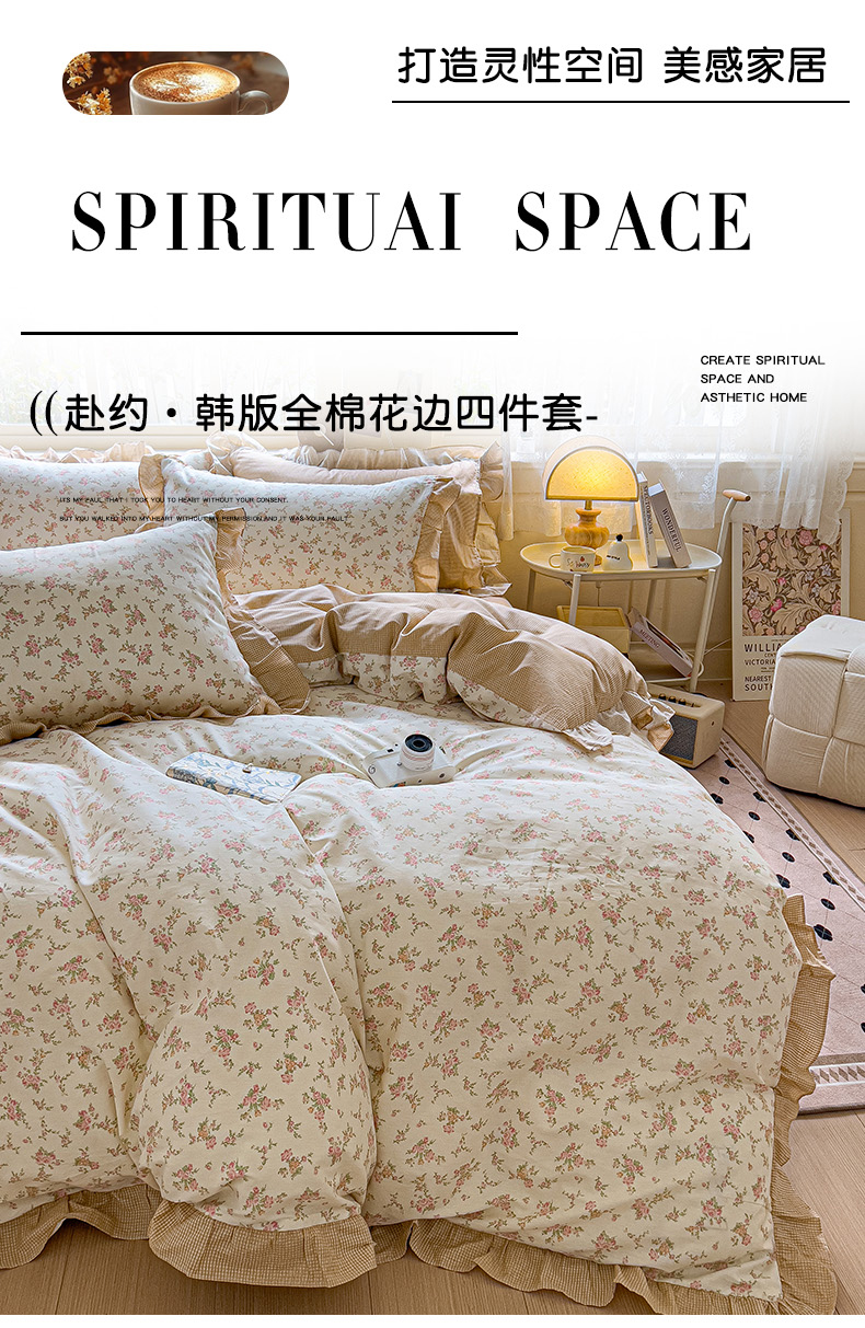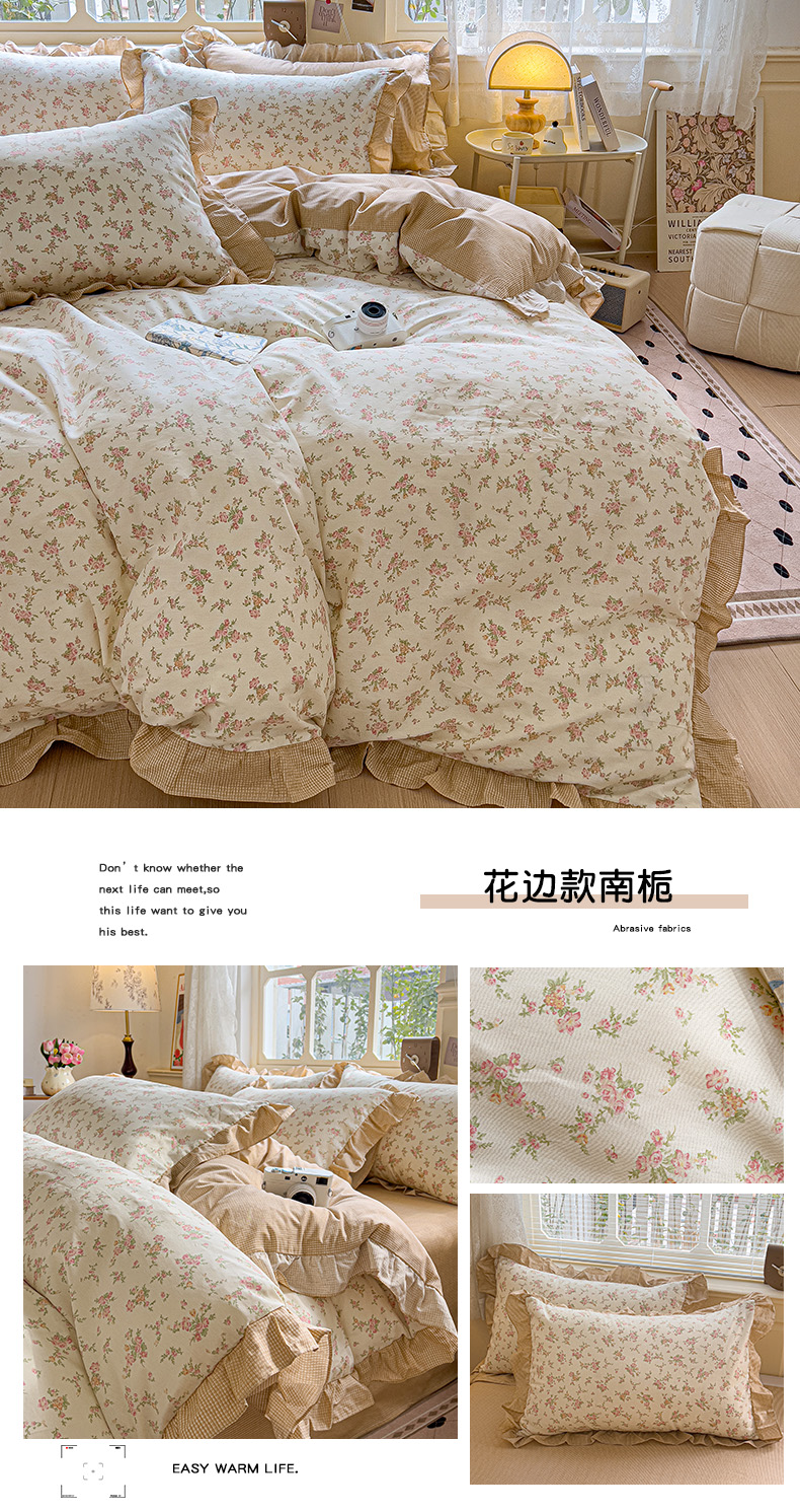 当前位置: 91家纺网 > 商品网购 > 床品套件 > 四件套 > 全棉普通四件套 > 忆生活家纺 2025新款韩版全棉花边四件套 花边款南栀