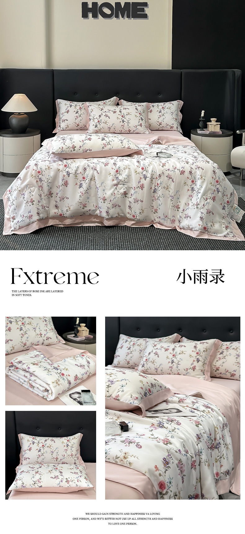 迷尚家居 2025新款夏被100%莱赛尔数码印花夏被四件套50支天丝夏被 小雨录