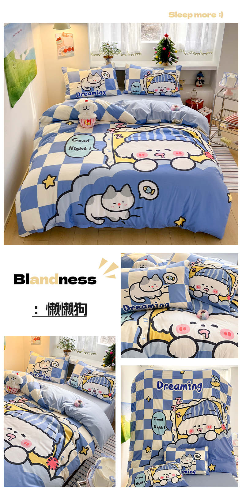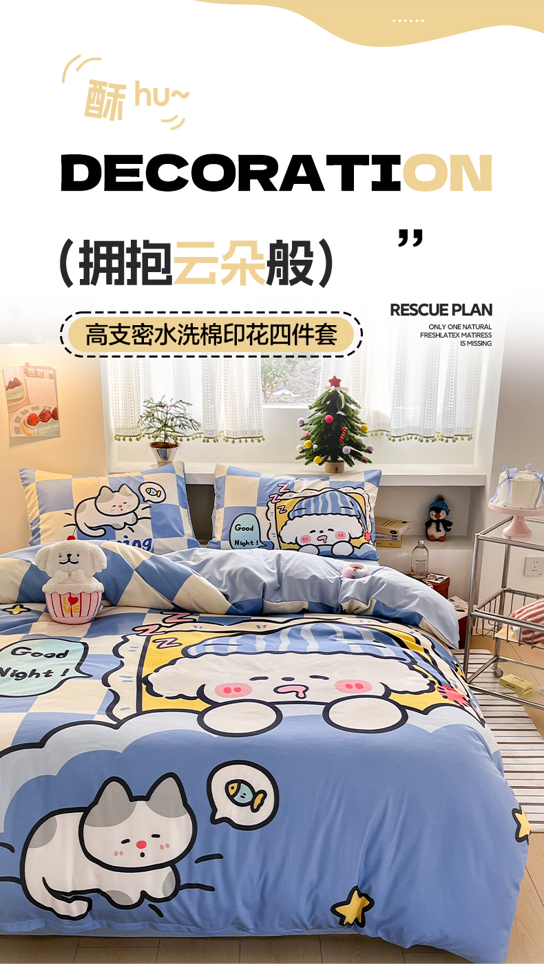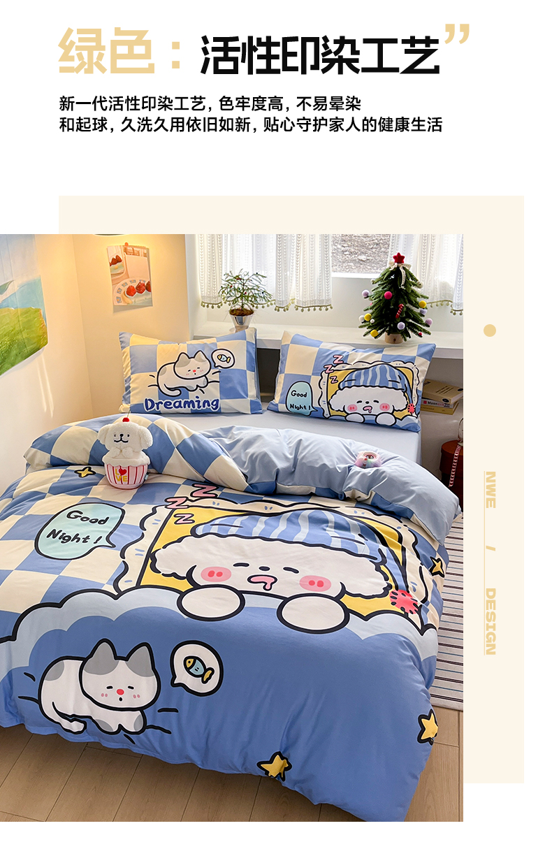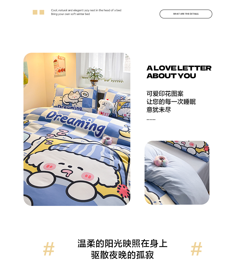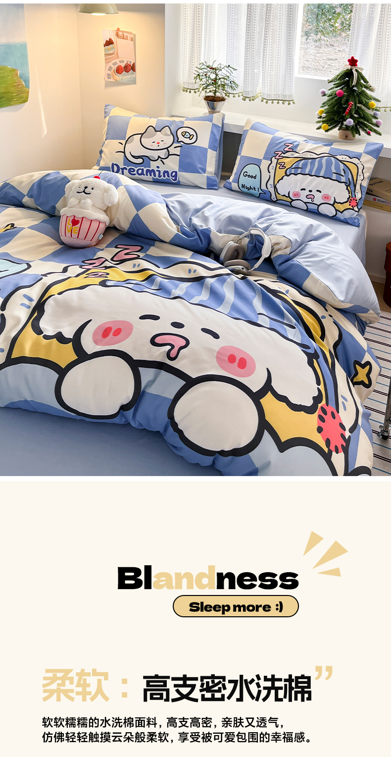 当前位置: 91家纺网 > 商品网购 > 床品套件 > 四件套 > 水洗棉四件套 > 贝扬思家纺 2025新款水洗棉萌萌卡通大版系列四件套 懒懒狗