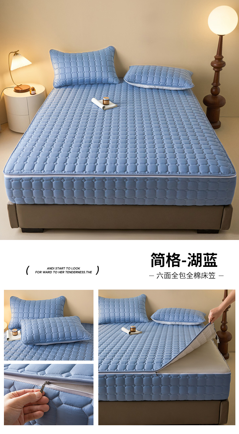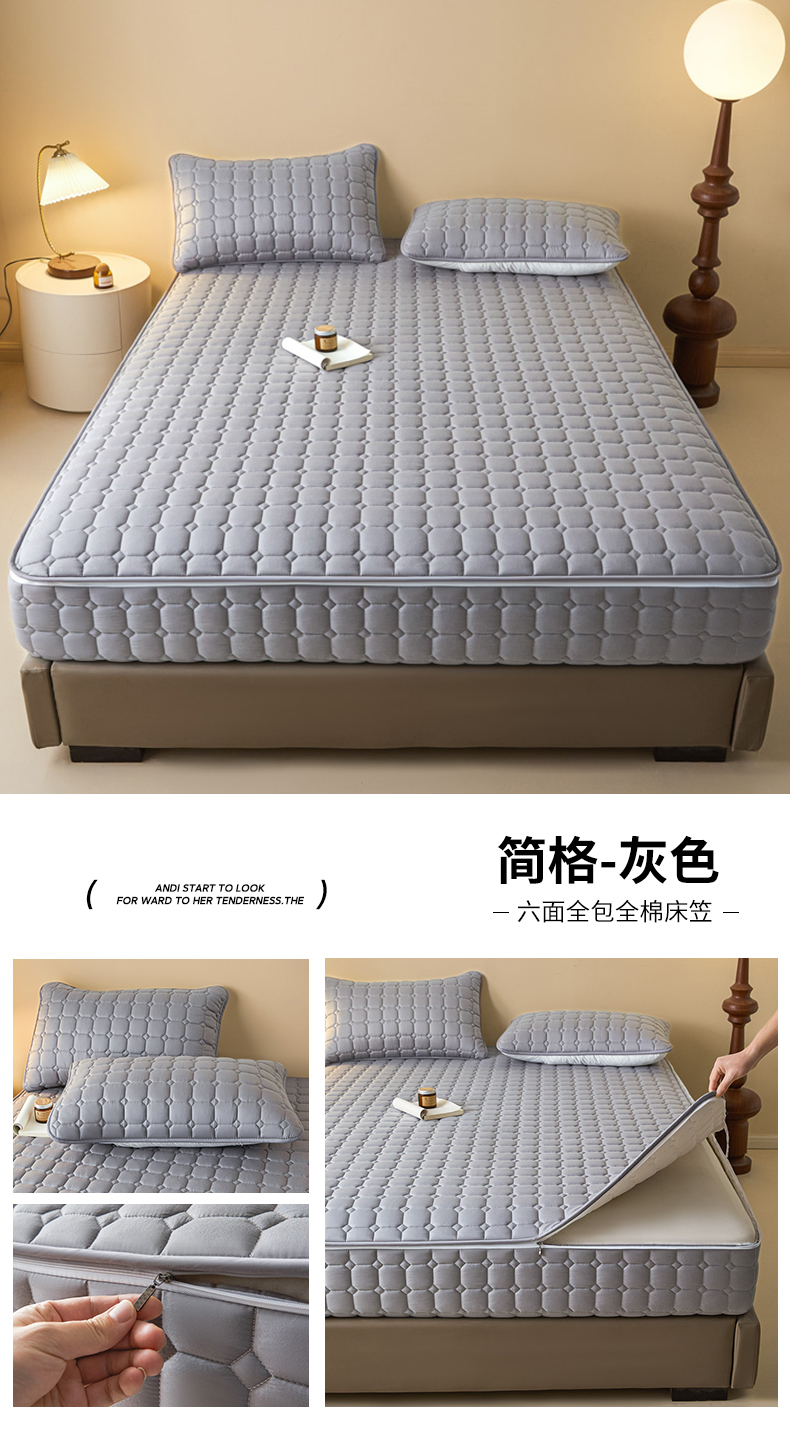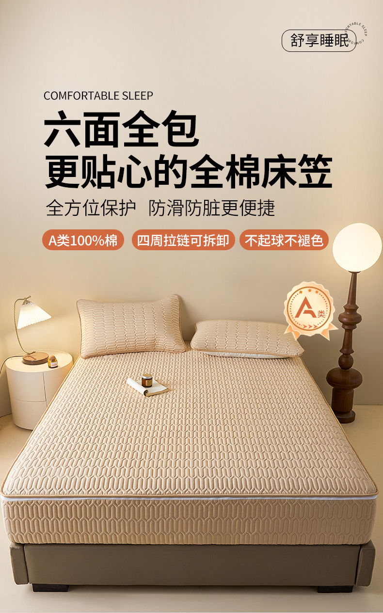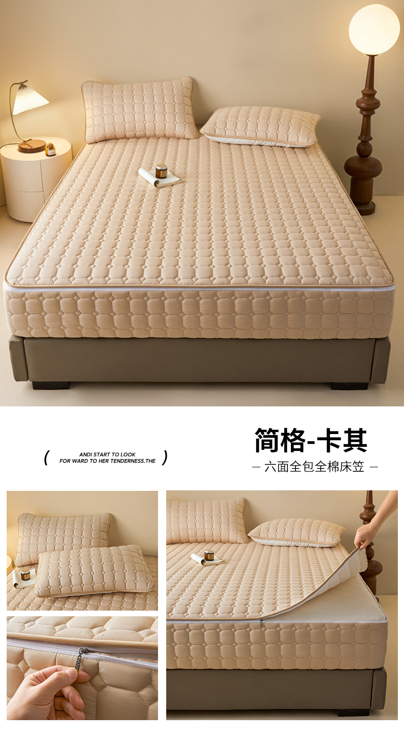 鑫钰2025新款纯棉全棉六面全包床笠 经典款-全包床笠-卡其