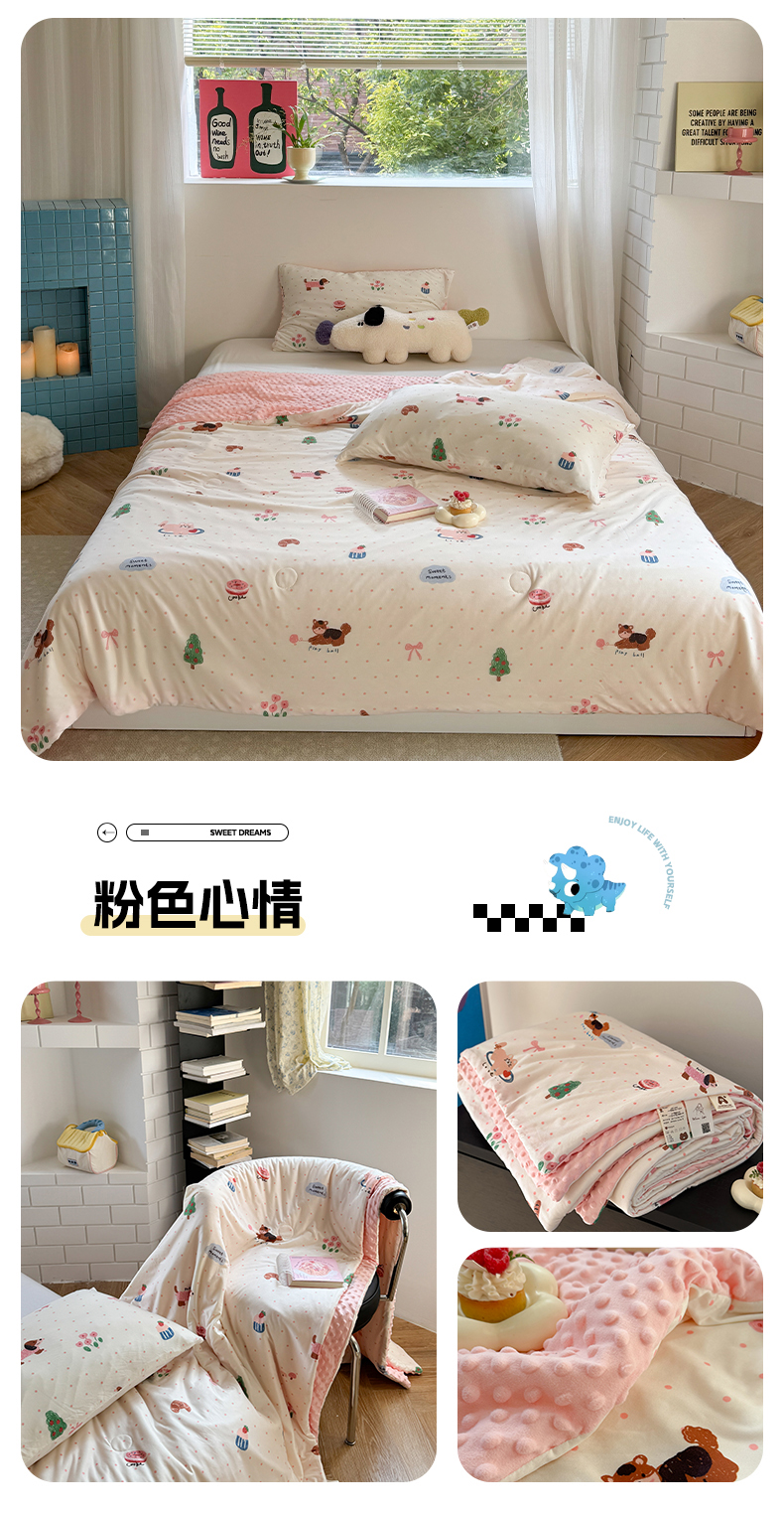 (总)暖生活 2025新款高克重牛奶绒床盖三件套,点点狗,粉豹纹猫咪,粉兔拼图,酣睡小喵,蝴蝶结拼图,咖布布,萝莉小熊,帽子小狗,圣诞小咪,小飞机,小象喝茶,信封小熊,英伦小狗,组合