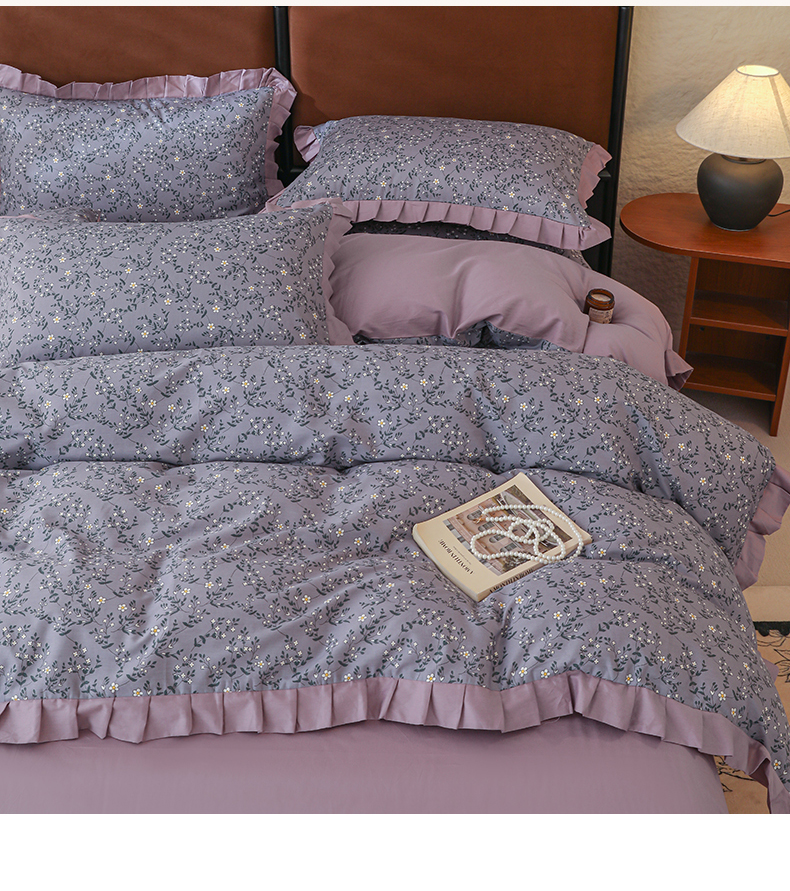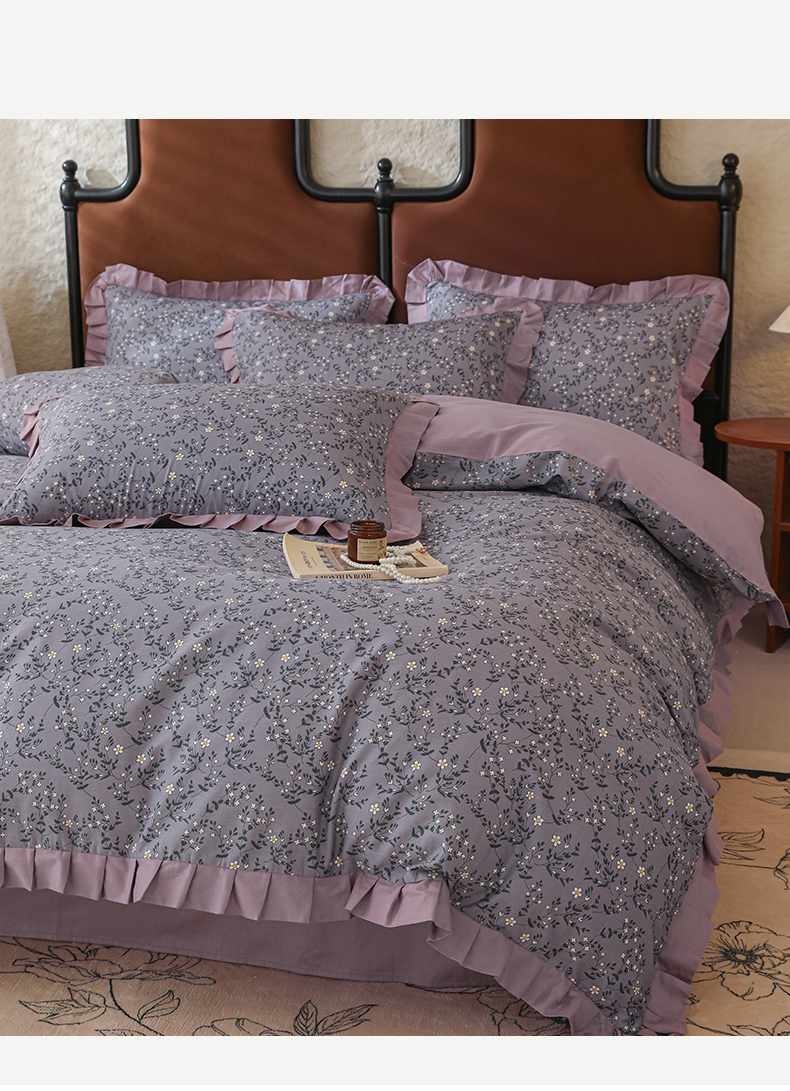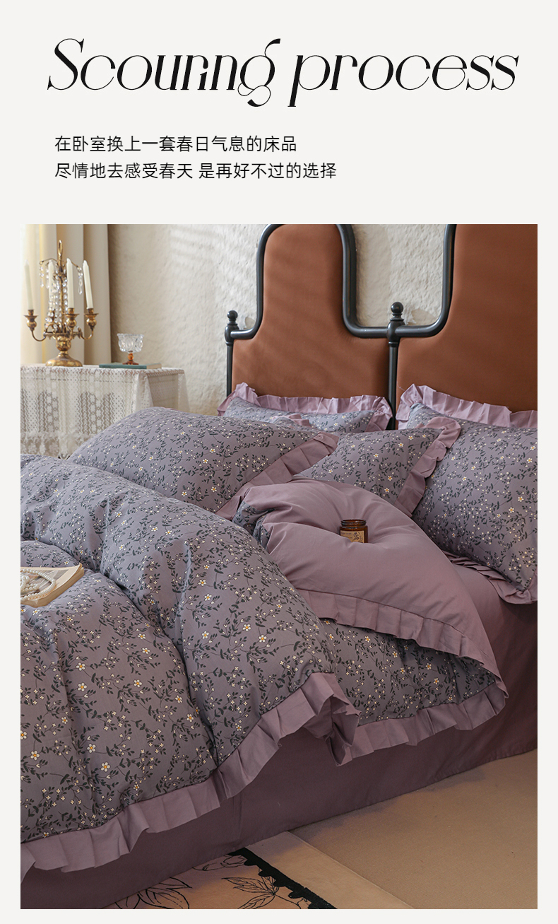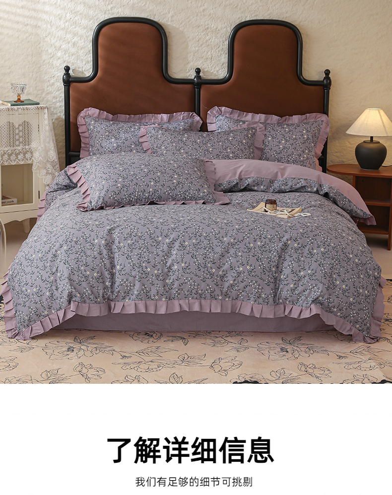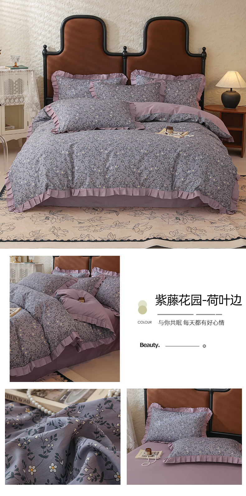 当前位置: 91家纺网 > 商品网购 > 床品套件 > 四件套 > 全棉普通四件套 > 简宜2025新款荷叶双层纯棉边四件套 紫藤花园-荷叶边