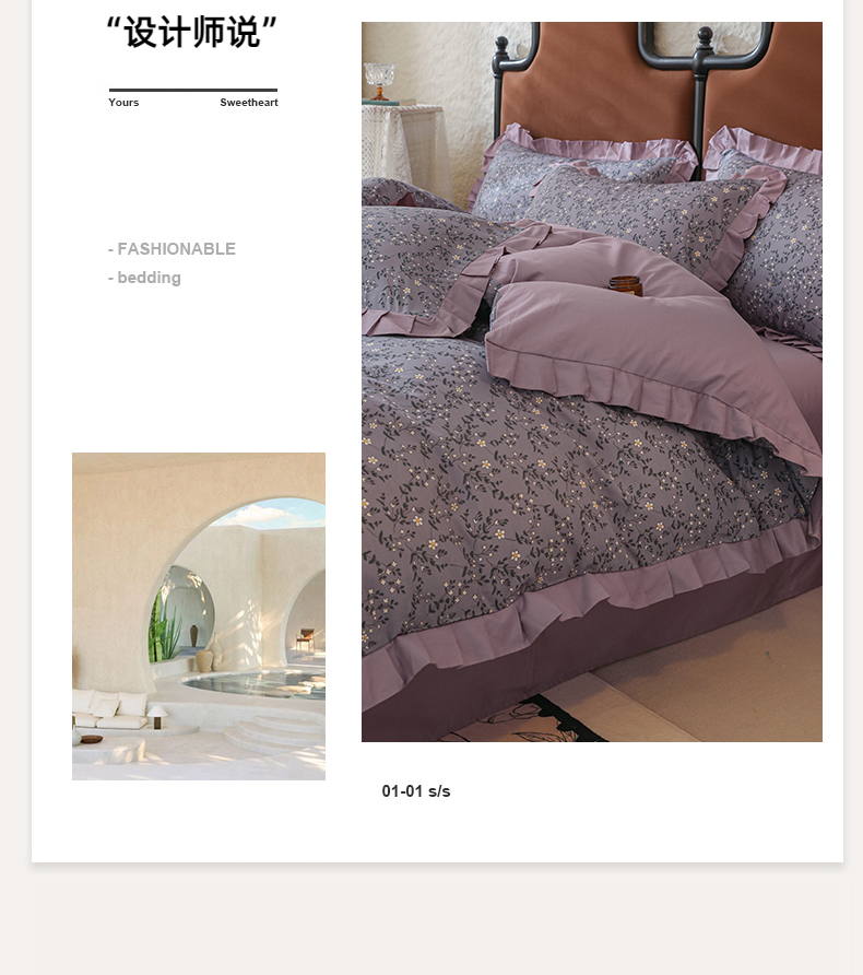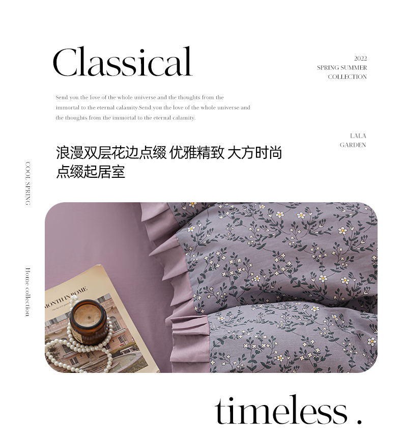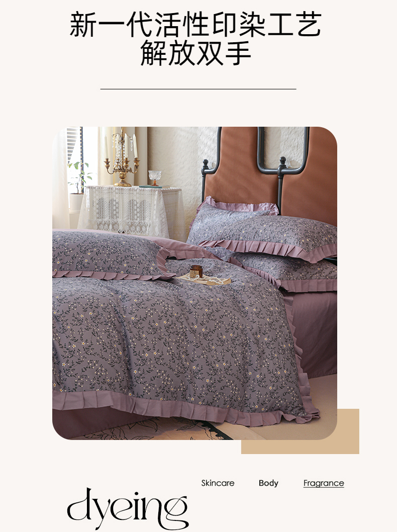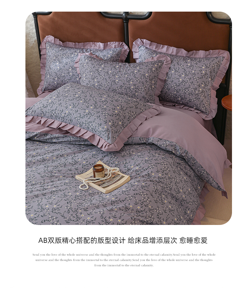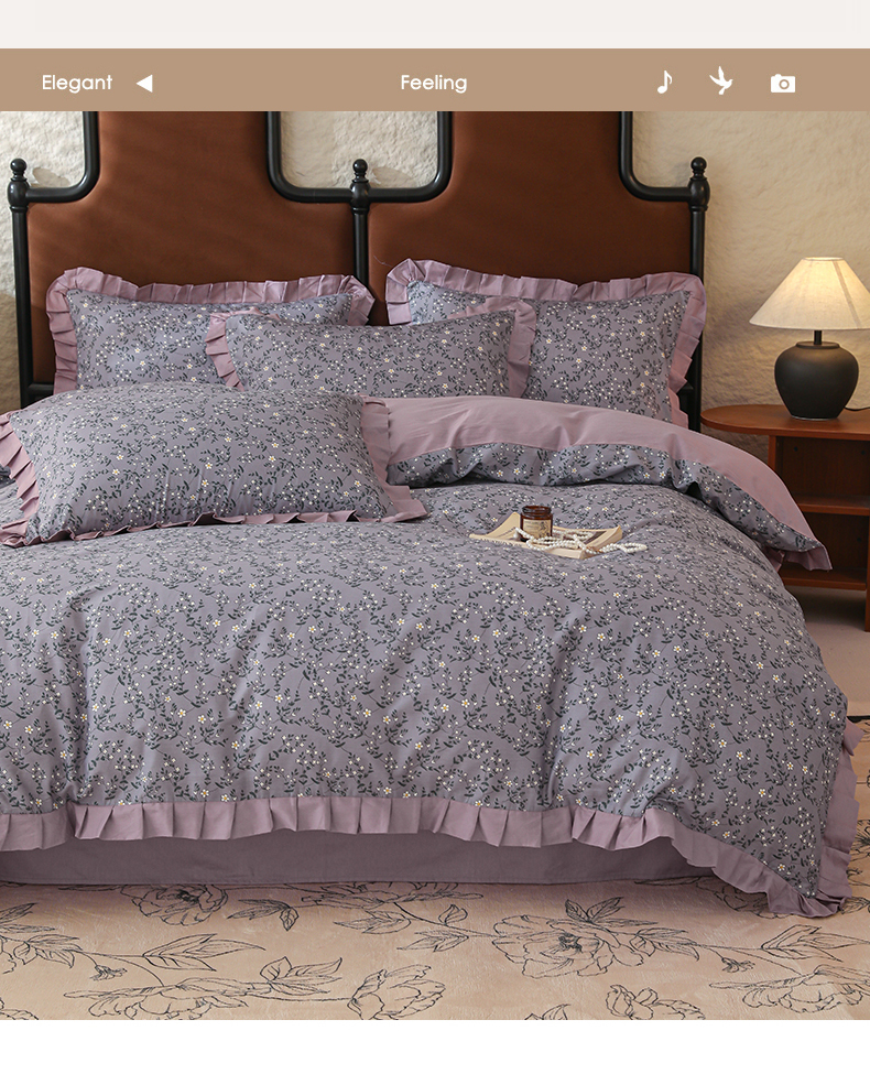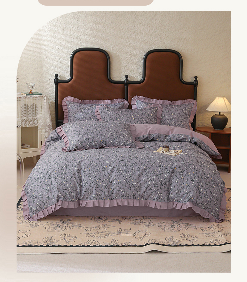 当前位置: 91家纺网 > 商品网购 > 床品套件 > 四件套 > 全棉普通四件套 > 简宜2025新款荷叶双层纯棉边四件套 紫藤花园-荷叶边