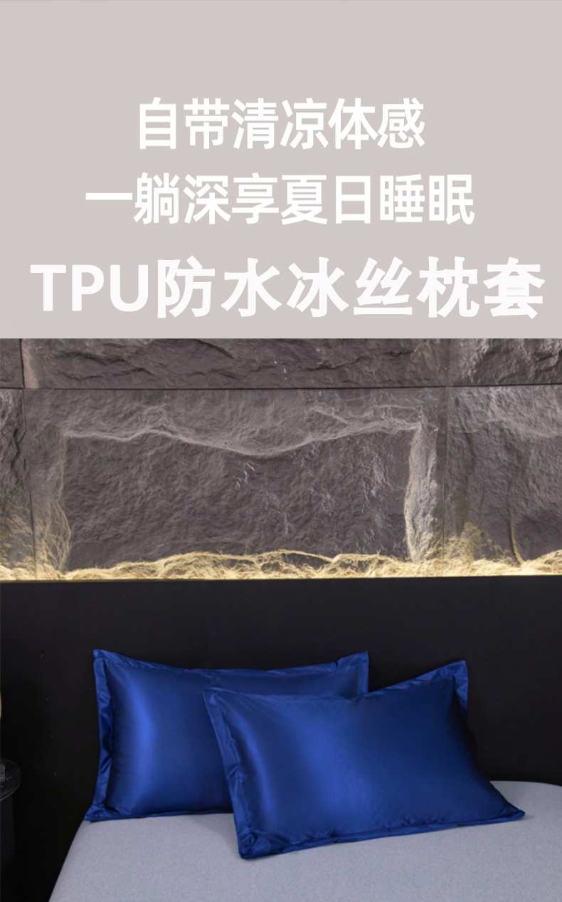 • 91家纺网 家纺一手货源 找家纺 梦舒羽2025新款防水冰丝纯色单人枕套宿舍枕芯套内胆套 防水冰丝单人枕套-深海蓝