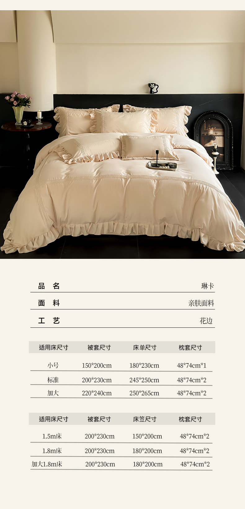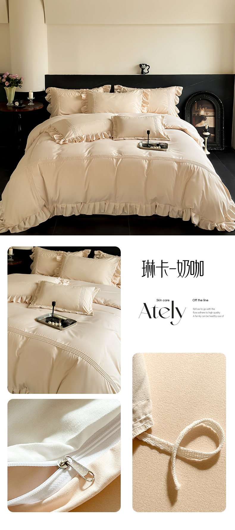 (总)豪美鑫 2025新款亲肤棉蕾丝花边四件套-爱丽丝系列,爱丽丝-粉玉,爱丽丝-湖水绿,爱丽丝-卡其,爱丽丝-奶油黄,爱丽丝-珍珠白