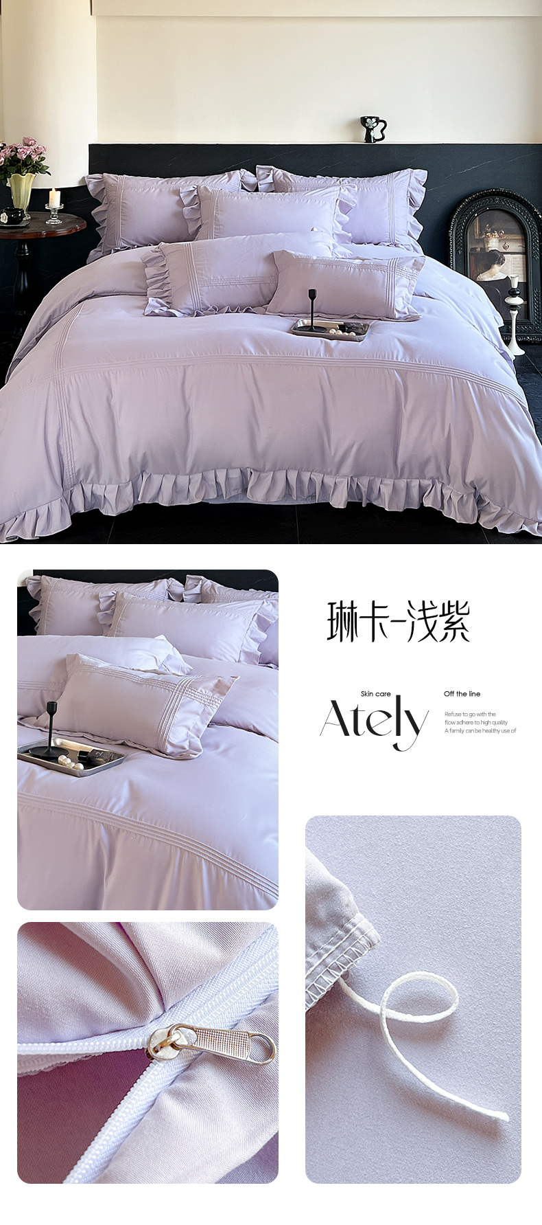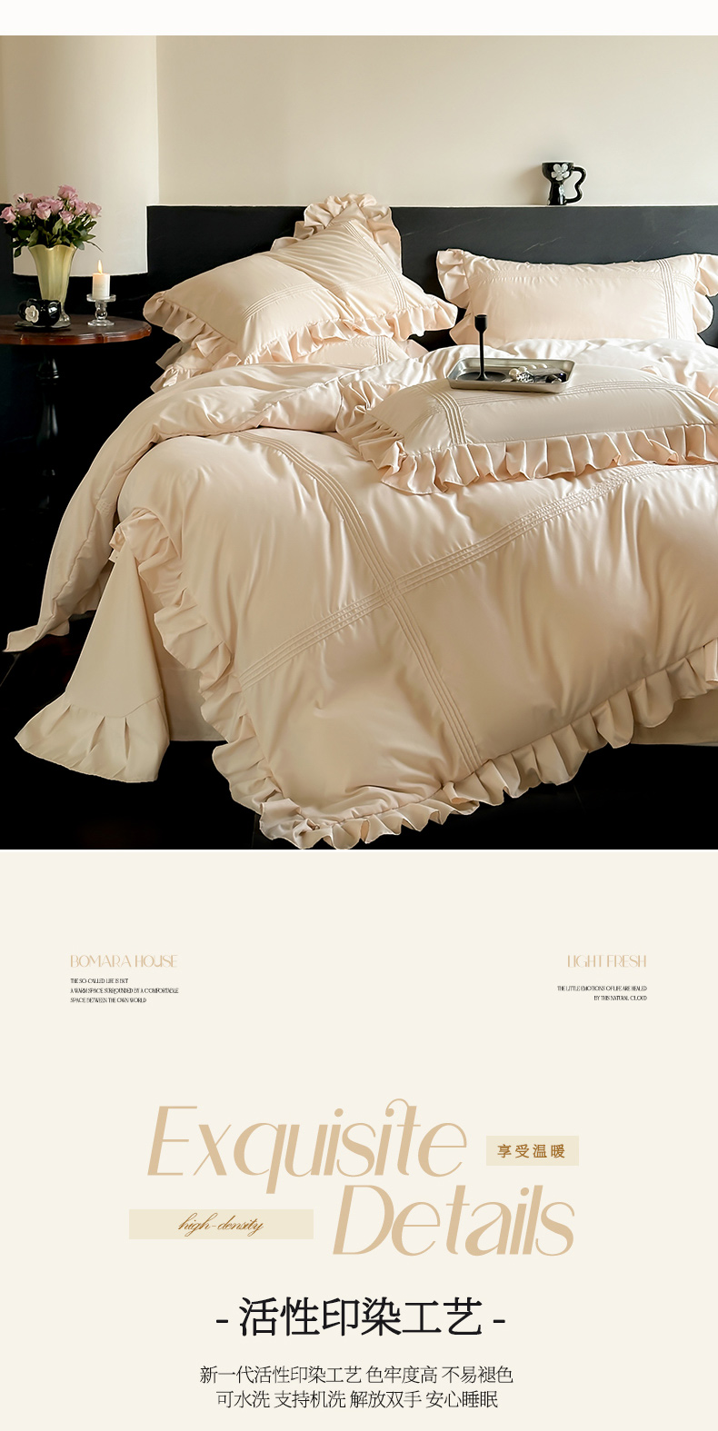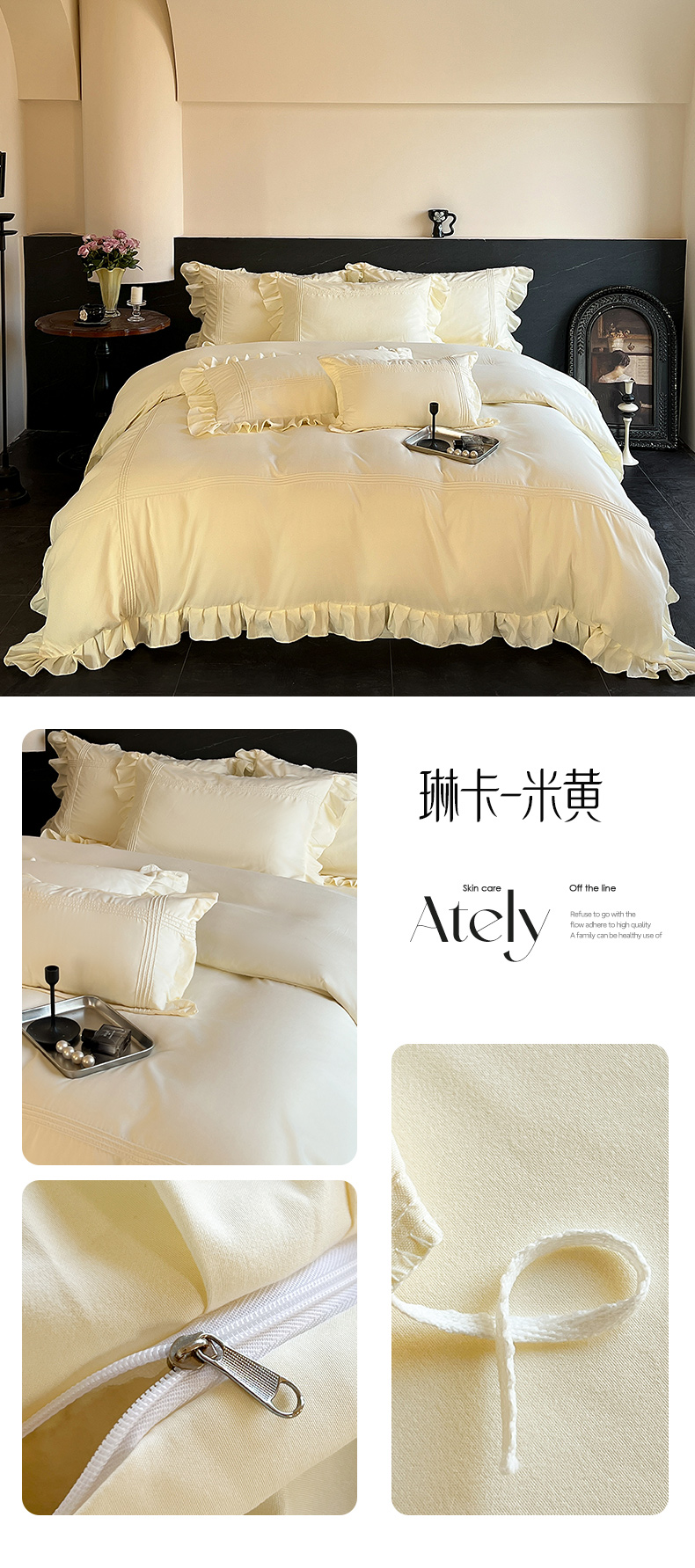 (总)豪美鑫 2025新款超柔水洗棉花边四件套-克拉拉系列,克拉拉--纯白,克拉拉--果绿,克拉拉--米黄,克拉拉-嫩粉,克拉拉--香芋紫
