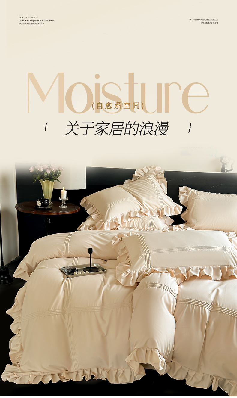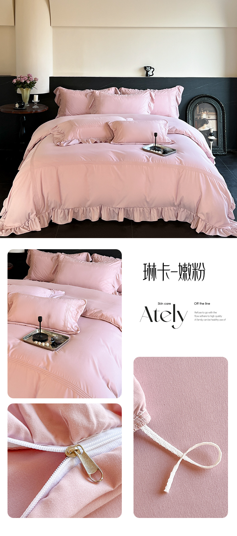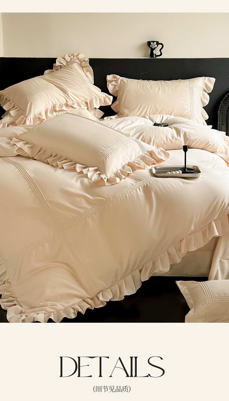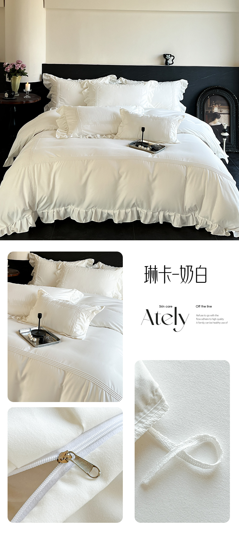 (总)豪美鑫 2025新款超柔水洗棉花边四件套-克拉拉系列,克拉拉--纯白,克拉拉--果绿,克拉拉--米黄,克拉拉-嫩粉,克拉拉--香芋紫