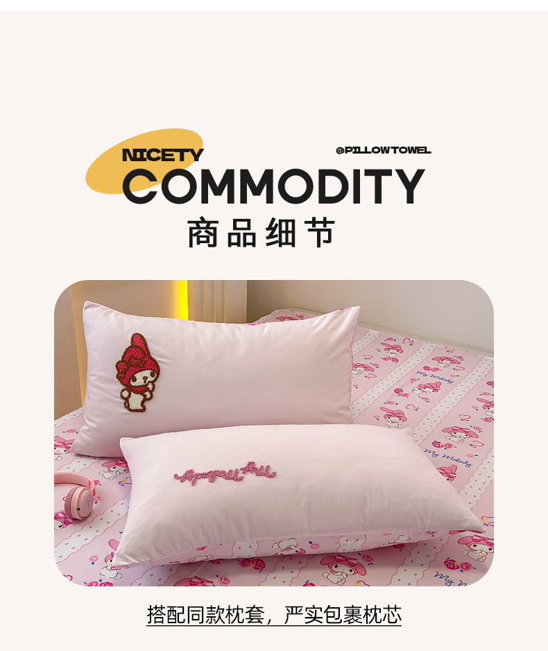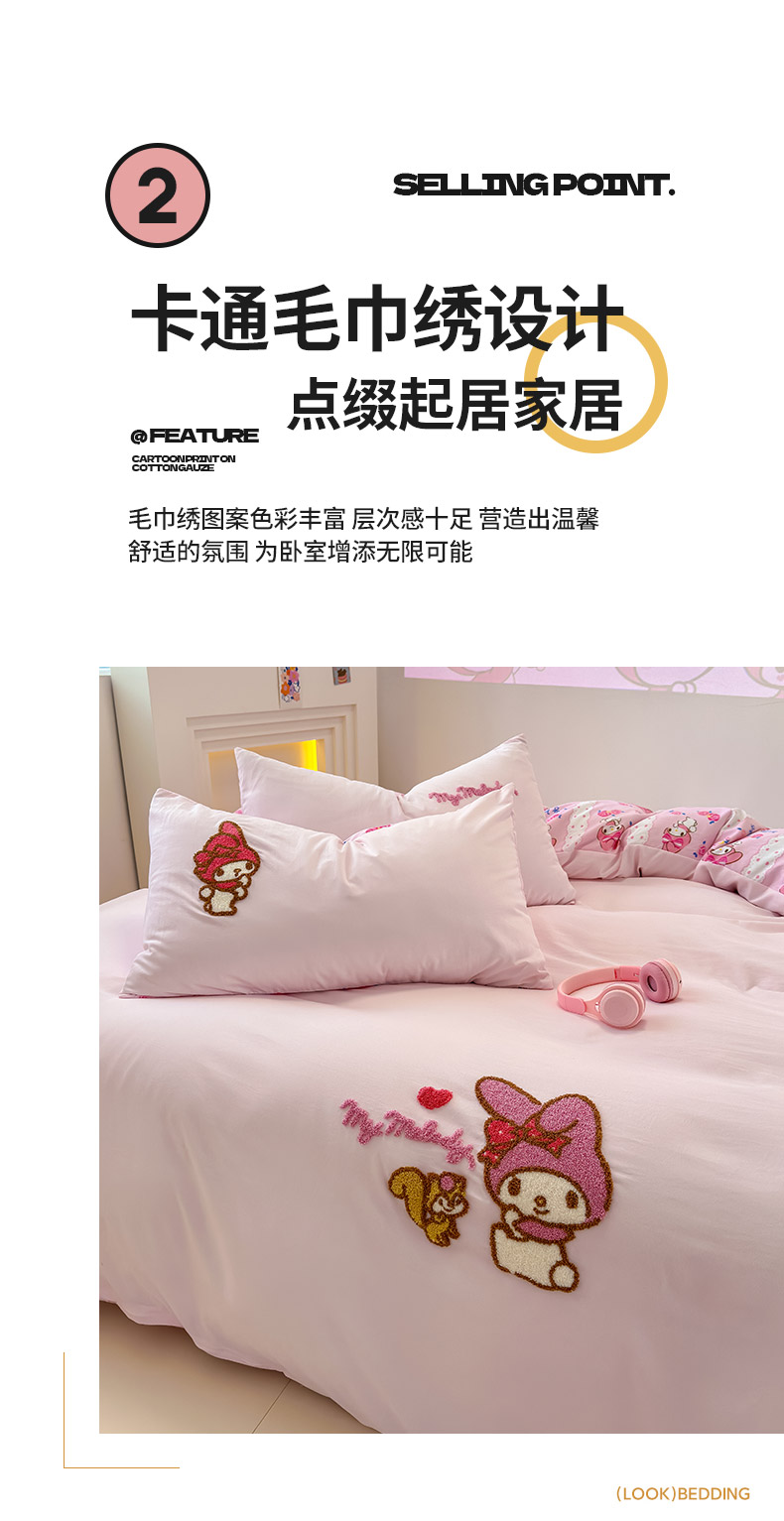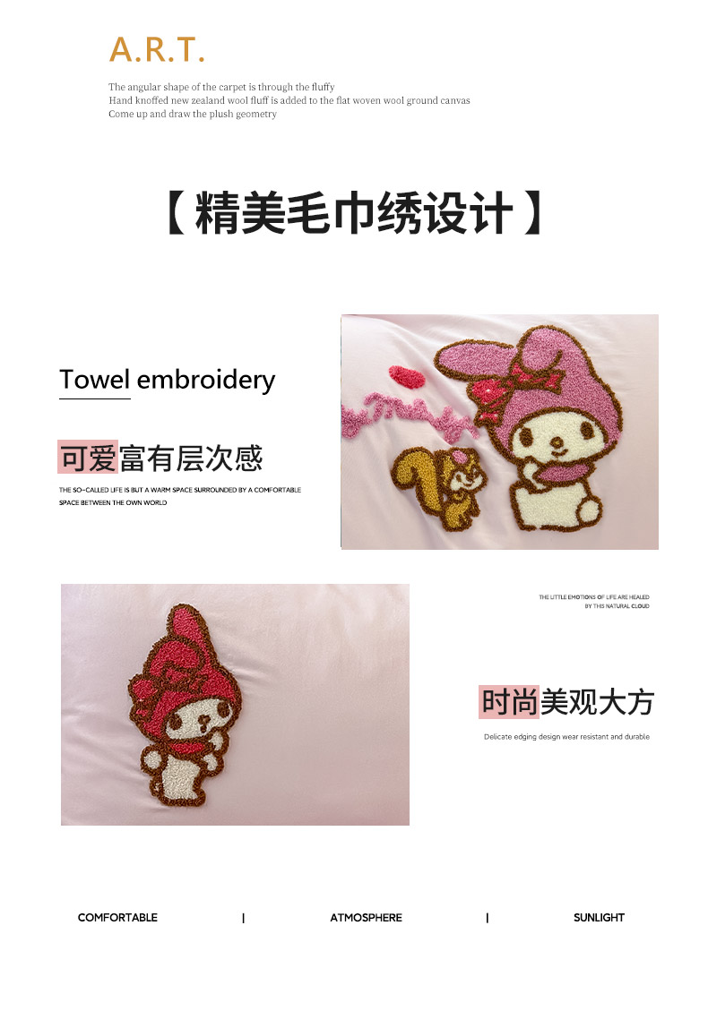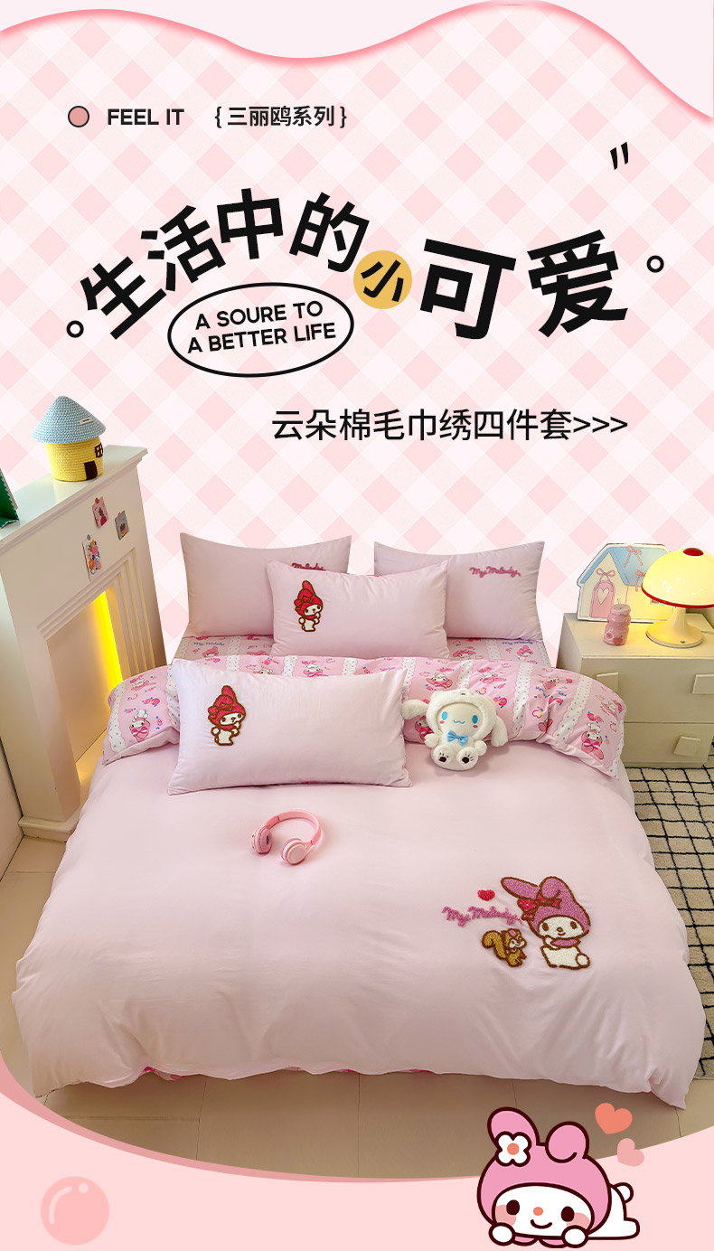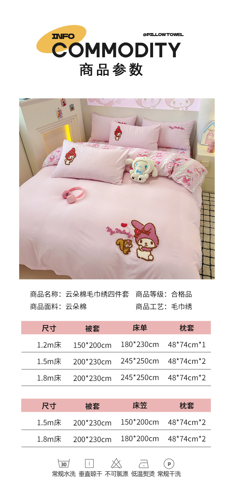 商品名称:乐坊 2025新款三丽鸥系列云朵棉毛巾绣四件套 美乐蒂粉