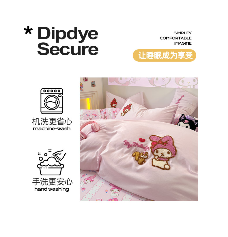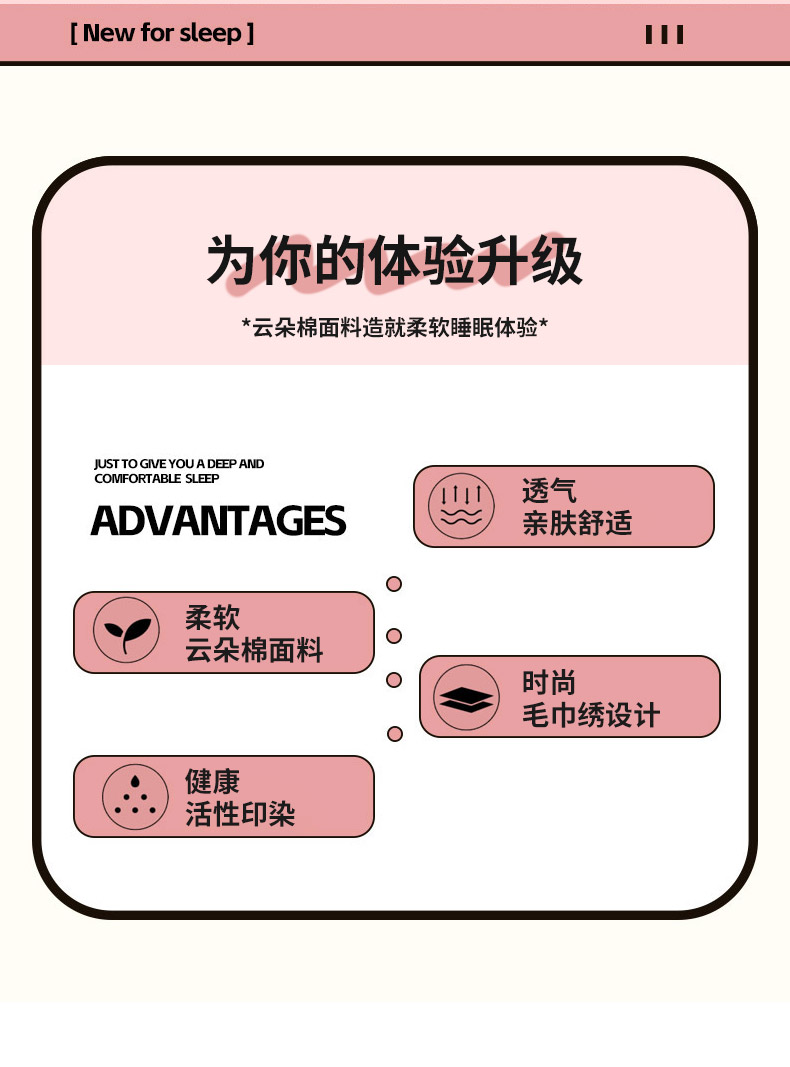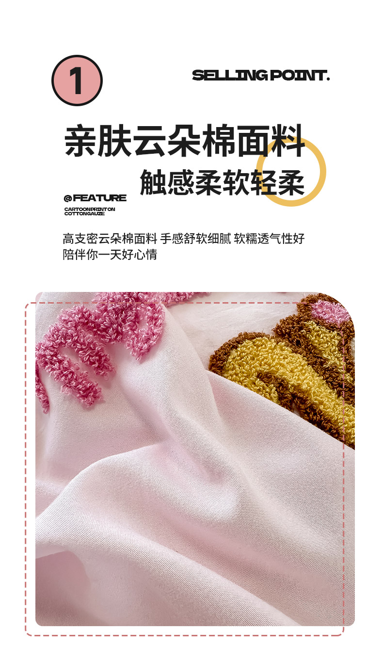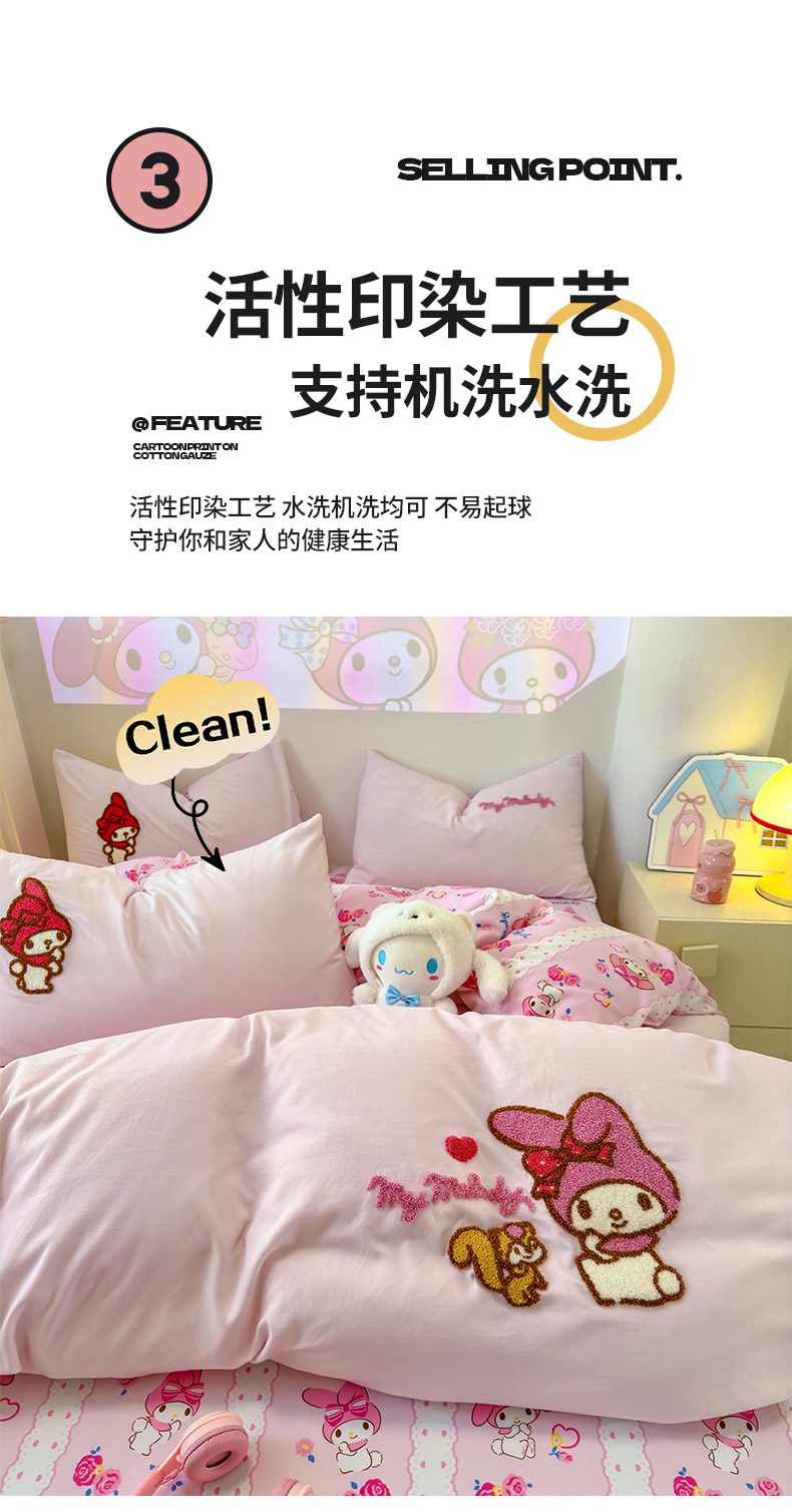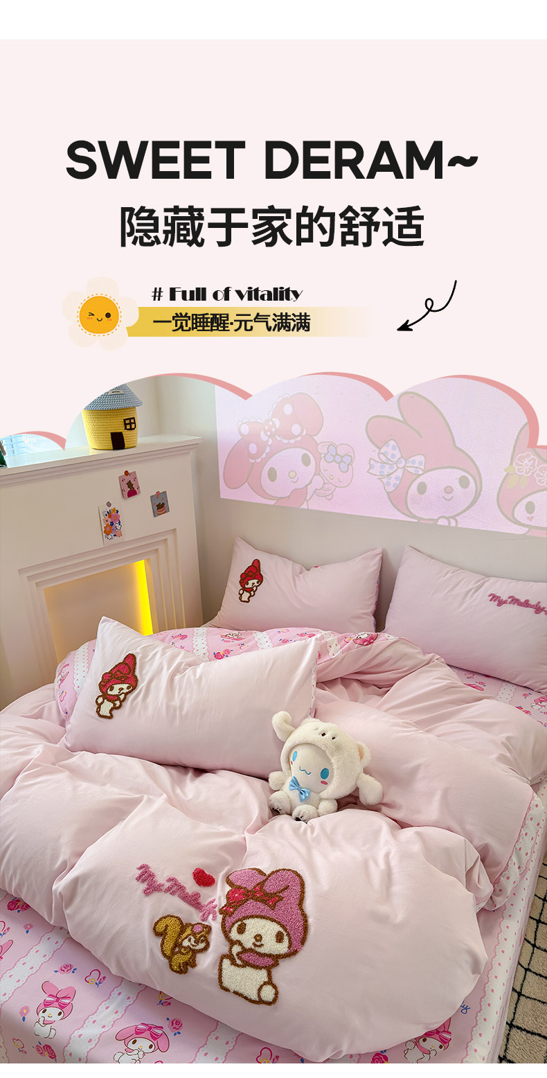 商品名称:乐坊 2025新款三丽鸥系列云朵棉毛巾绣四件套 美乐蒂粉