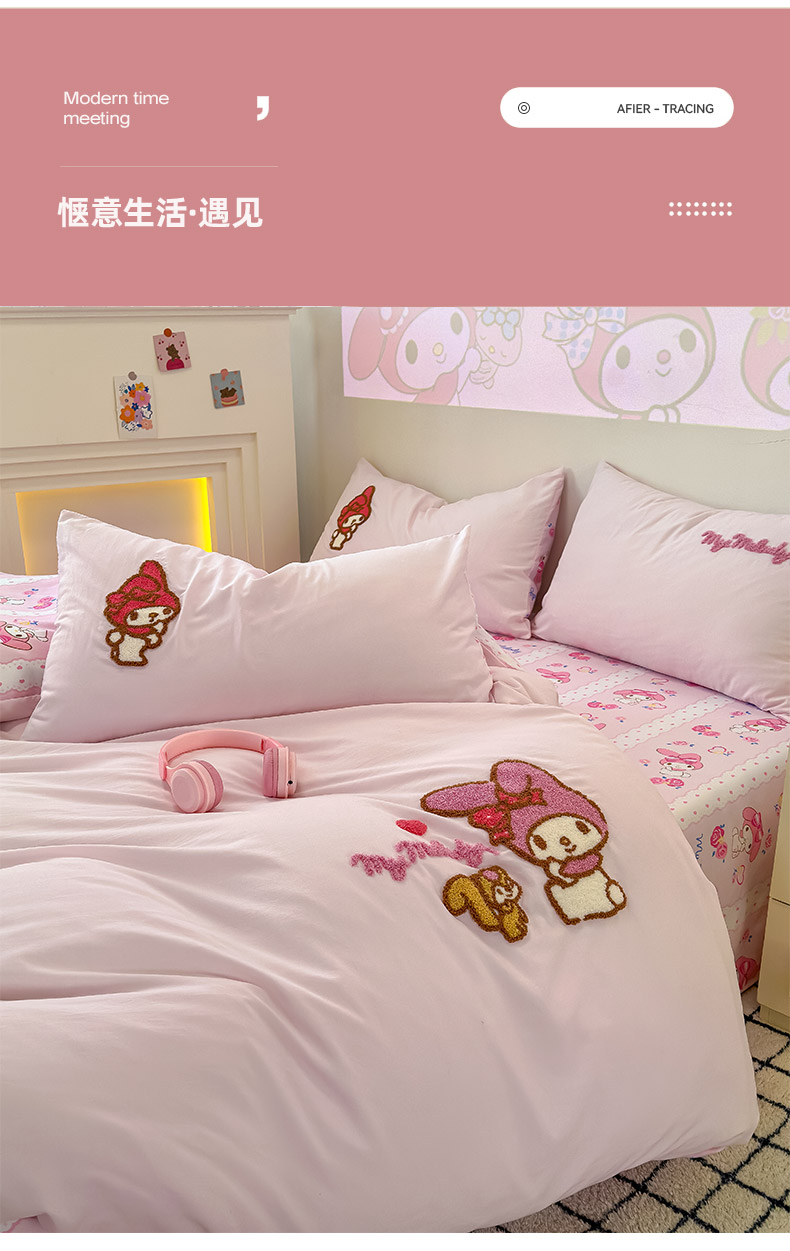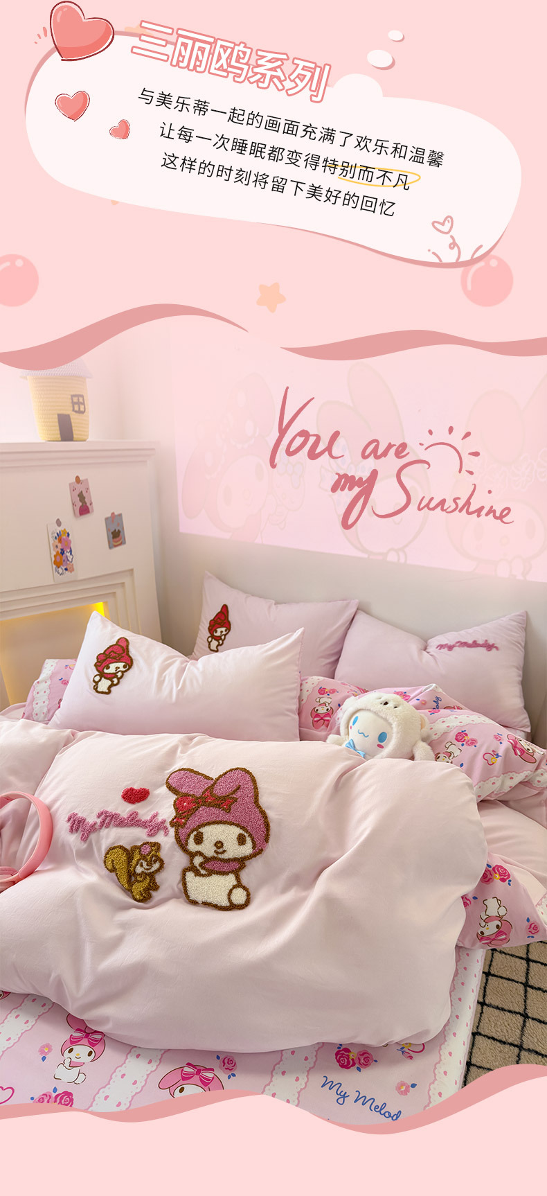 乐坊 2025新款三丽鸥系列云朵棉毛巾绣四件套 美乐蒂粉
