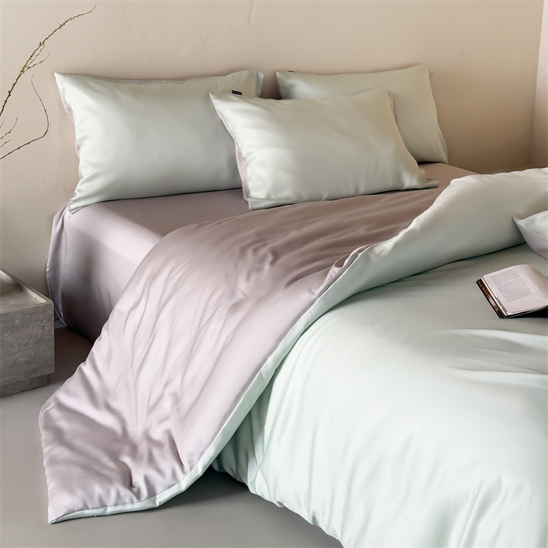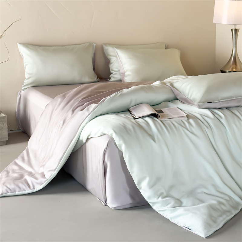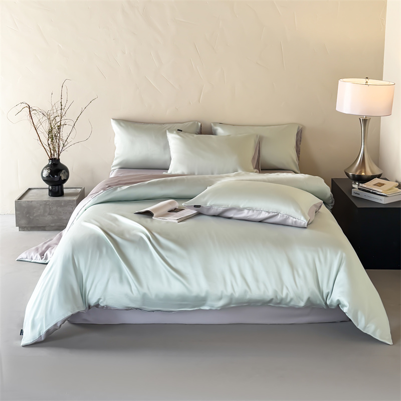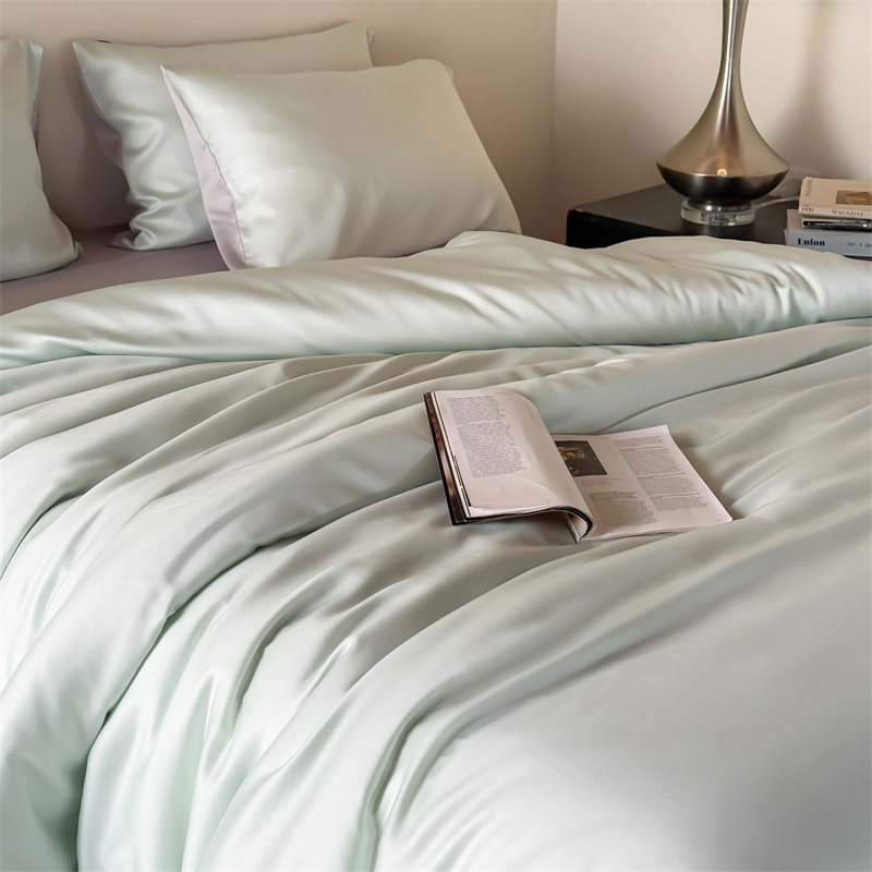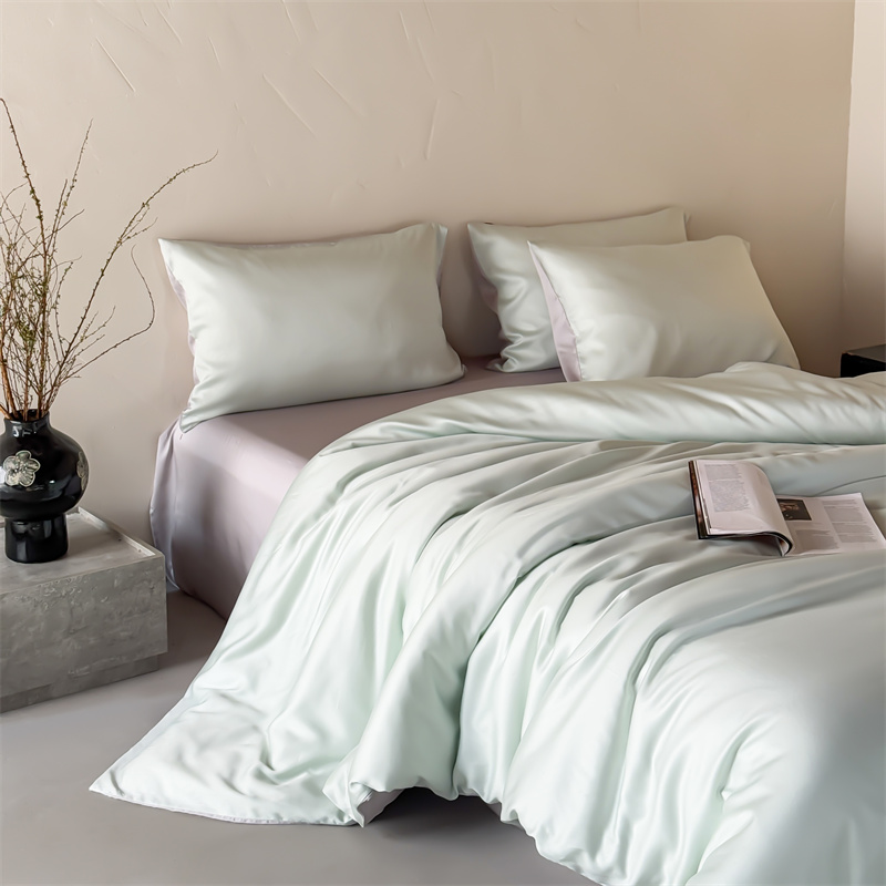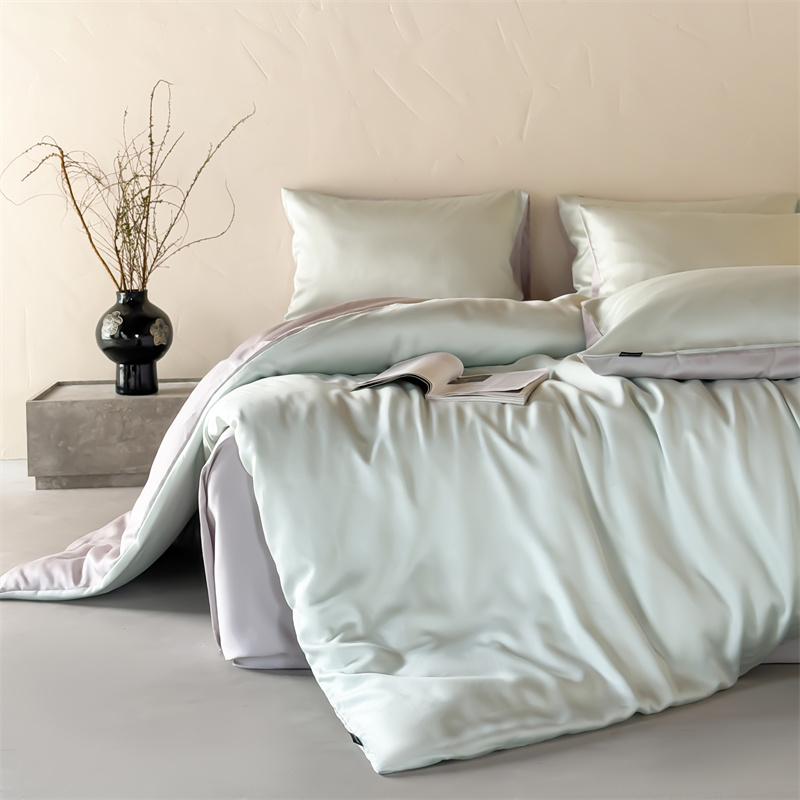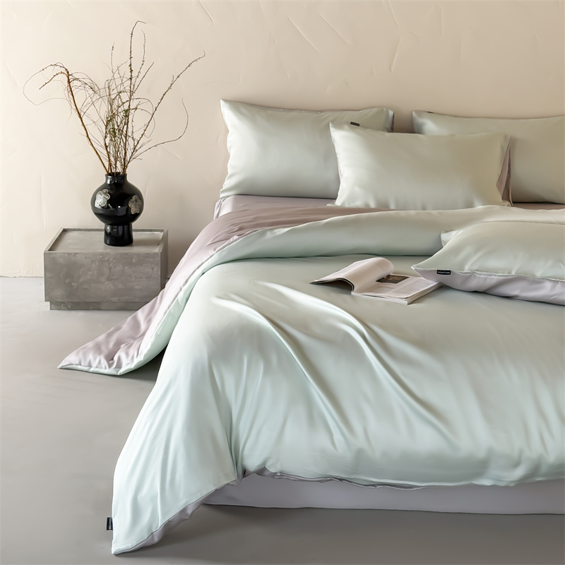 • 91家纺网 家纺一手货源 找家纺 优贝家纺 2025新款100%莱赛尔兰精天丝单品被套 清新绿+浅灰