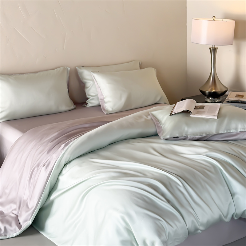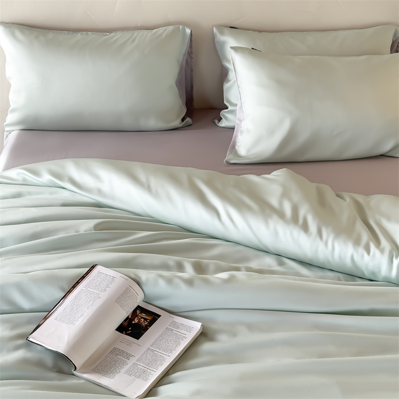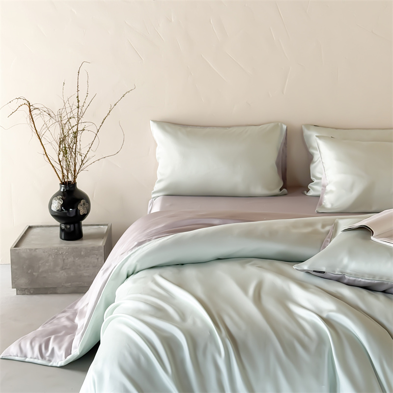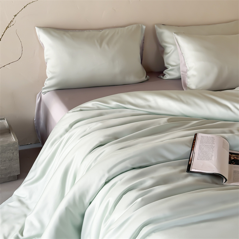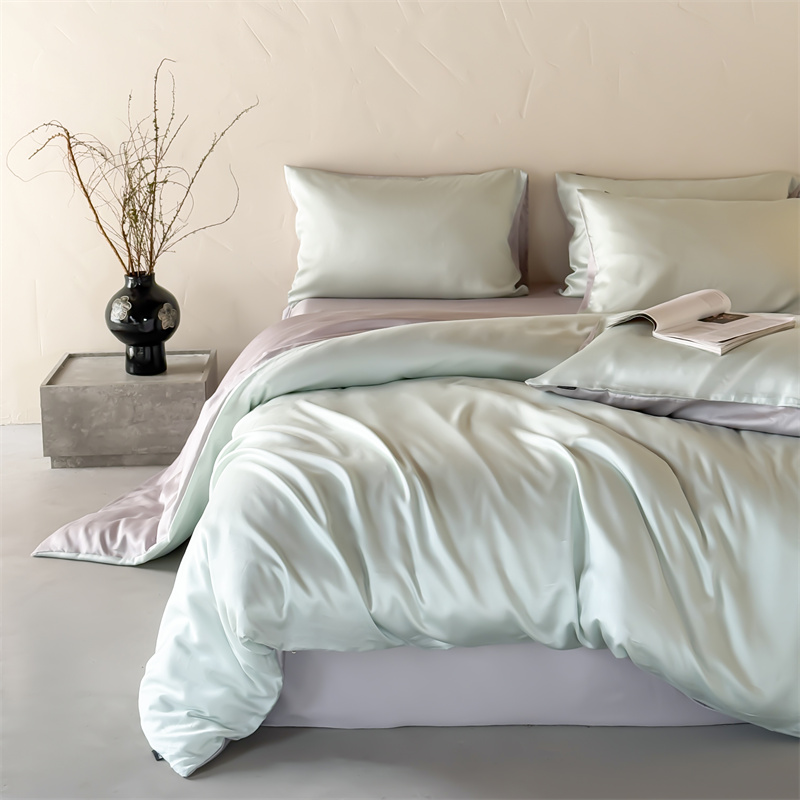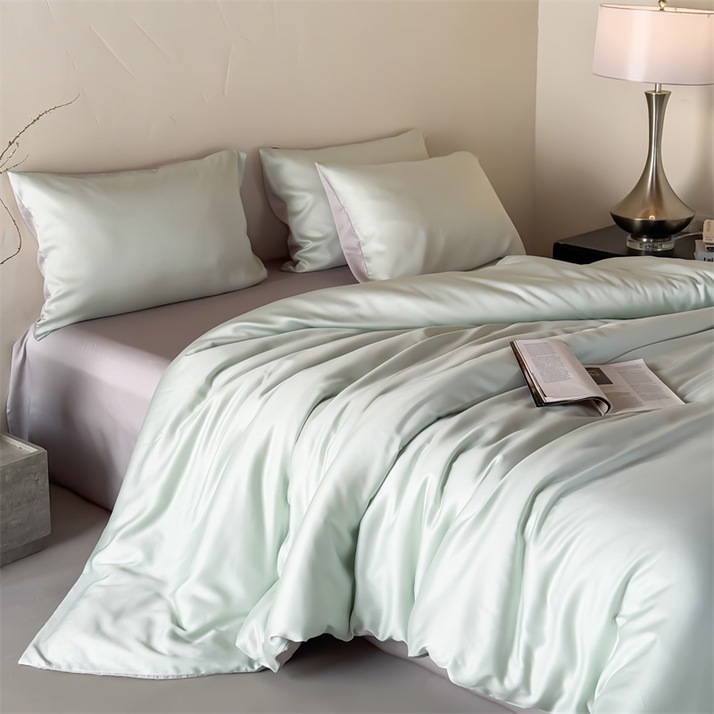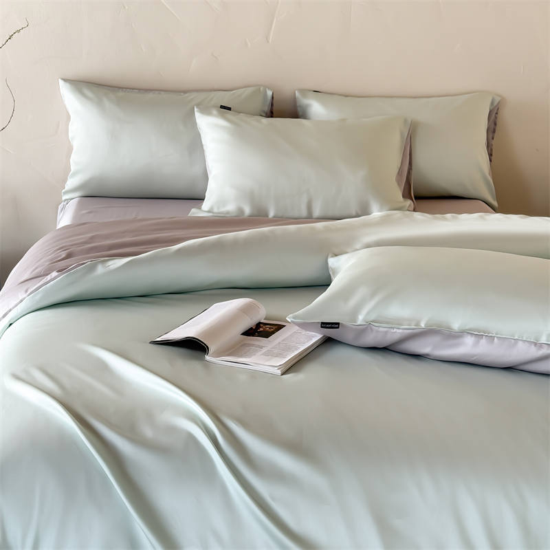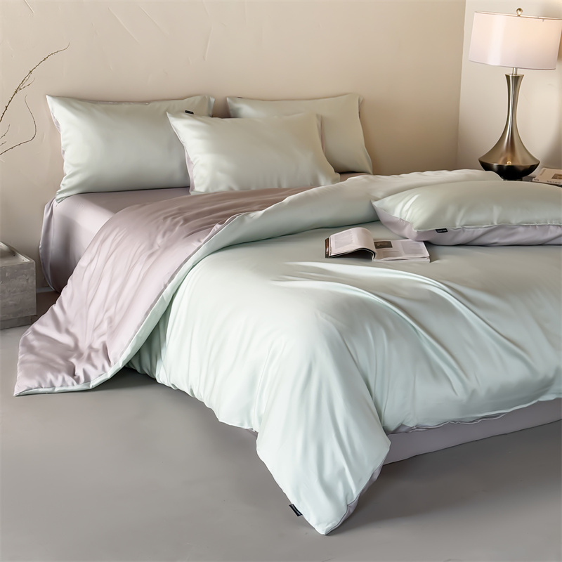 • 91家纺网 家纺一手货源 找家纺 优贝家纺 2025新款100%莱赛尔兰精天丝单品被套 清新绿+浅灰