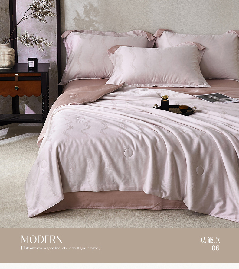 (总)鸣升家纺 2025新款莱赛尔兰精天丝棉色织大提花大豆夏凉被四件套