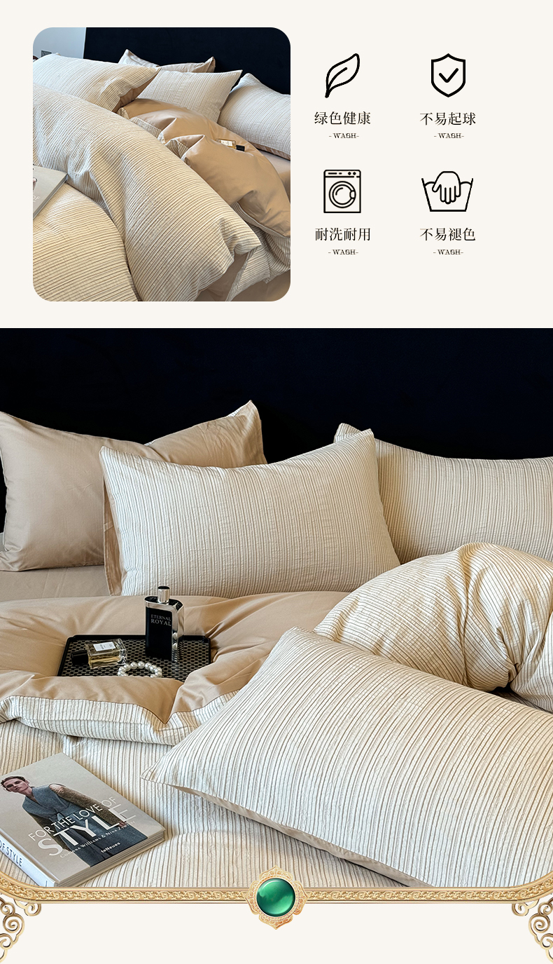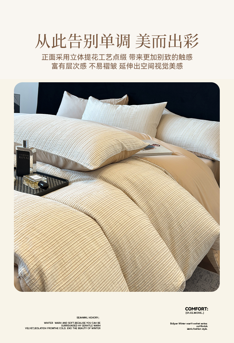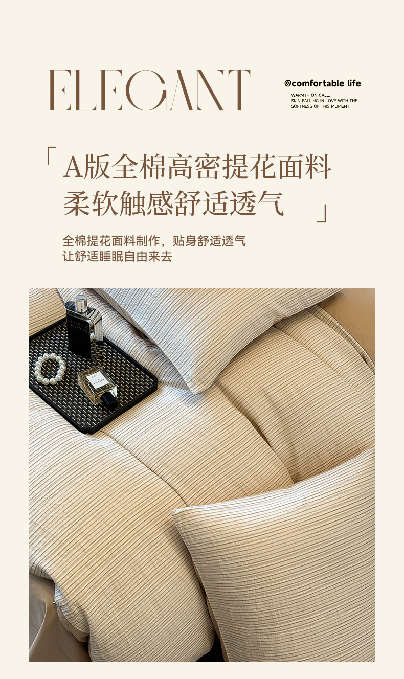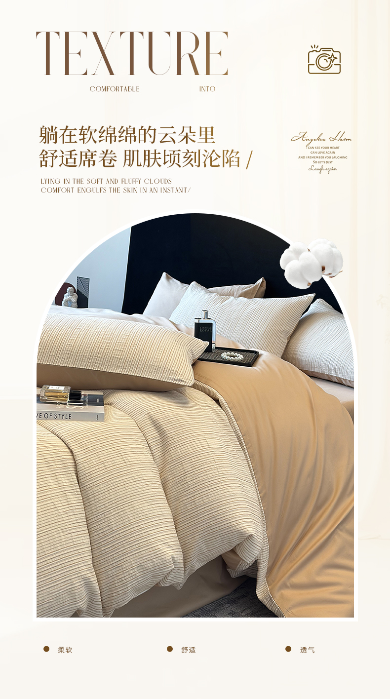 当前位置: 91家纺网 > 商品网购 > 床品套件 > 四件套 > 全棉普通四件套 > 家居1号2025新款13372全棉提花四件套--简爱系列 简爱-咖