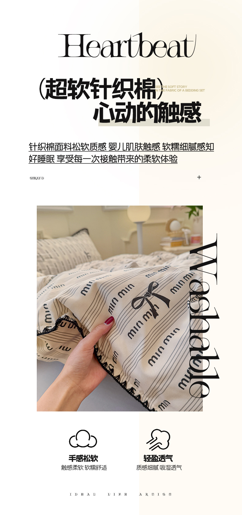 商品名称:韩都家居2025新款水洗双层纱针织棉三角针四件套(包含买家秀) 敏敏灰