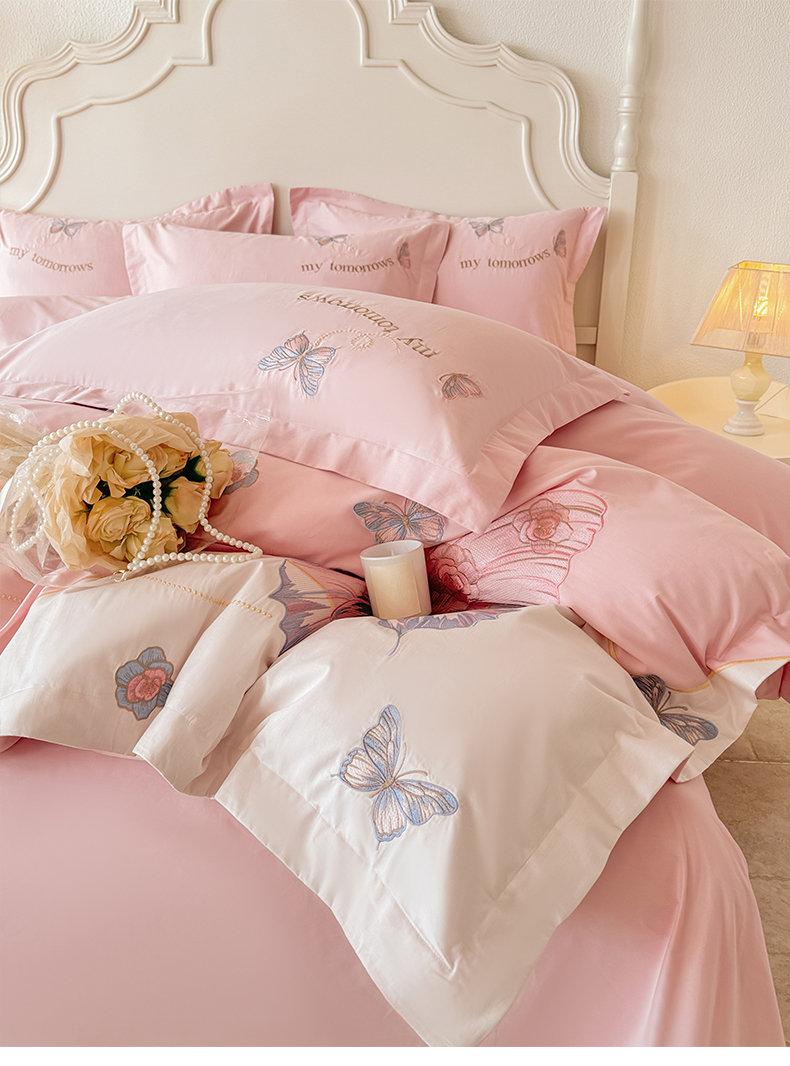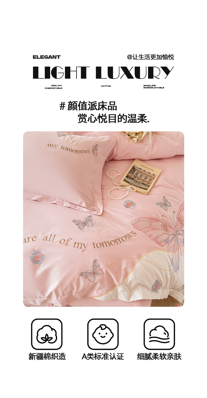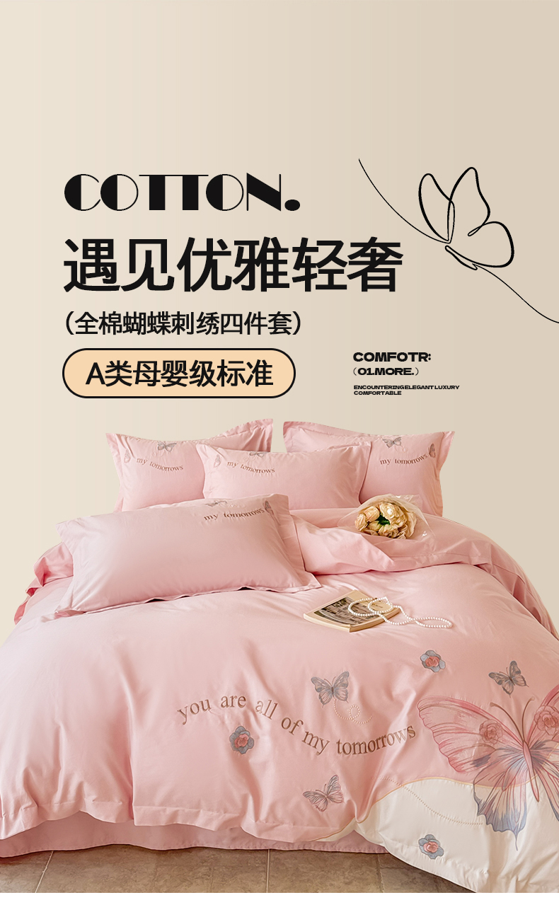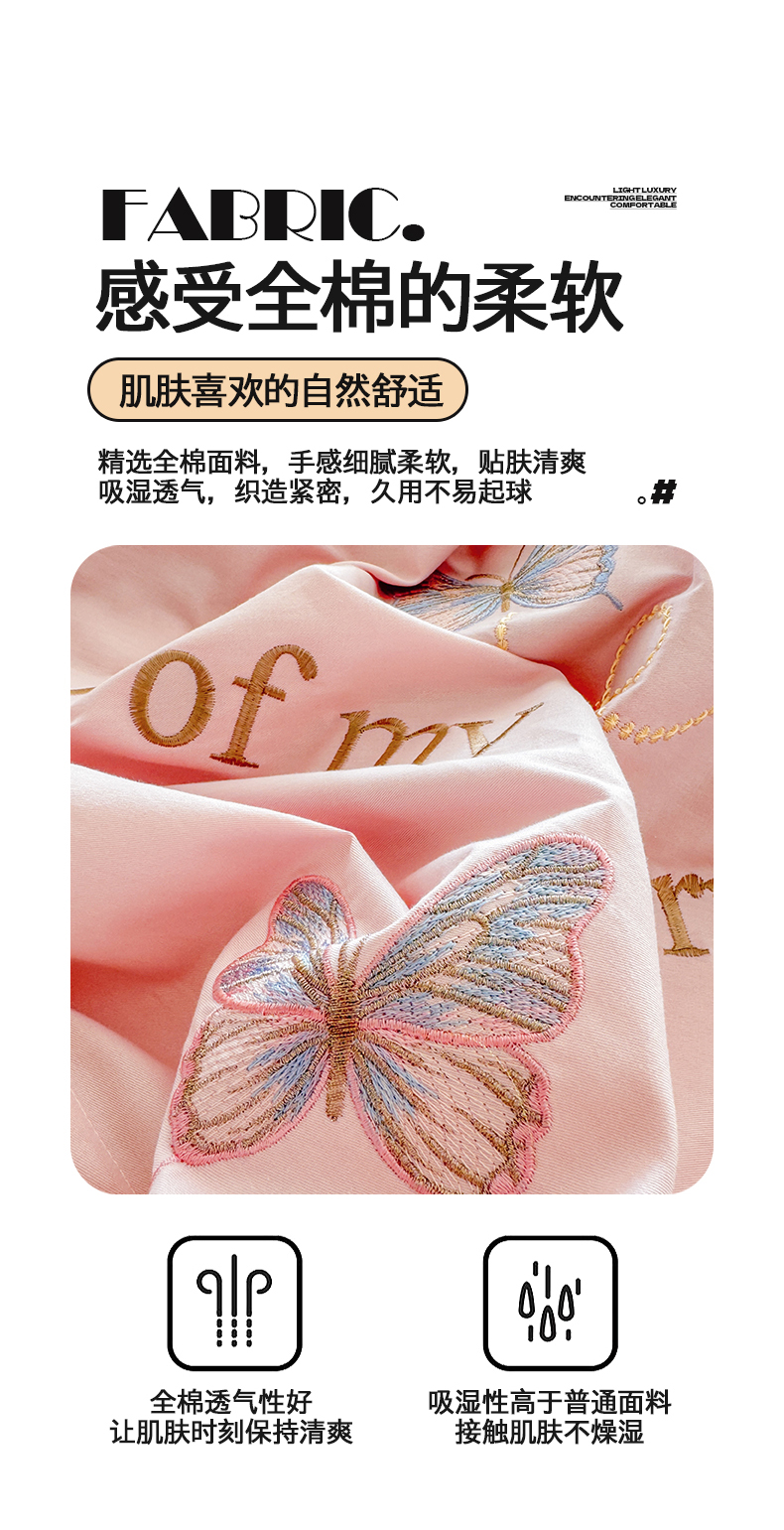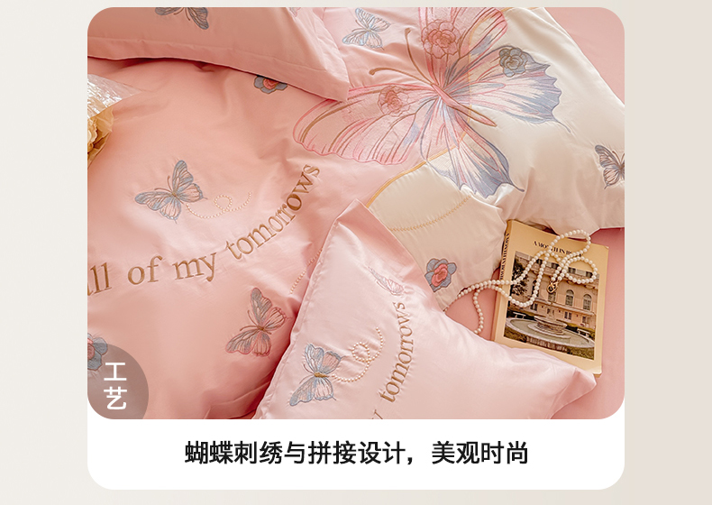 典曼家纺 2025新款A类刺绣四件套-梦幻蝶影 梦幻蝶影-粉